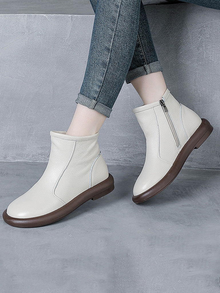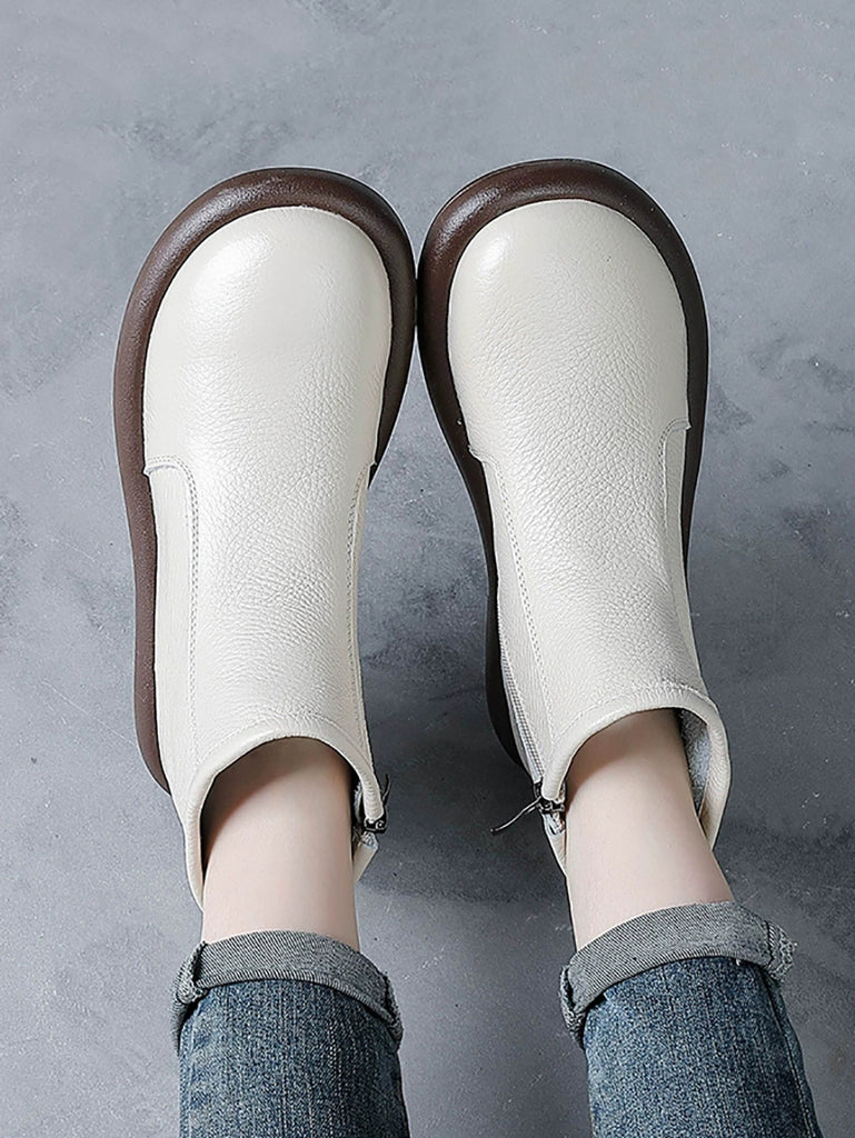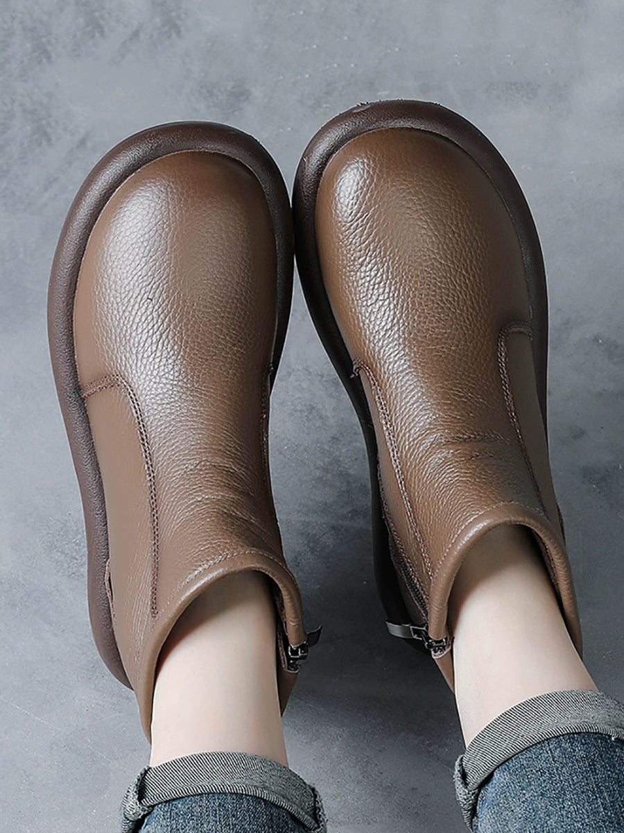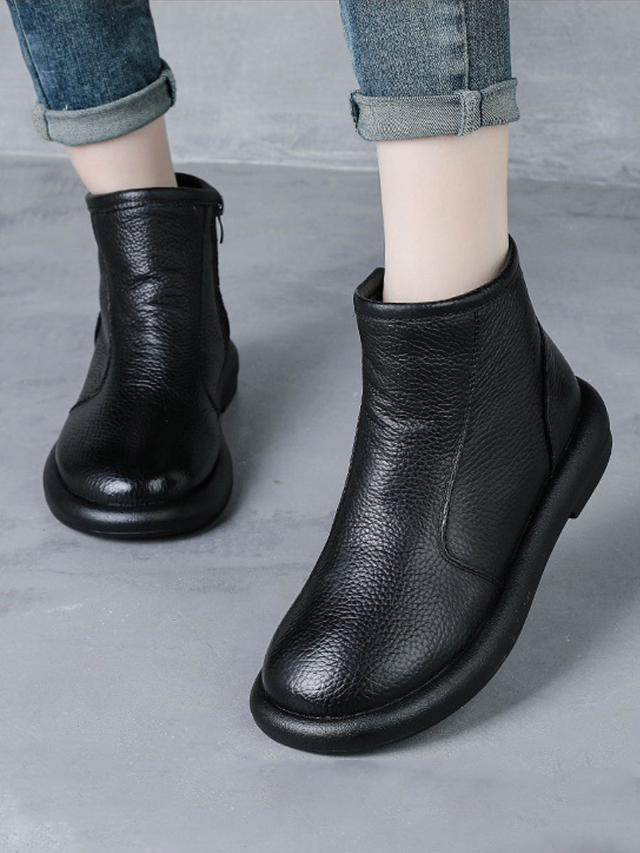 حذاء نسائي شتوي من الجلد الطبيعي مبطن بالصوف