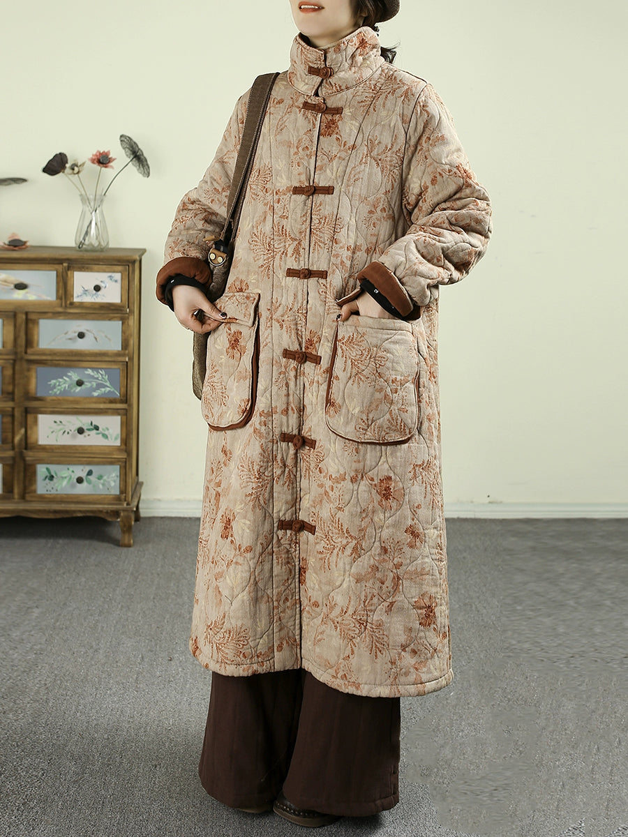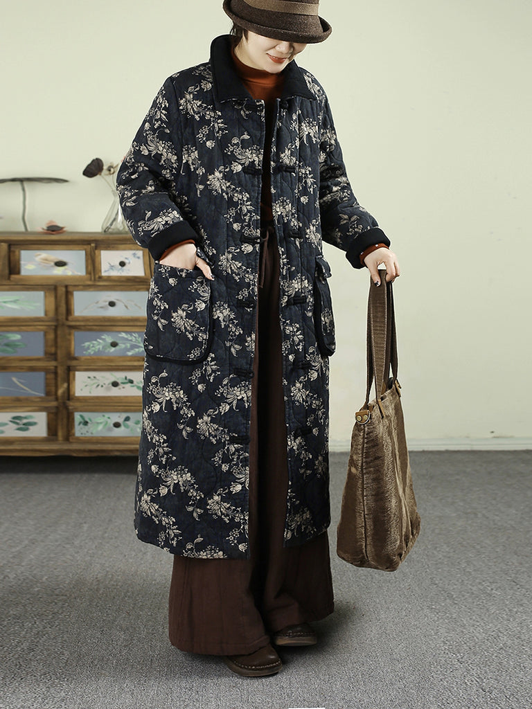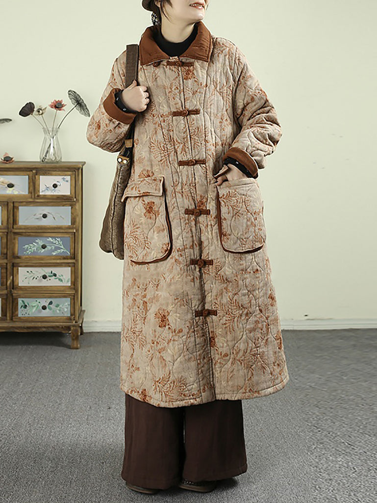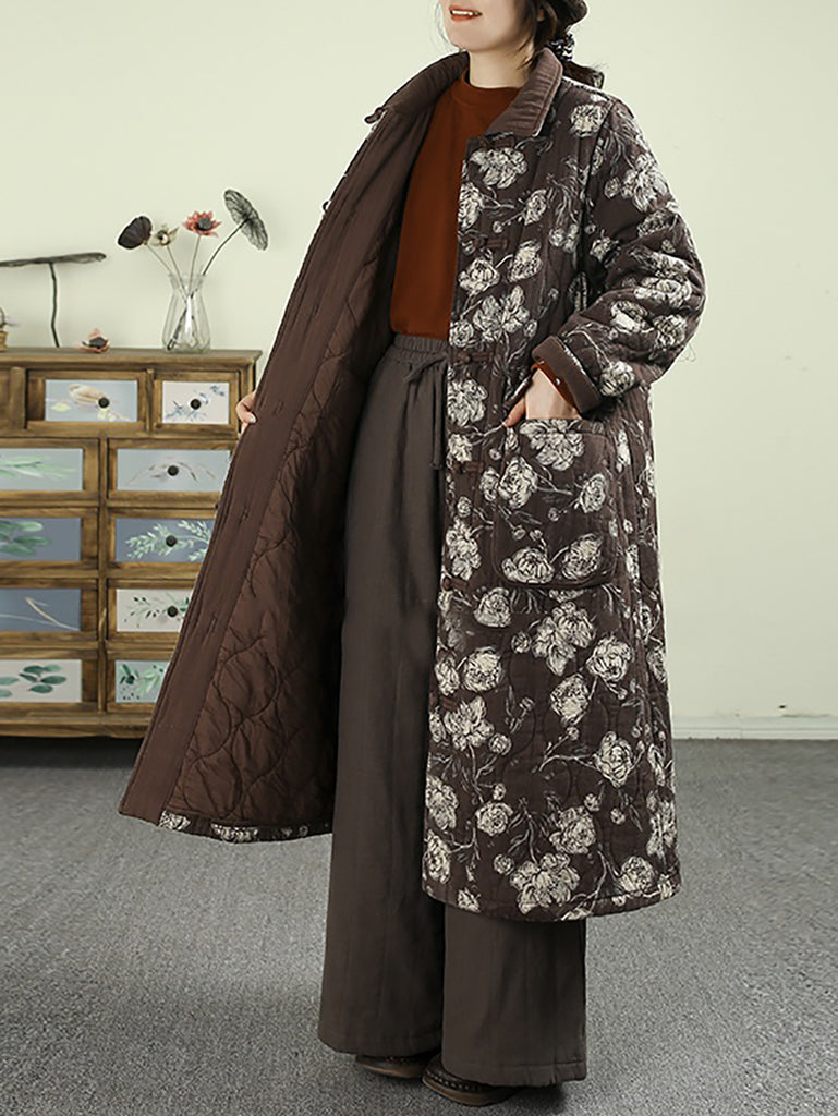 معطف نسائي شتوي مبطن بياقة مطوية ومزين بنقشة زهور عتيقة