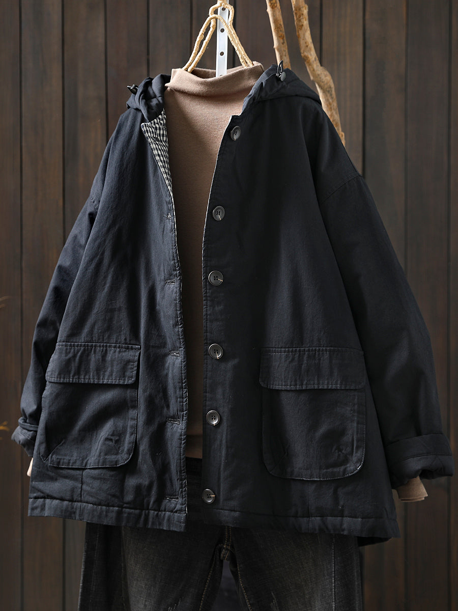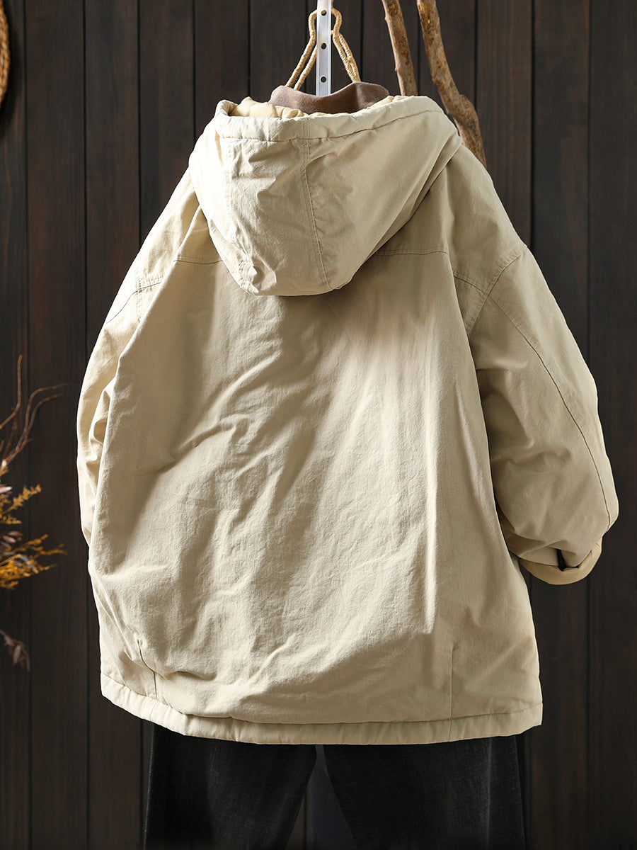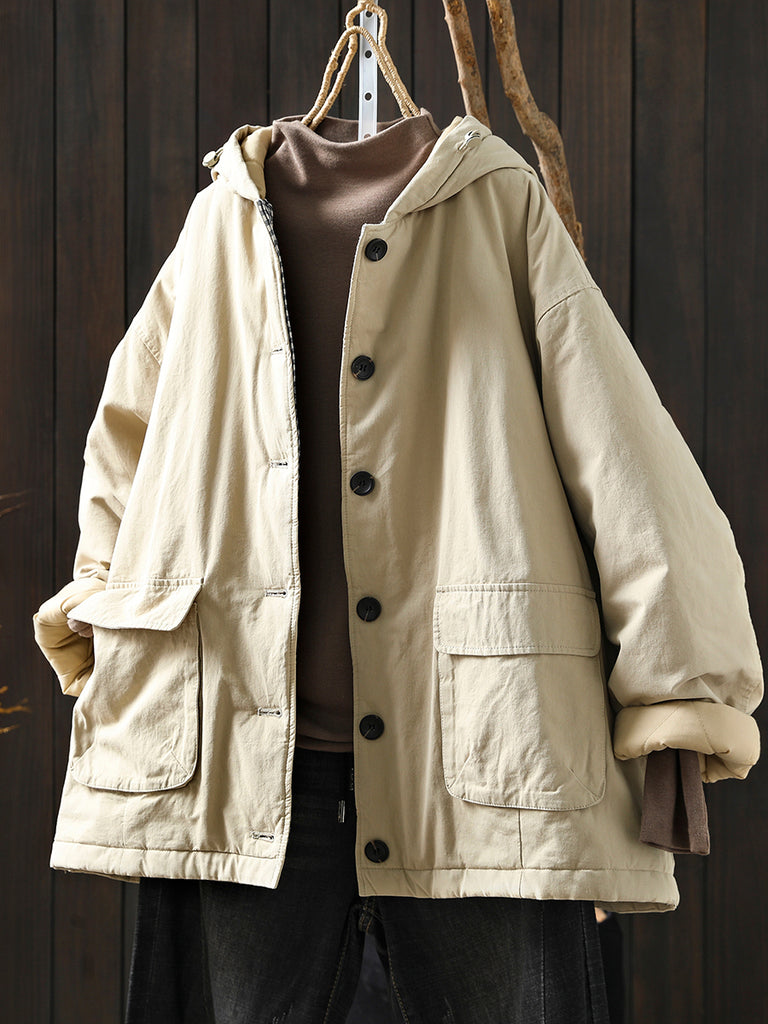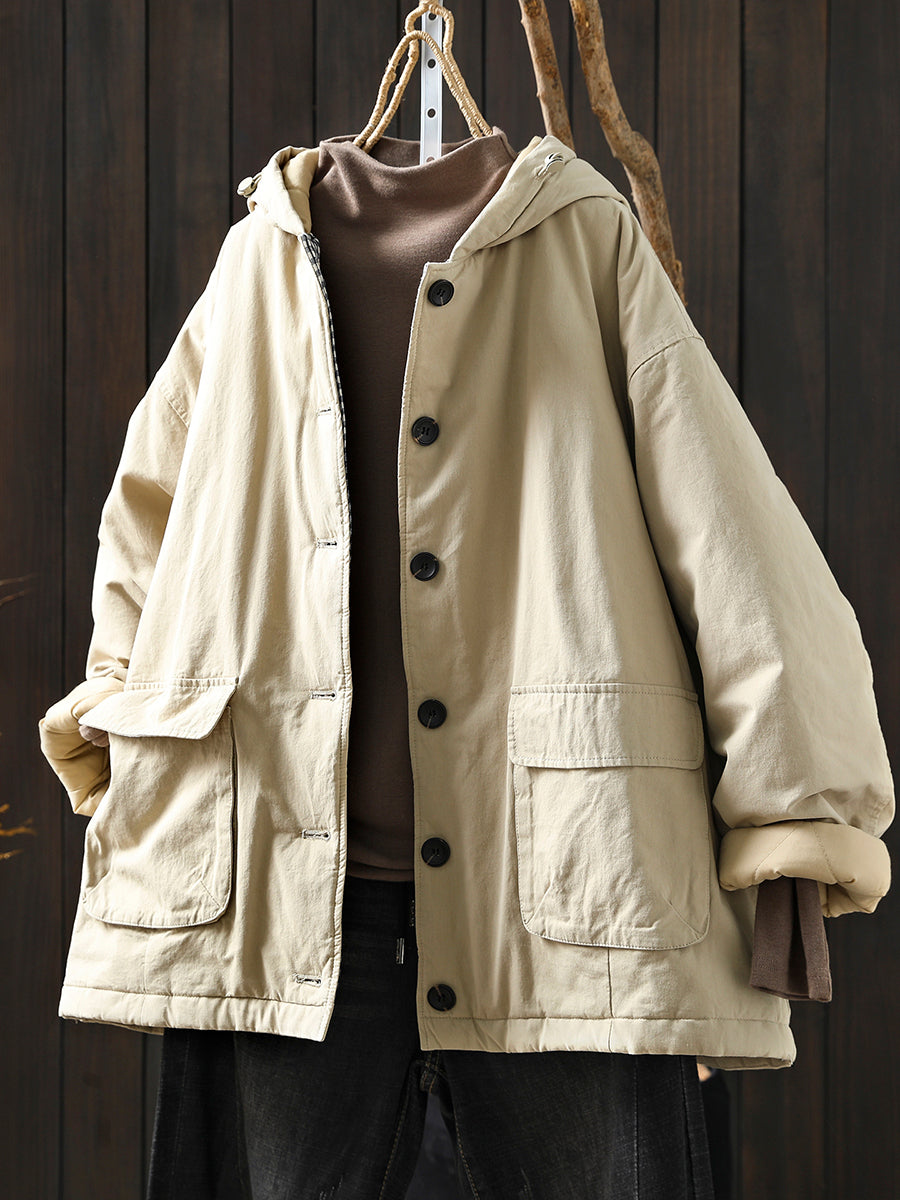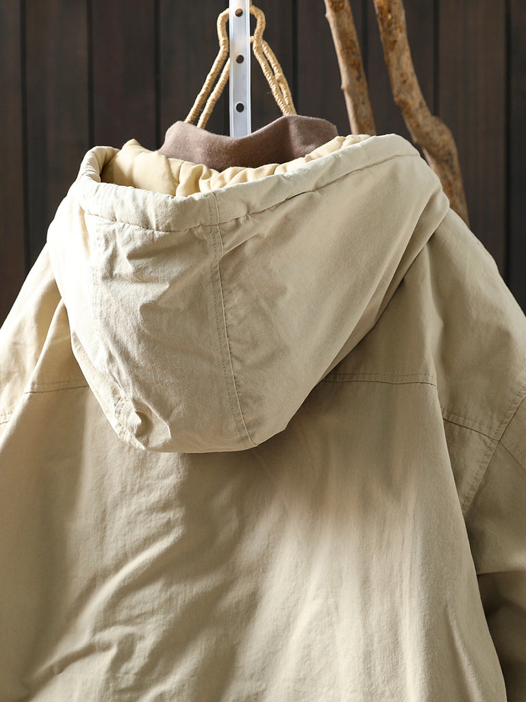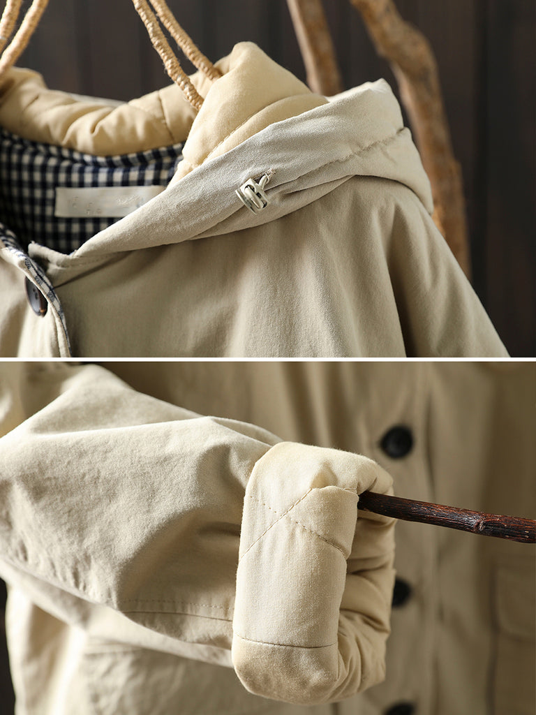 معطف نسائي شتوي مبطن بغطاء للرأس بلون نقي