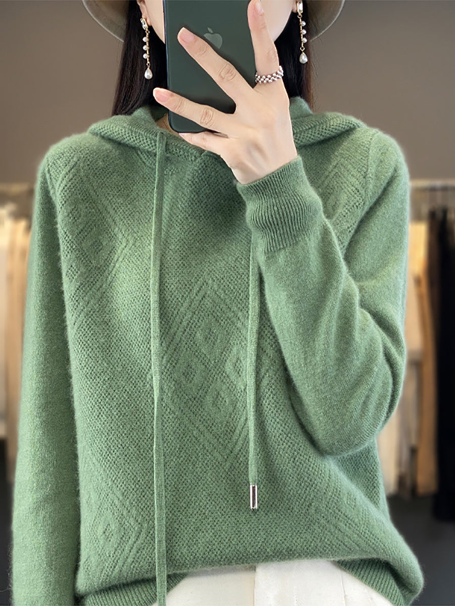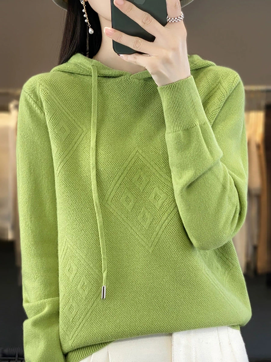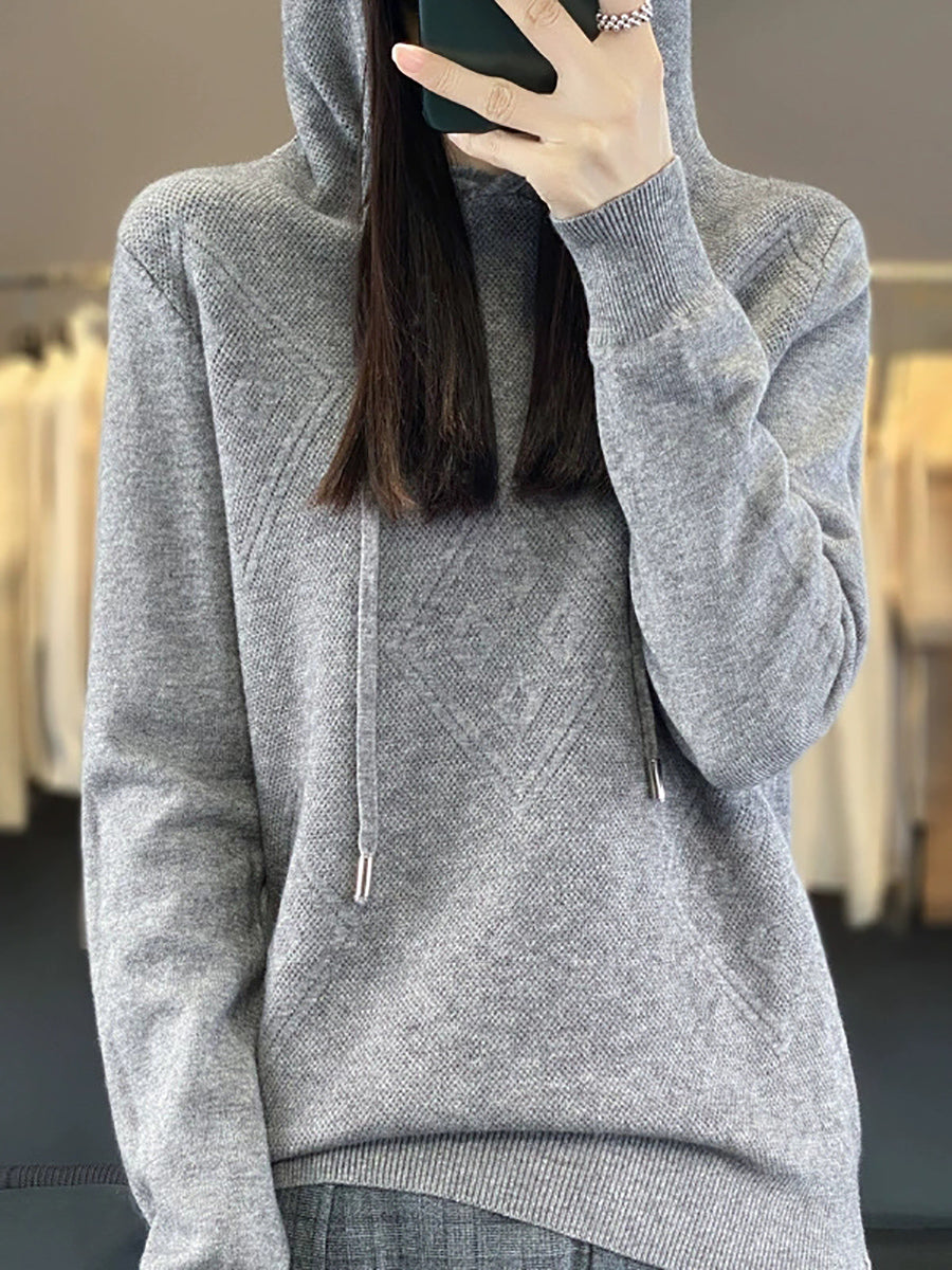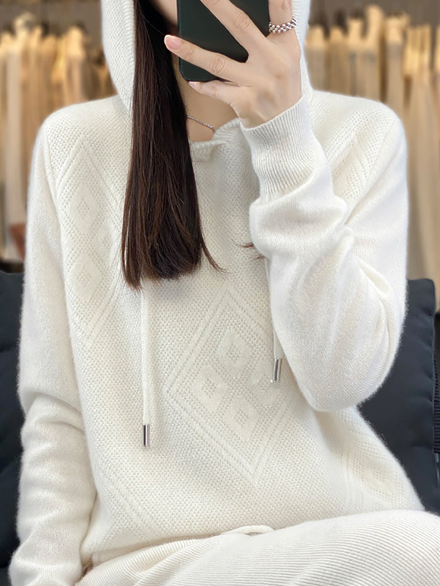 سترة صوفية شتوية نسائية محبوكة بغطاء رأس على شكل معينات