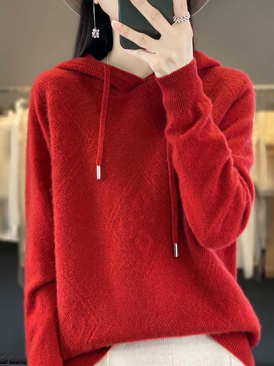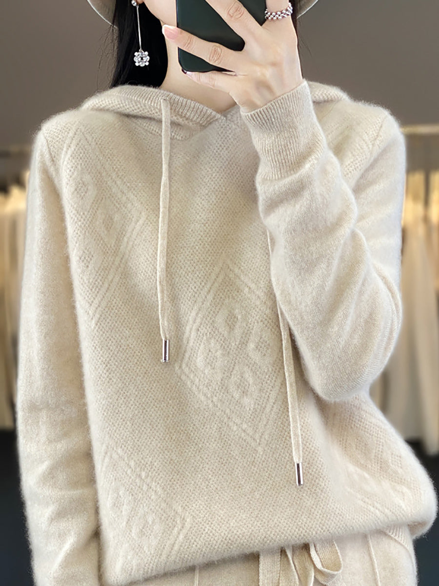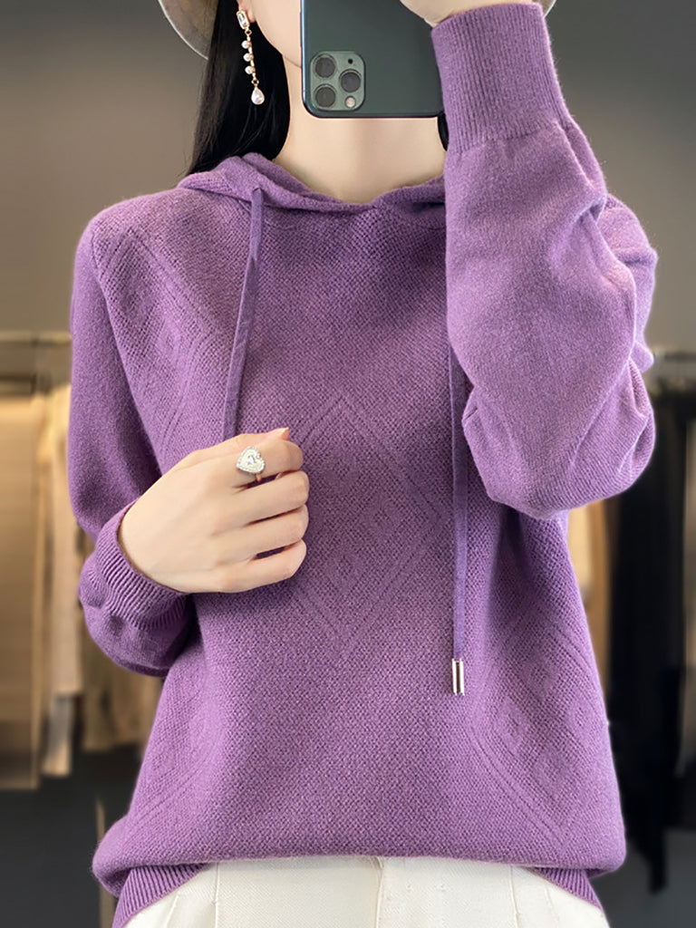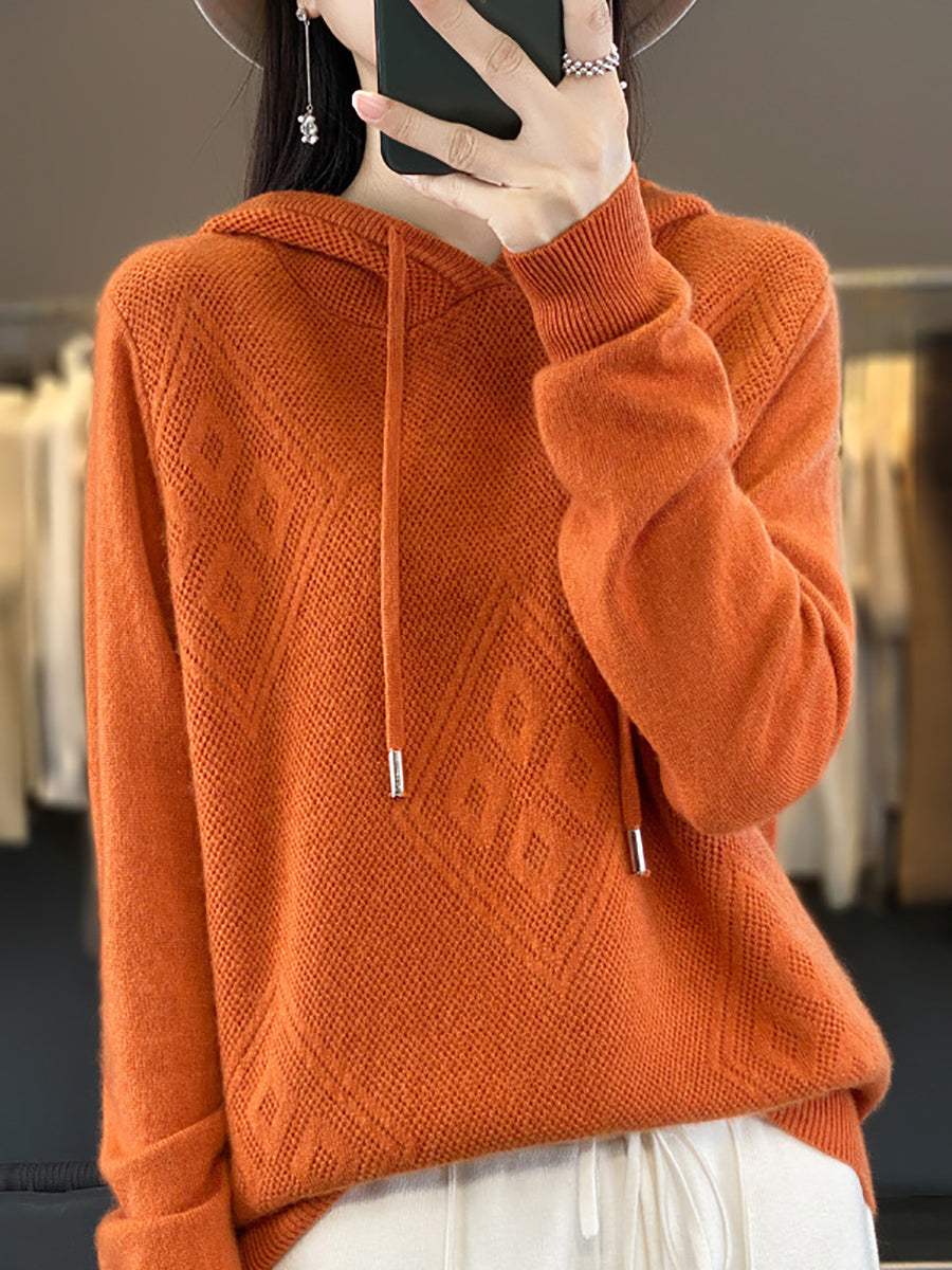سترة صوفية شتوية نسائية محبوكة بغطاء رأس على شكل معينات