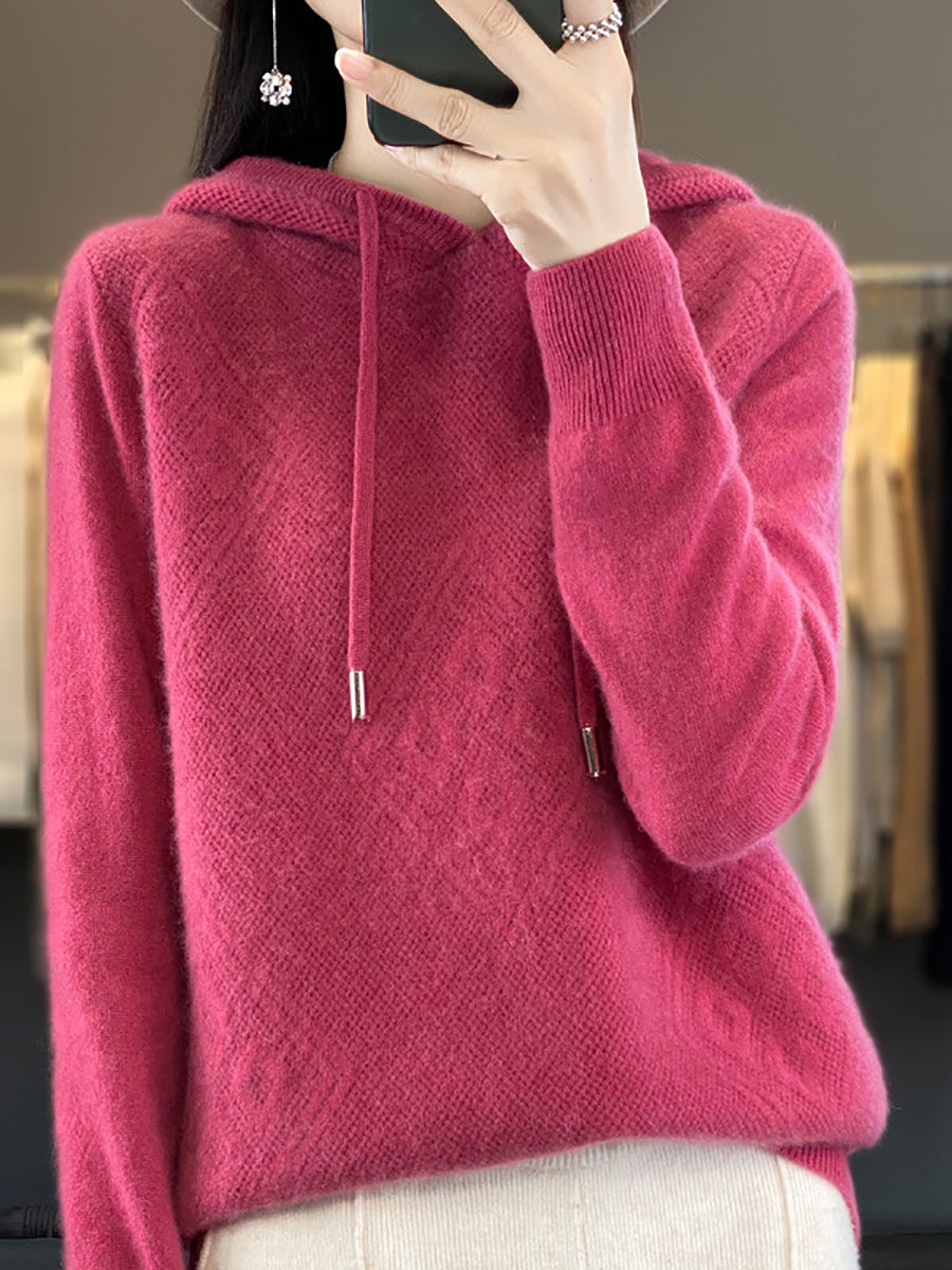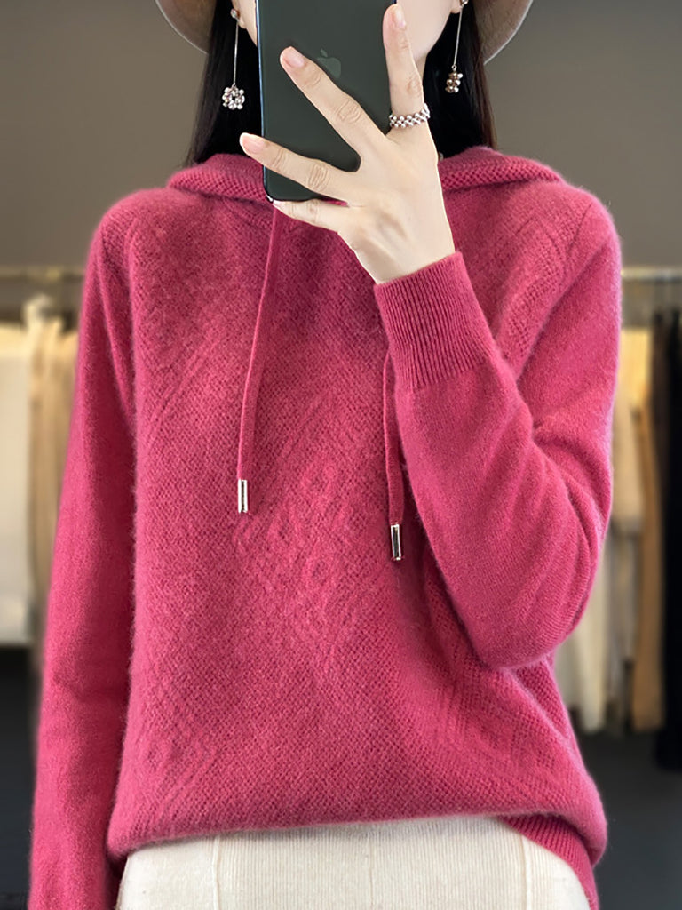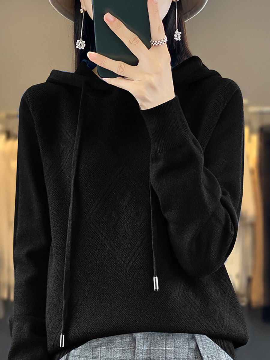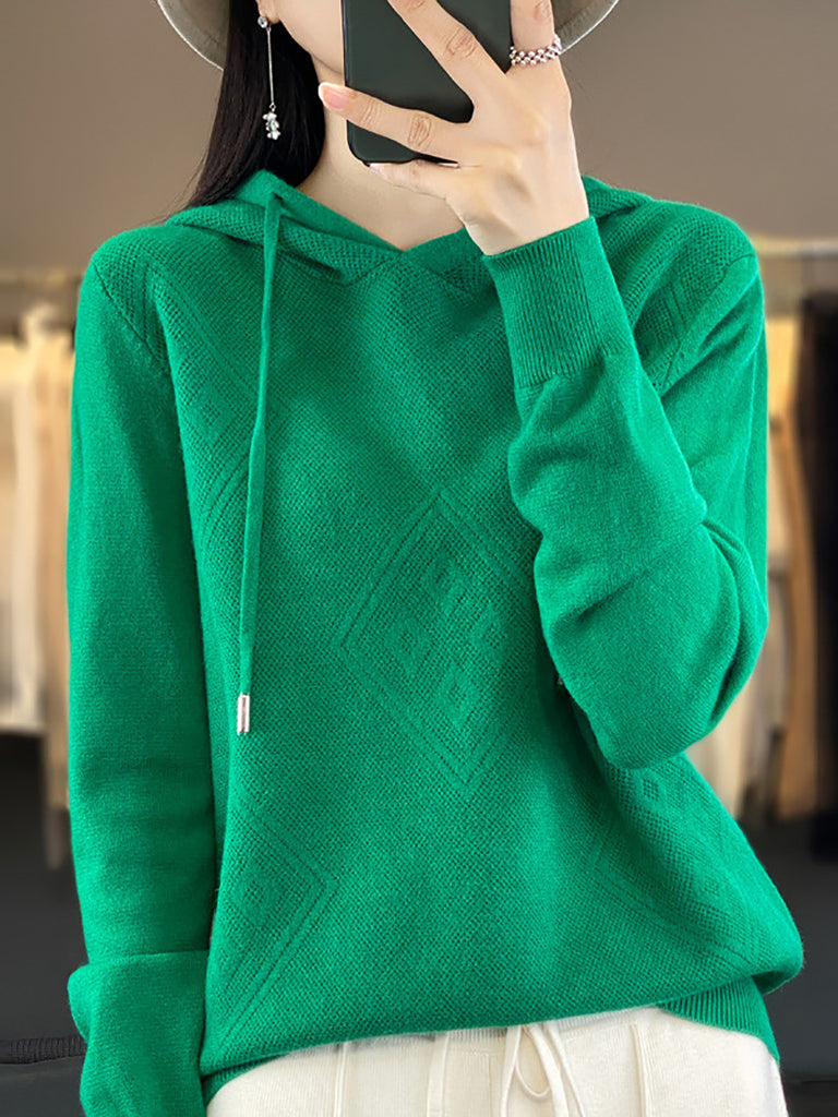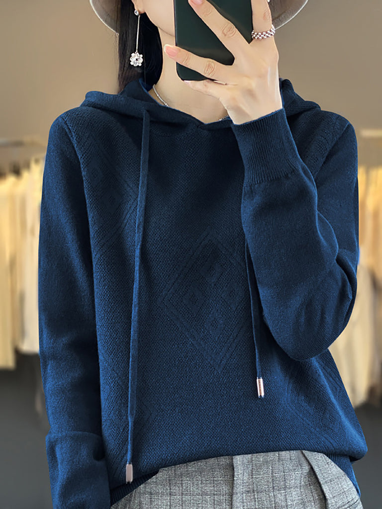 سترة صوفية شتوية نسائية محبوكة بغطاء رأس على شكل معينات