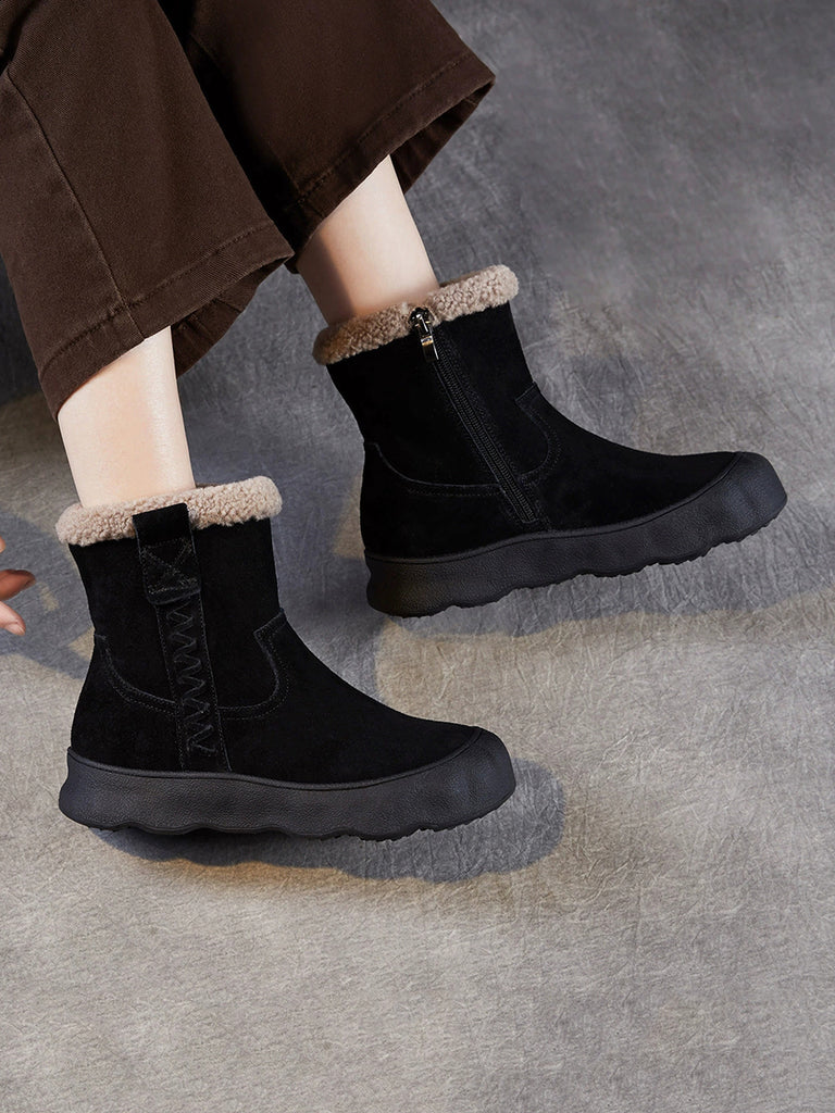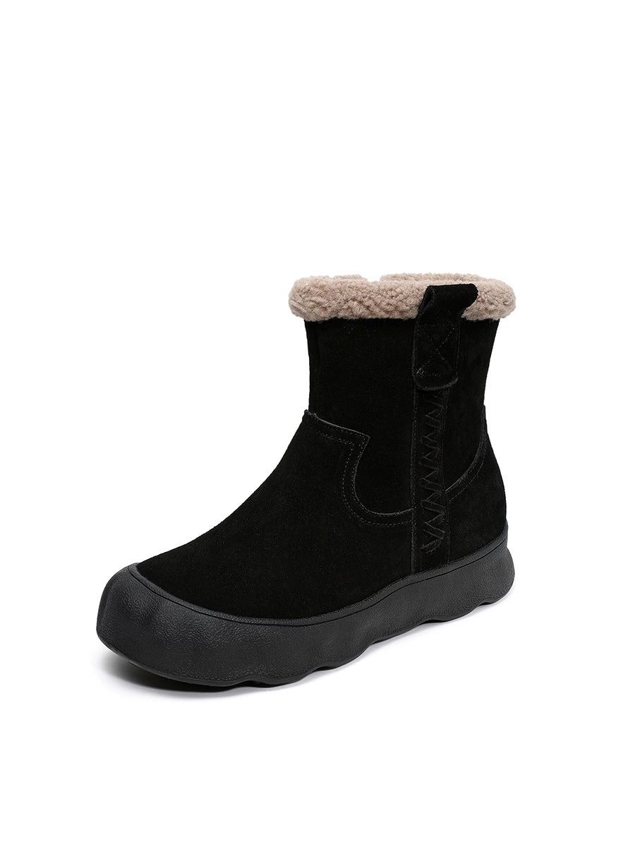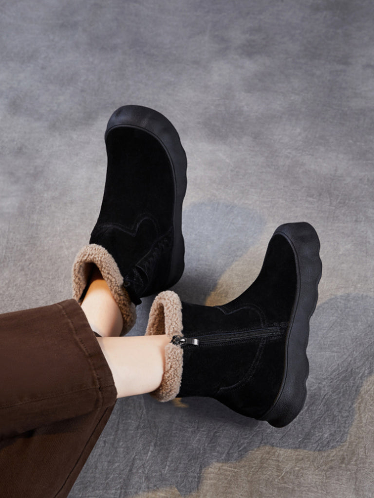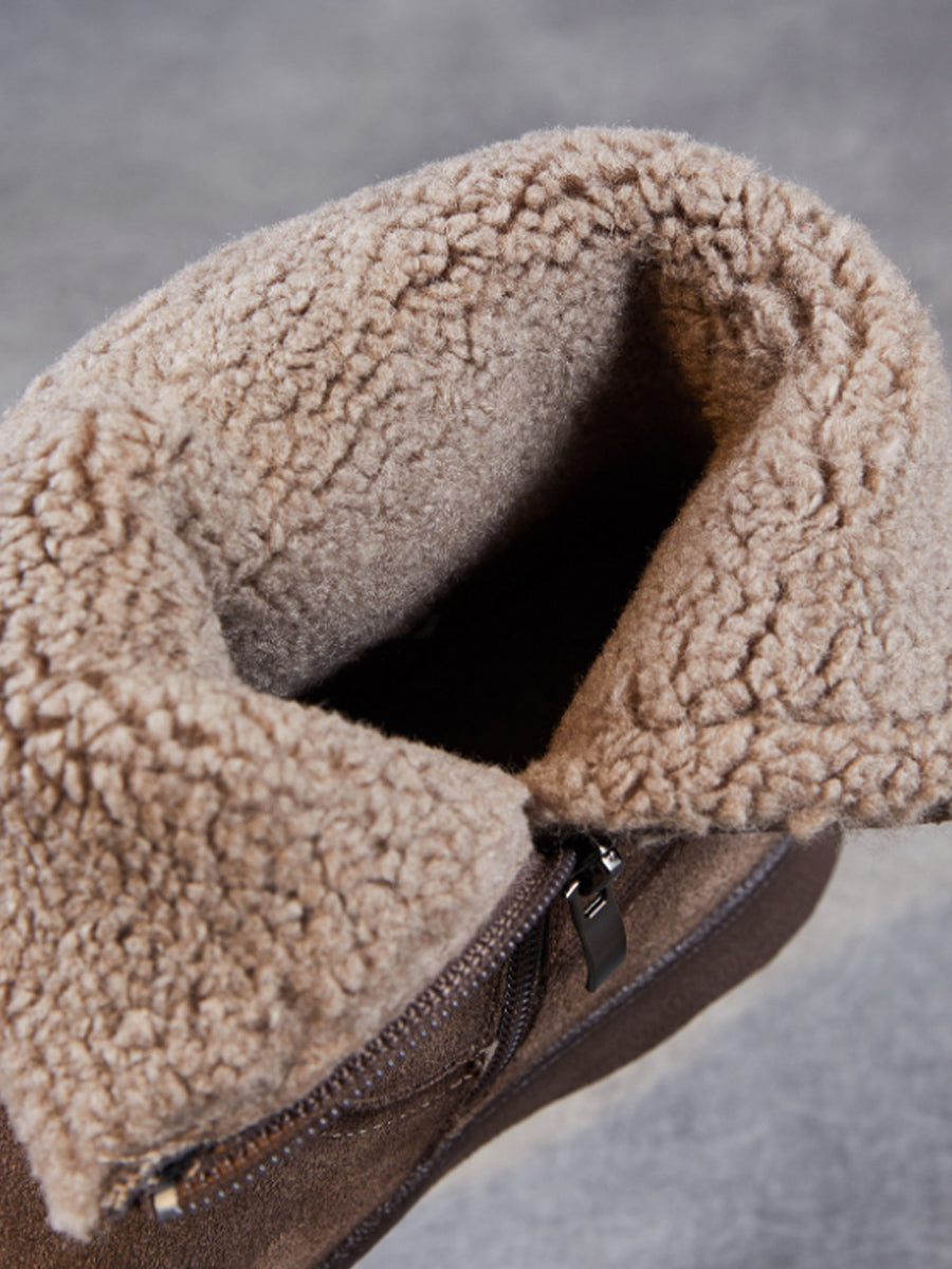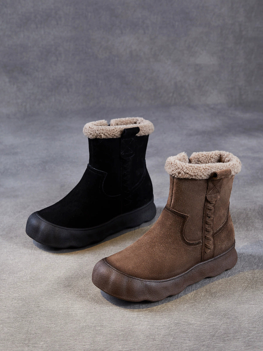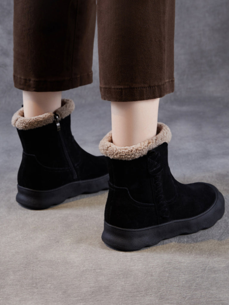 حذاء نسائي شتوي عتيق من الجلد المدبوغ مبطن بالصوف