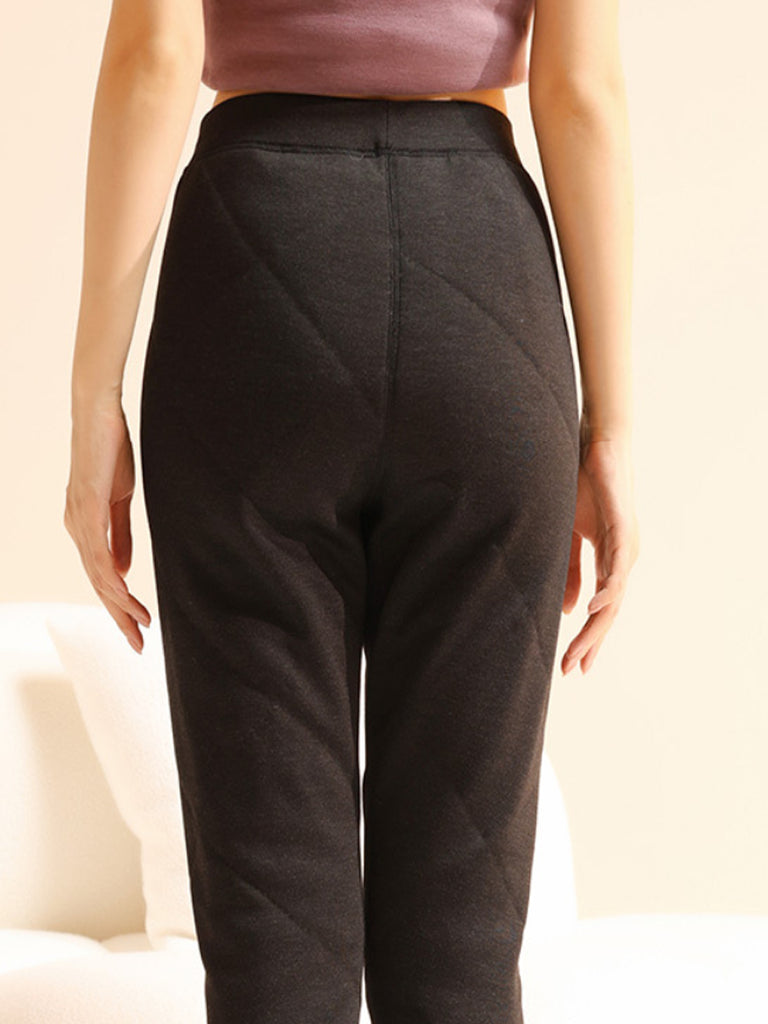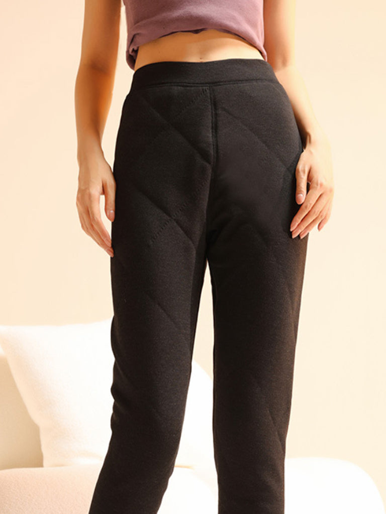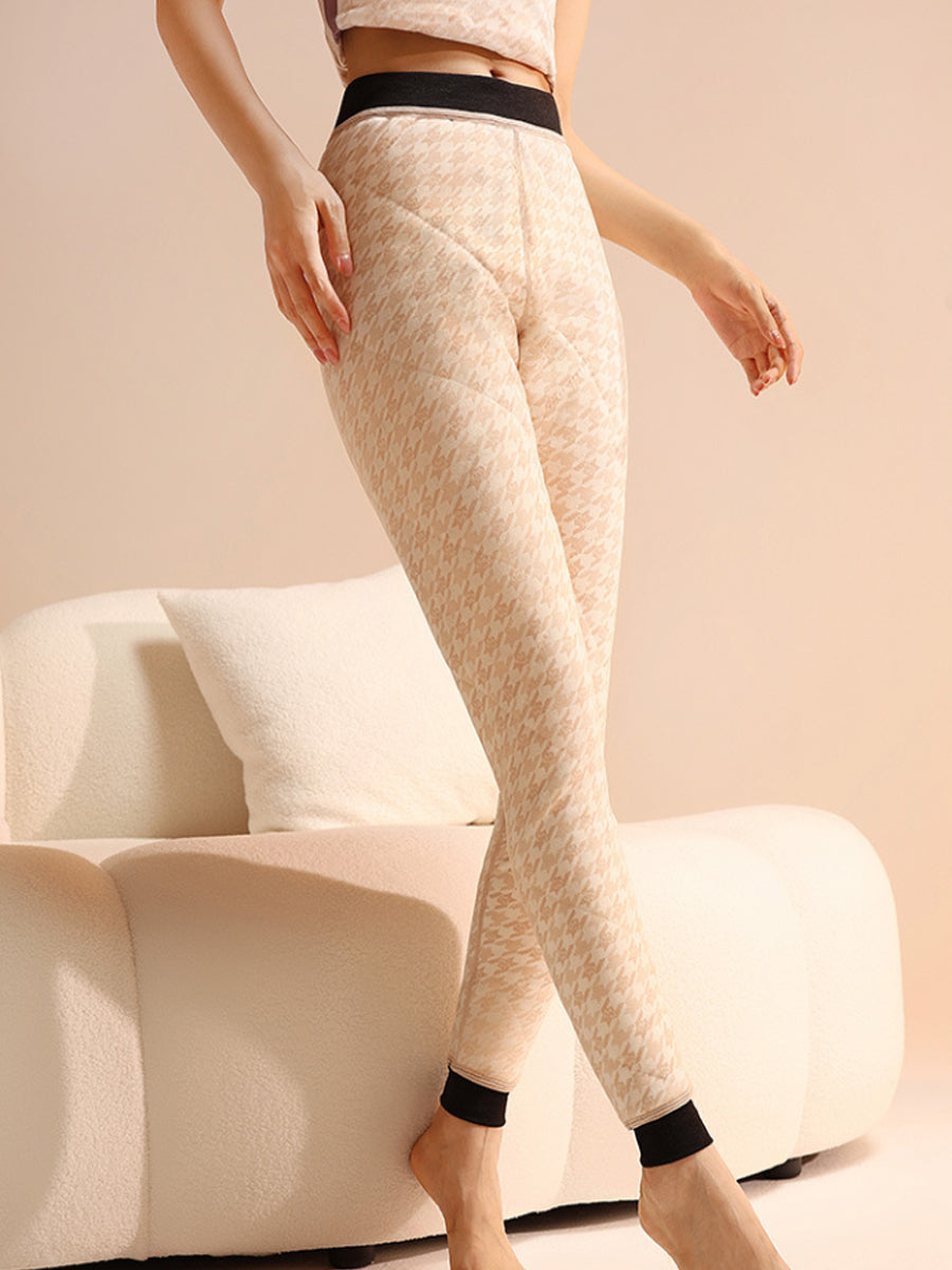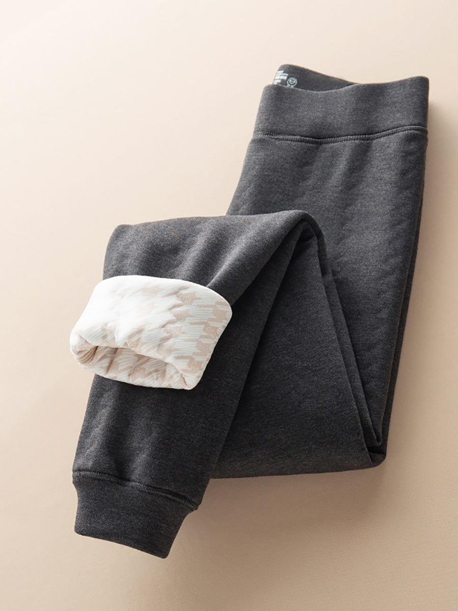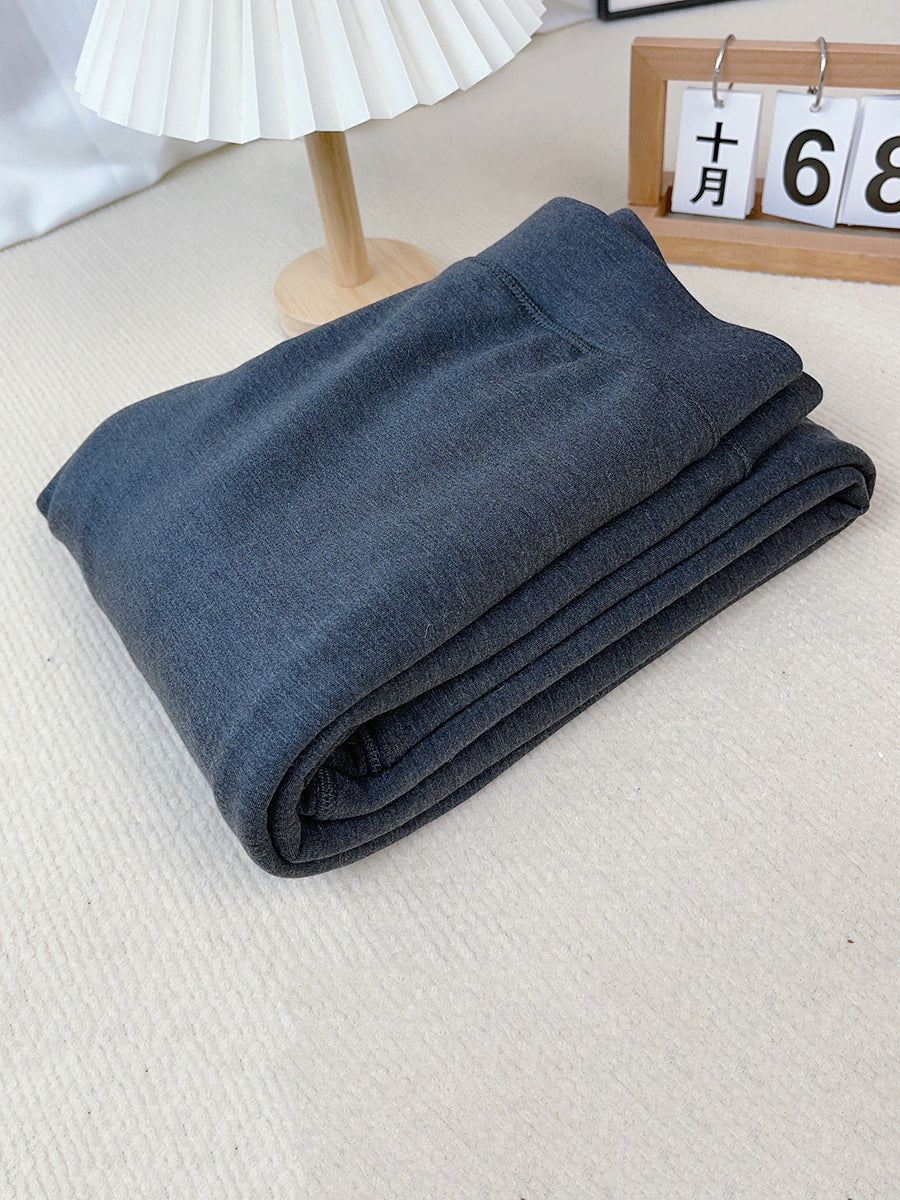 بنطلون ليجنز نسائي شتوي دافئ بلون نقي بخصر مرتفع