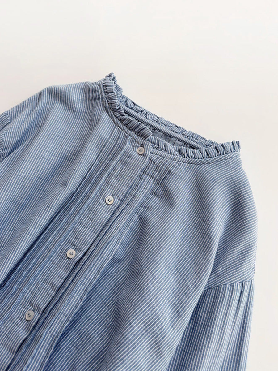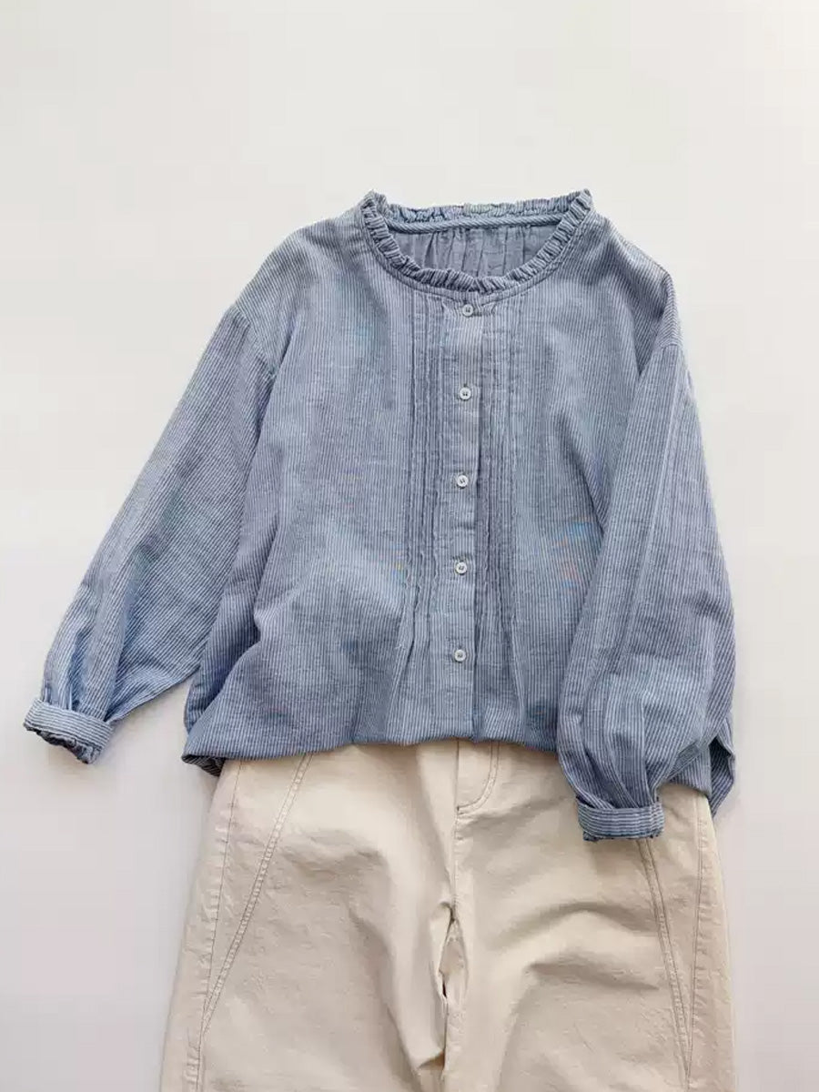 قميص نسائي أنيق بنمط خريفي، مزين بخطوط دانتيل وياقة من القطن الخالص 100%