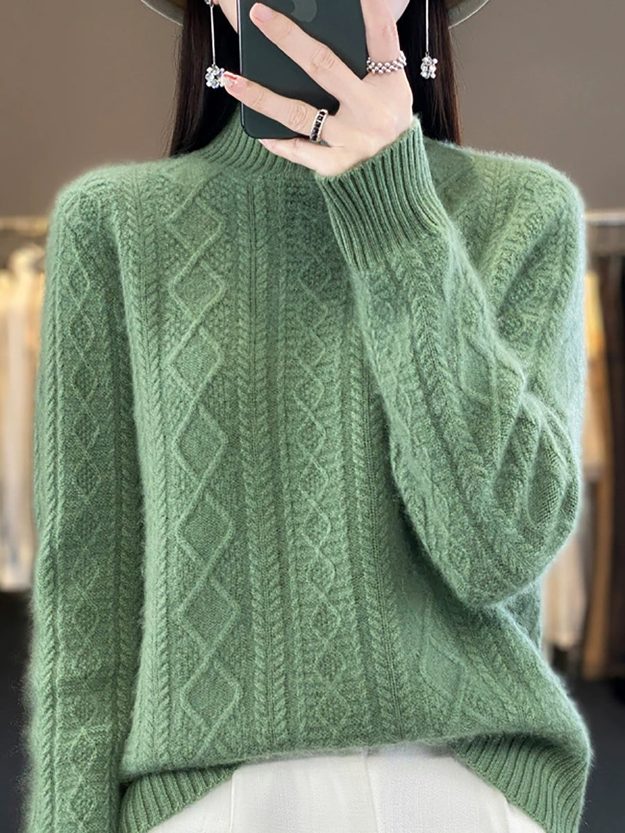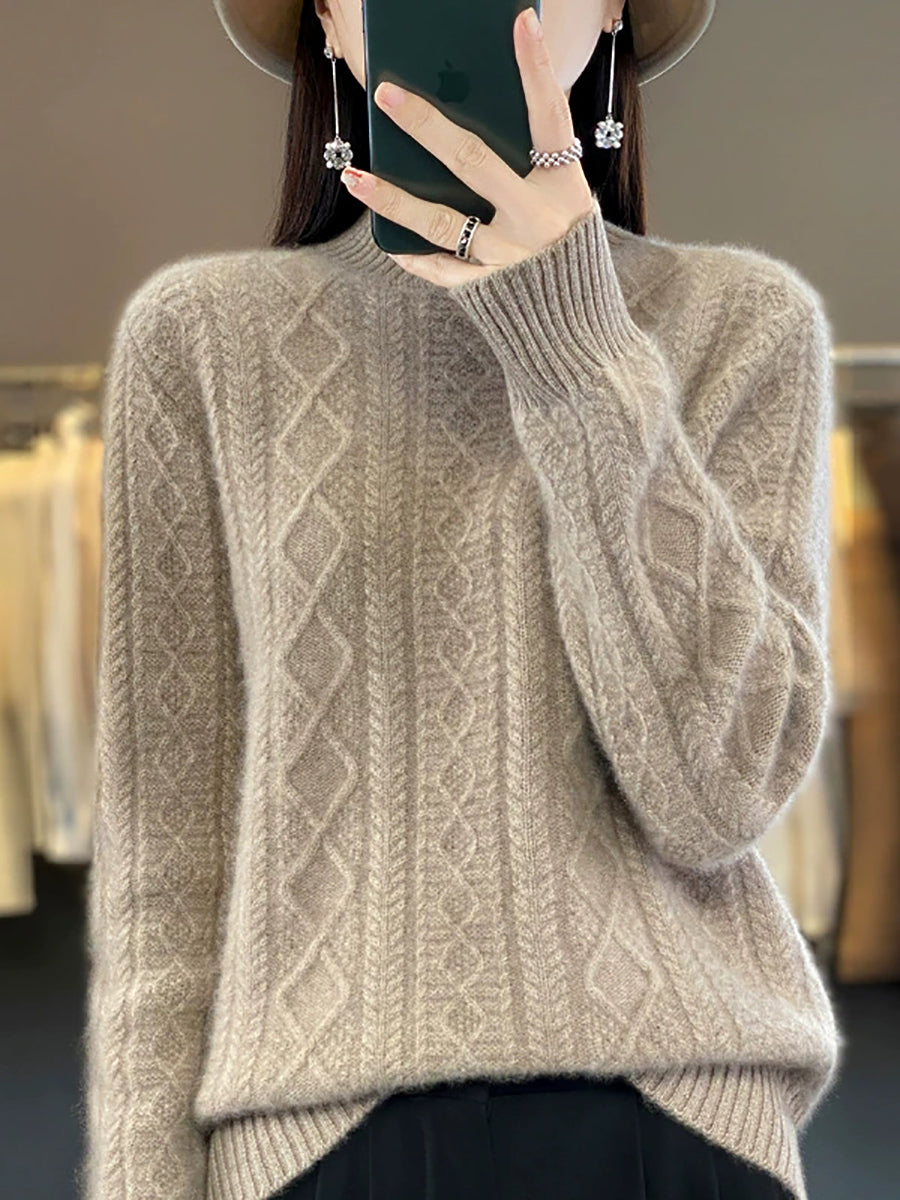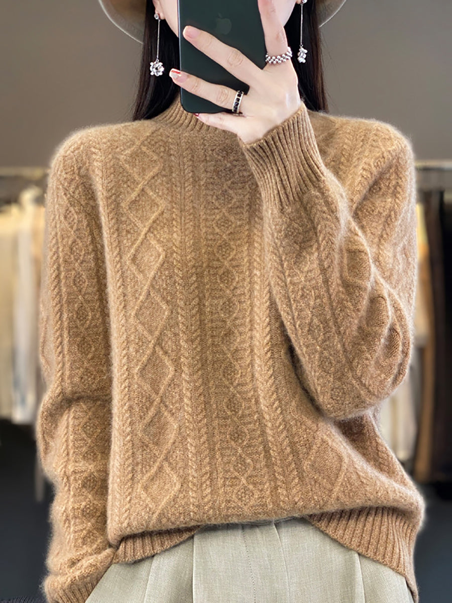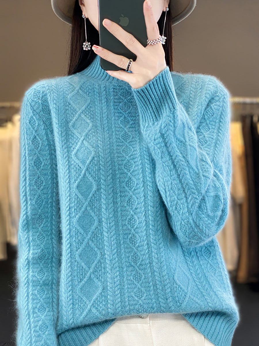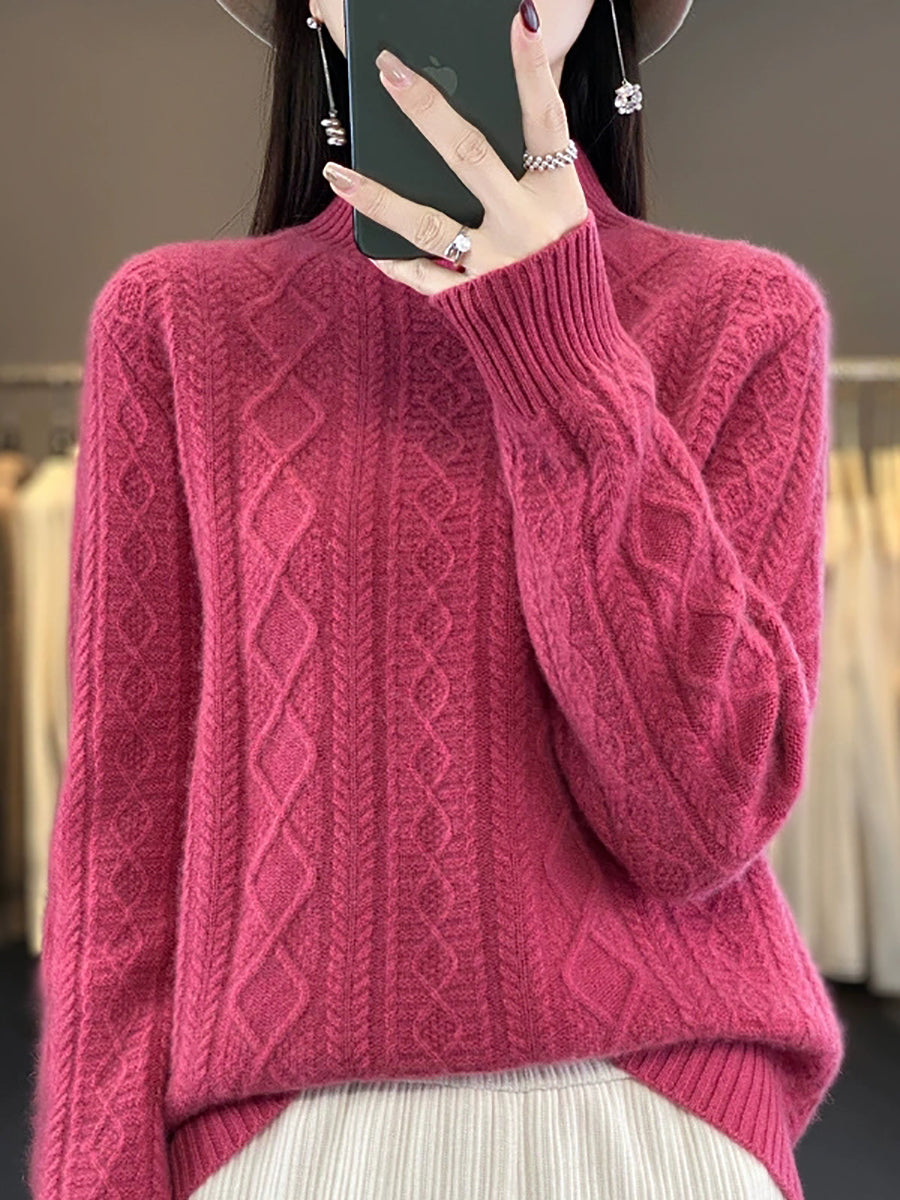 كنزة نسائية خريفية فنية من الصوف الجاكار بنصف ياقة عالية