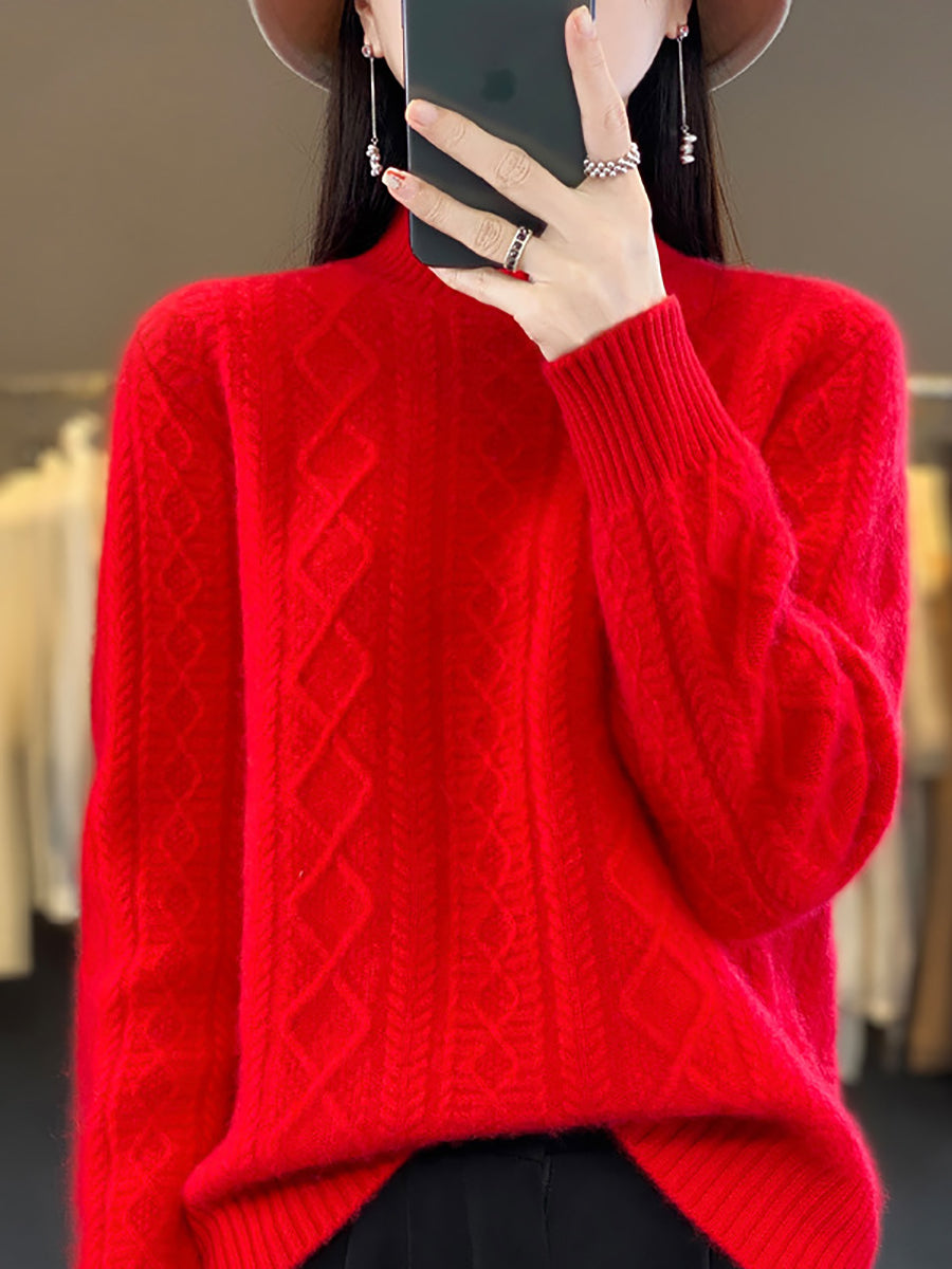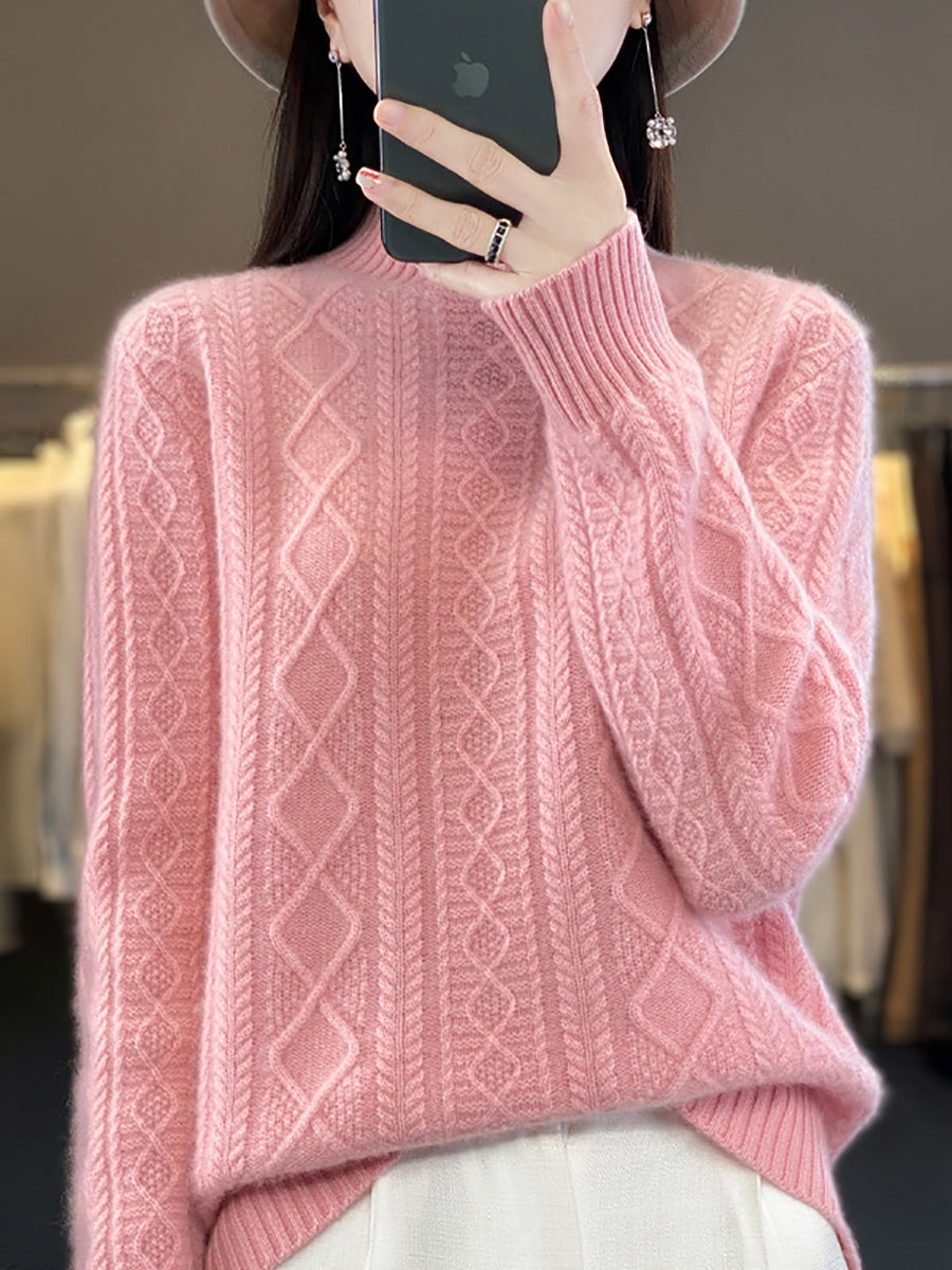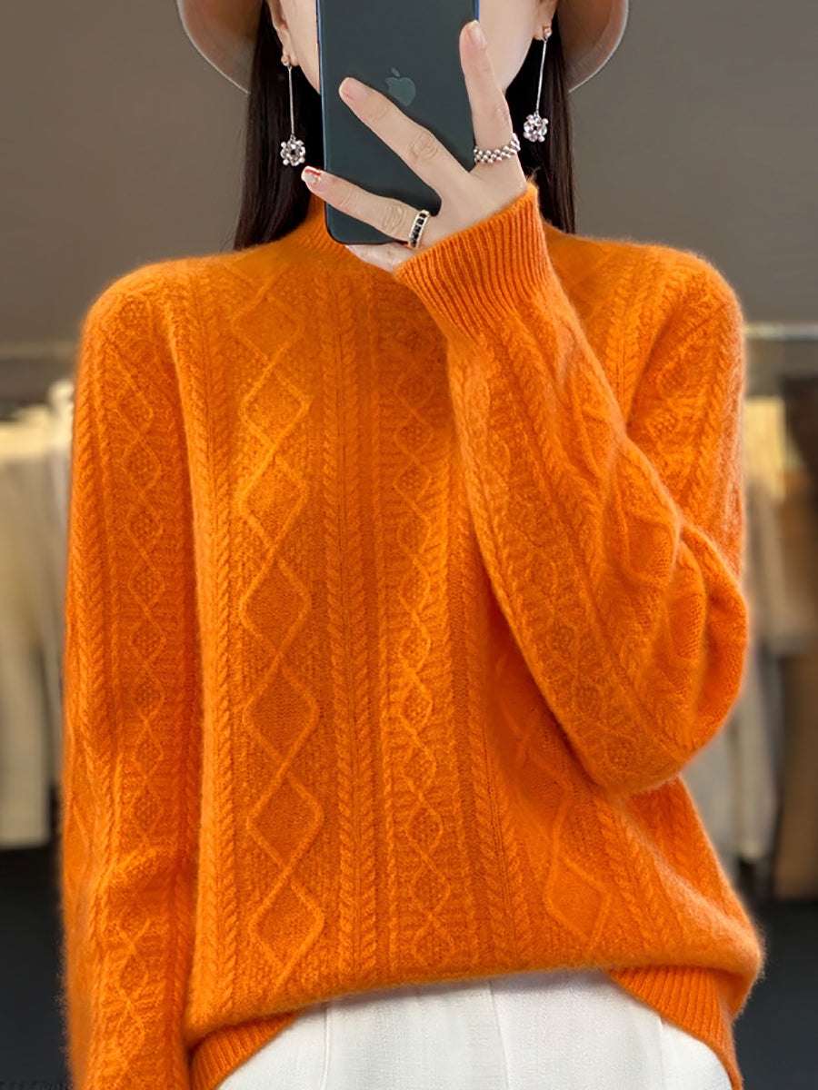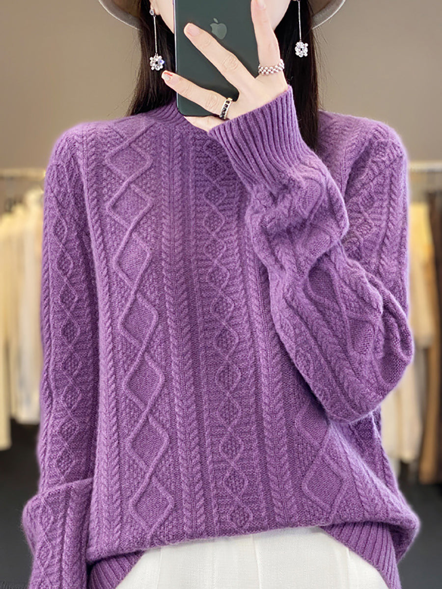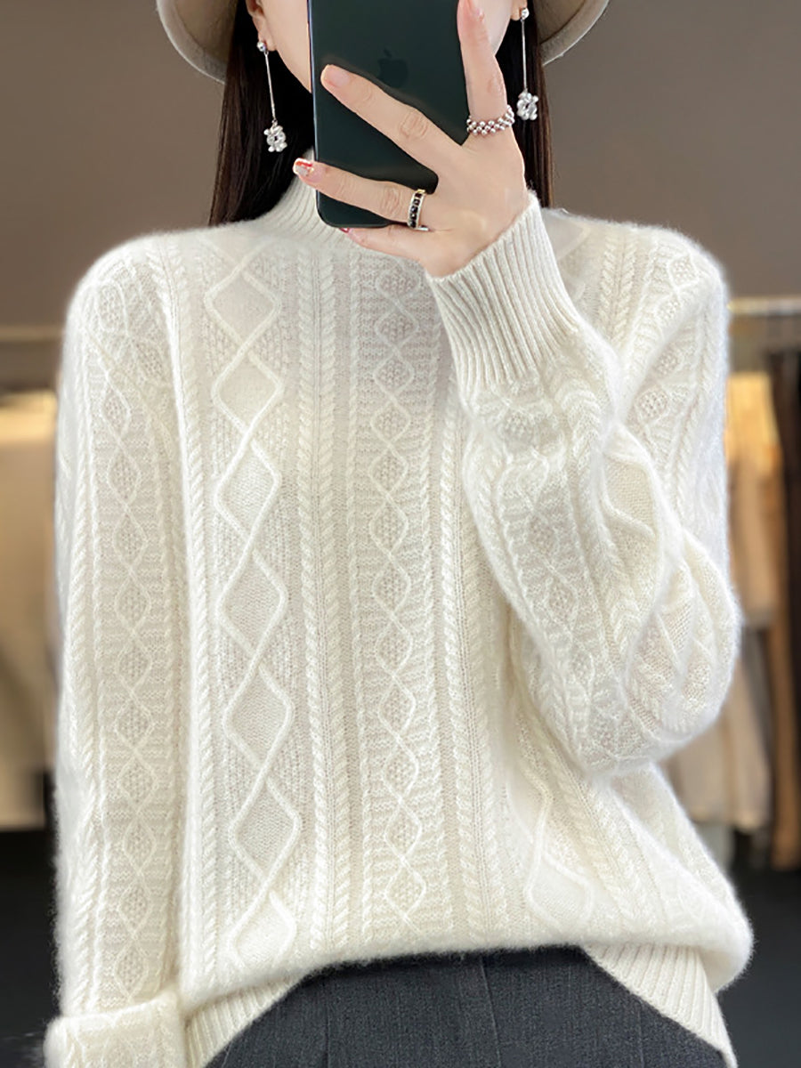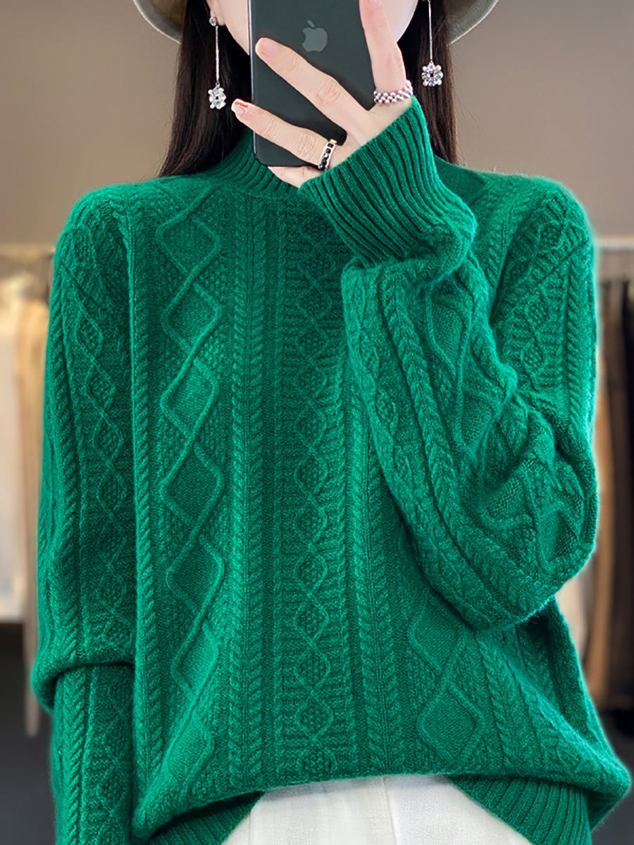 كنزة نسائية خريفية فنية من الصوف الجاكار بنصف ياقة عالية