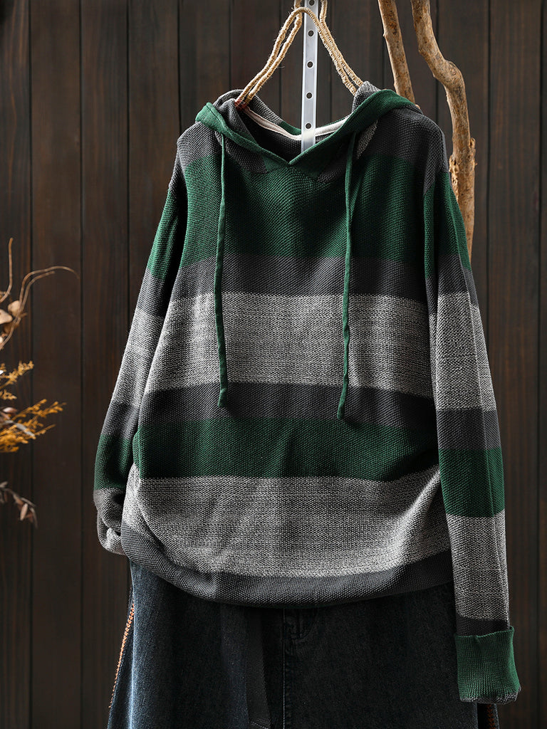 هودي نسائي محبوك مخطط بألوان متعددة مناسب للخريف