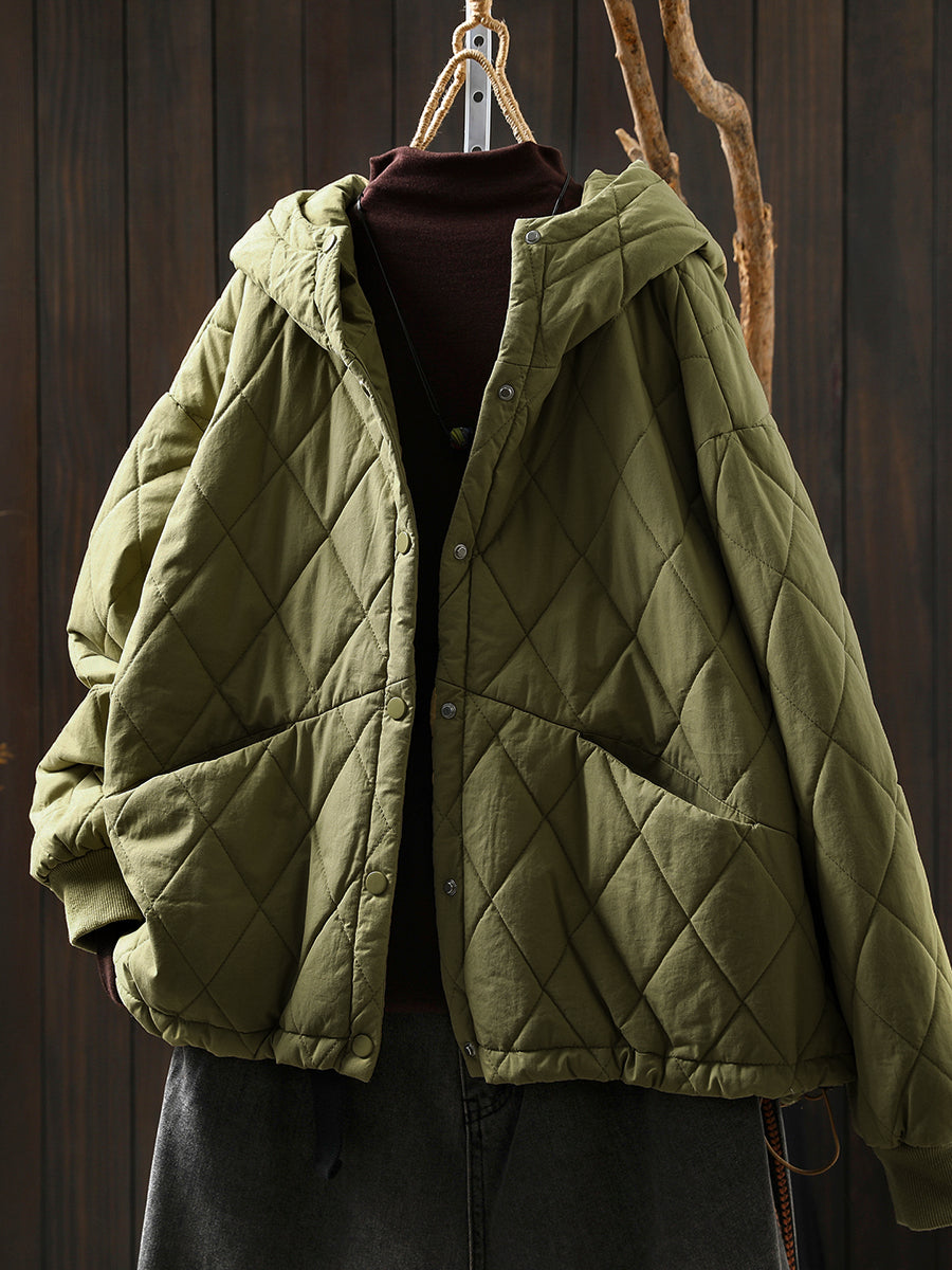 سترة نسائية كاجوال مبطنة بغطاء للرأس بألوان نقية مناسبة للخريف