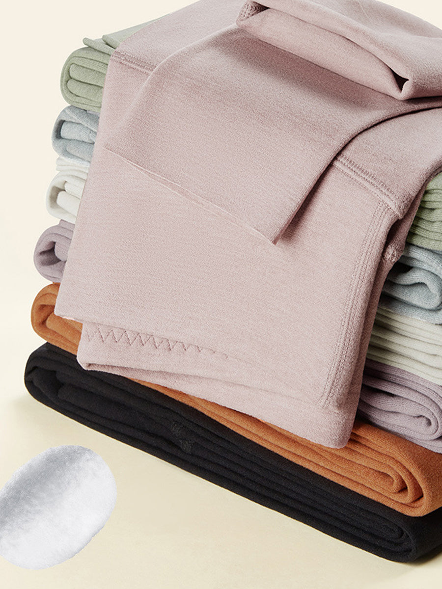 بنطلون ضيق نسائي خريفي دافئ بلون نقي بخصر مرتفع