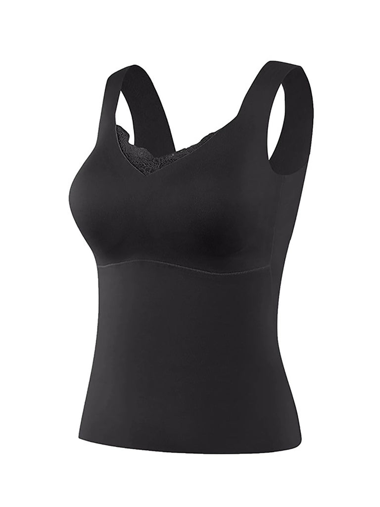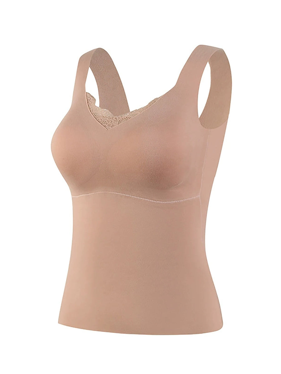 سترة نسائية خريفية دافئة بلون نقي برقبة على شكل حرف V وقاعدة من الدانتيل