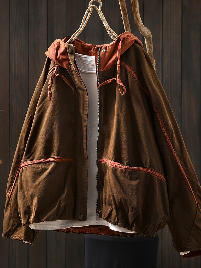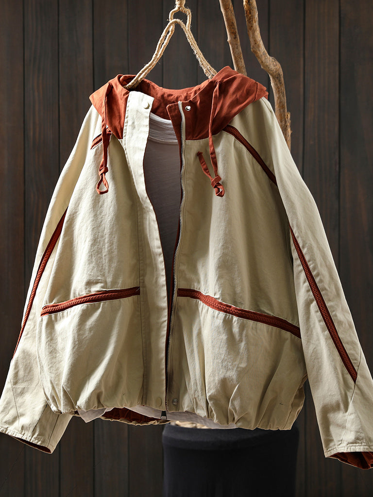 معطف كارديجان نسائي خريفي من القطن بغطاء رأس بألوان متعددة