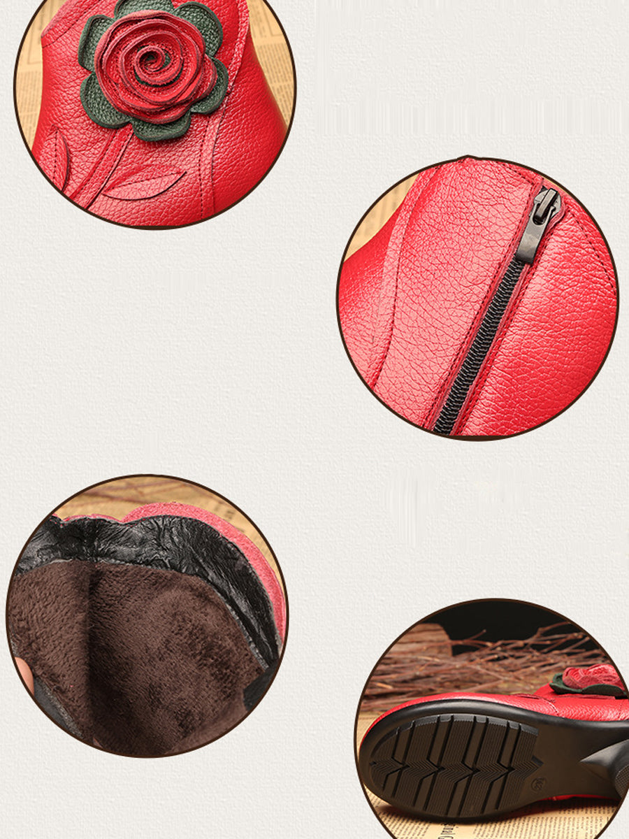 حذاء نسائي خريفي بكعب متوسط من الجلد بتصميم زهور فنية