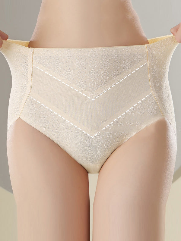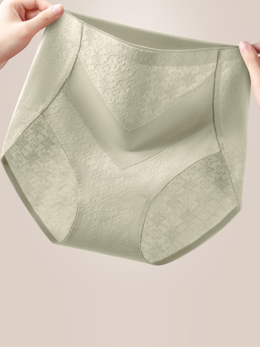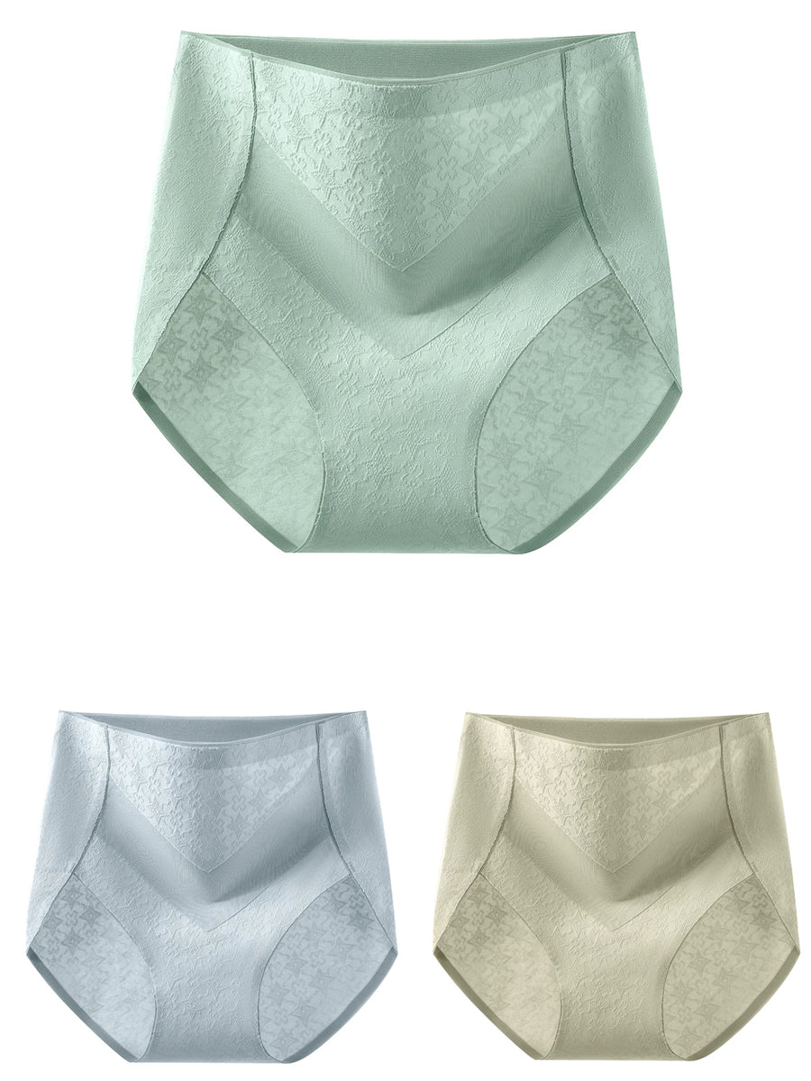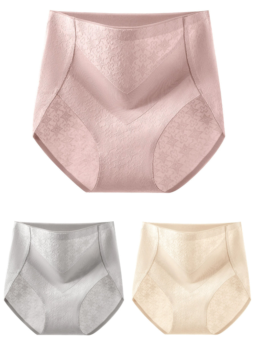 طقم ملابس داخلية نسائية من 3 قطع، بتصميم فني من قماش الجاكار، بخصر عالٍ