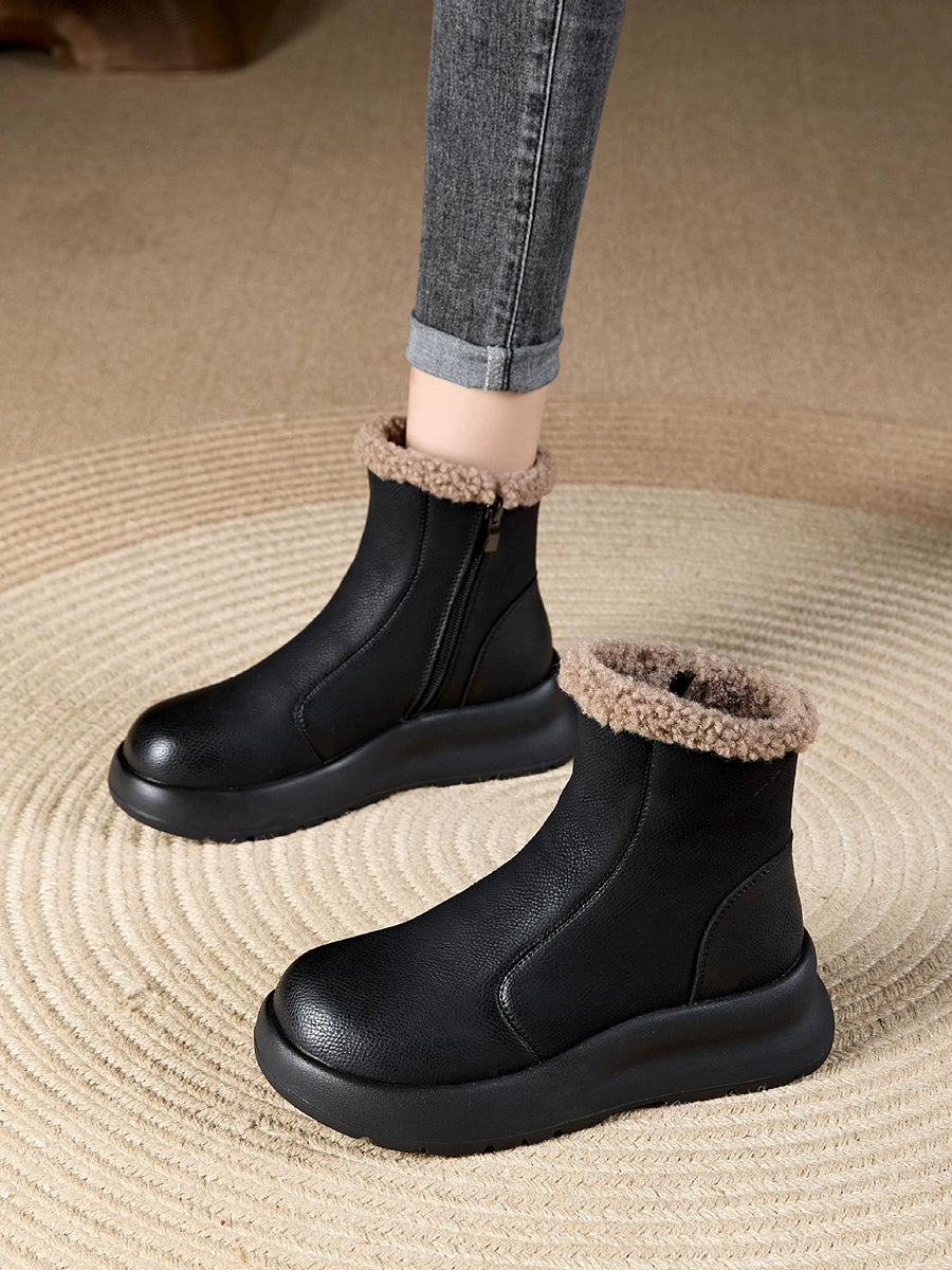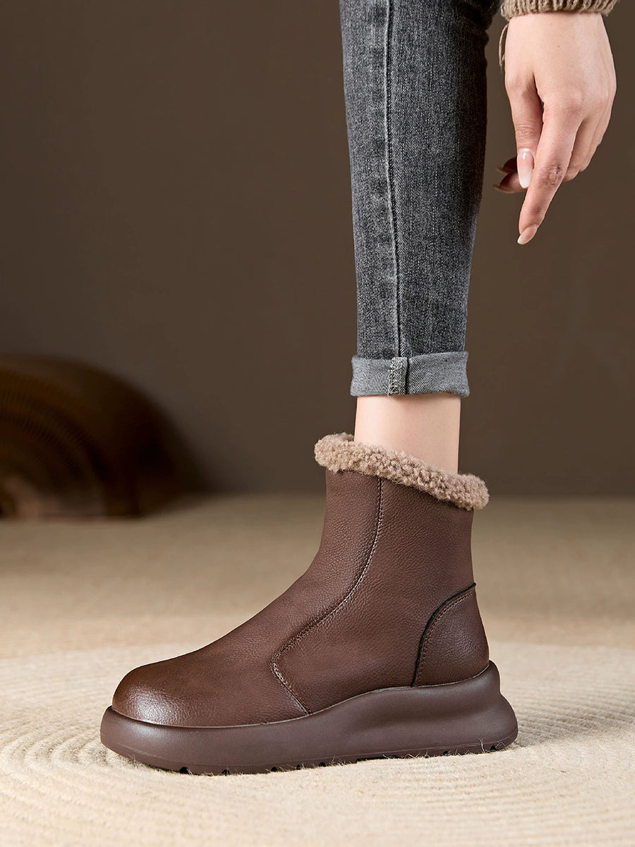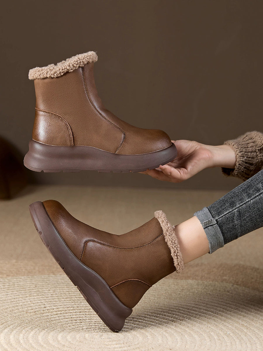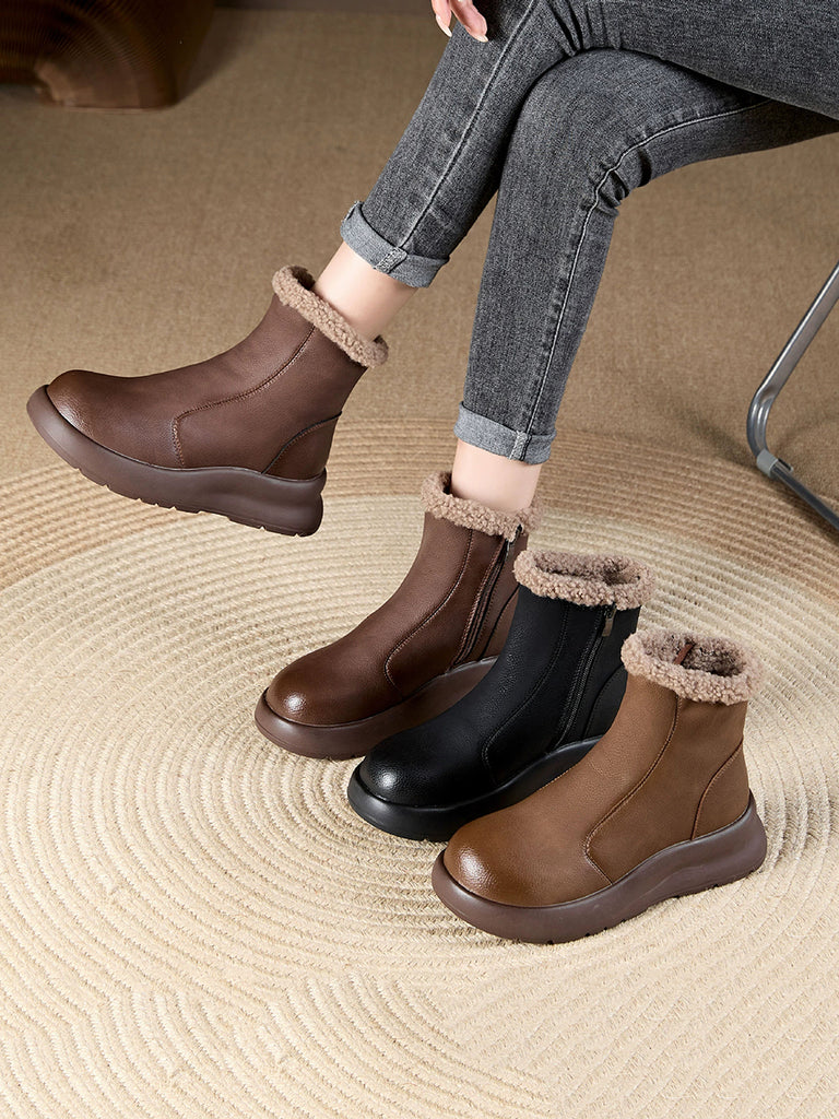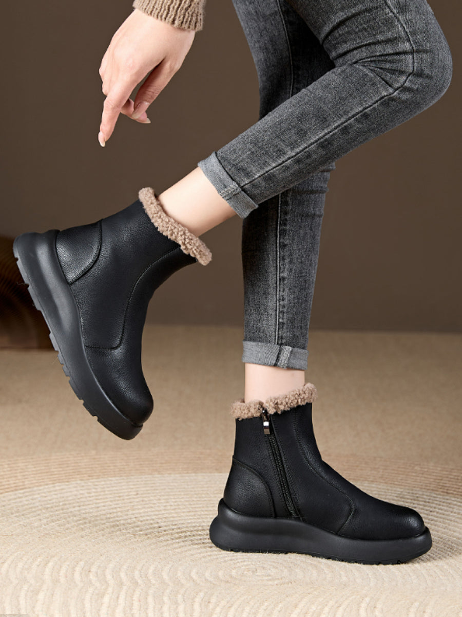 حذاء نسائي شتوي كاجوال من الجلد الناعم مبطن بالصوف