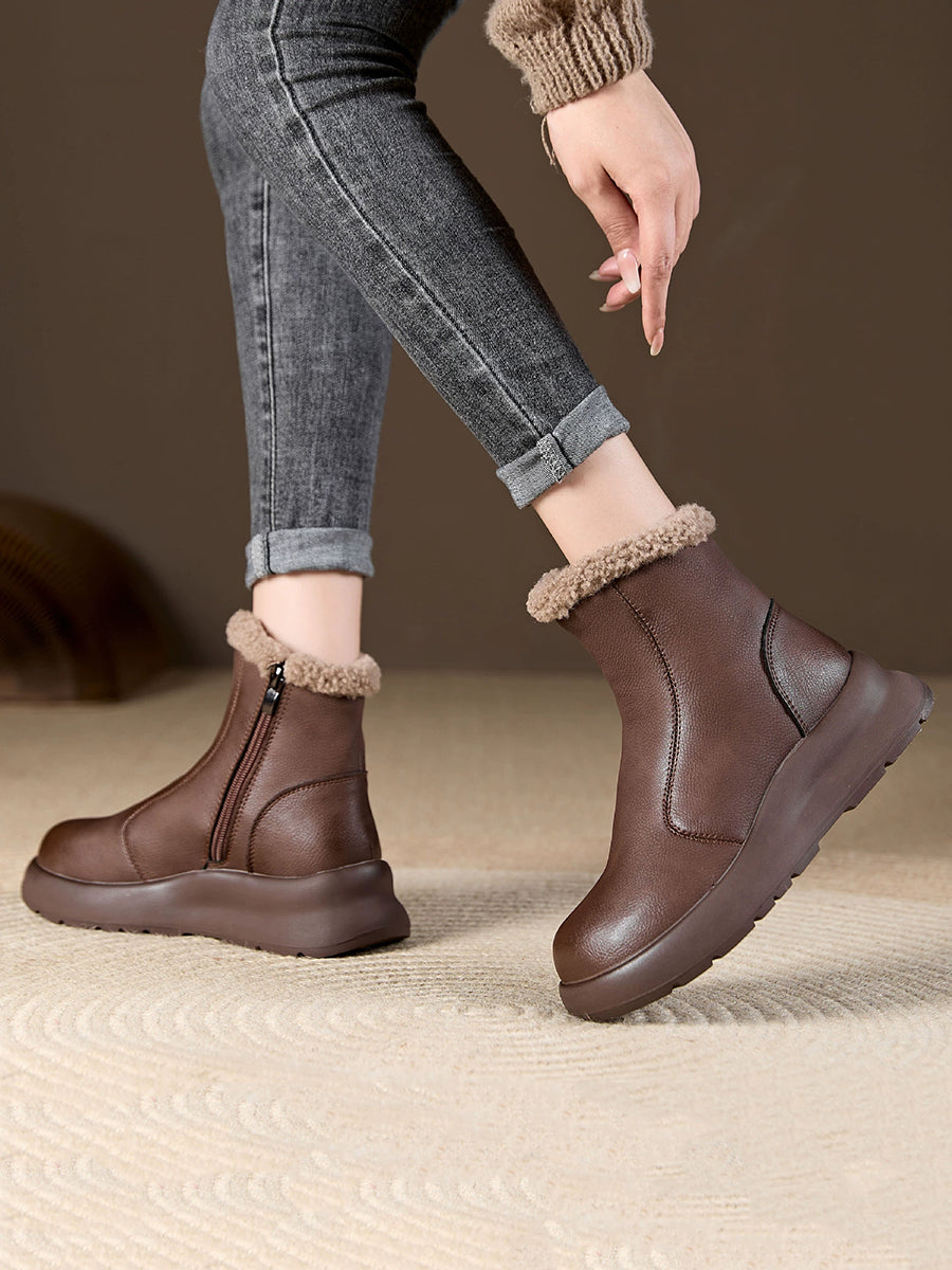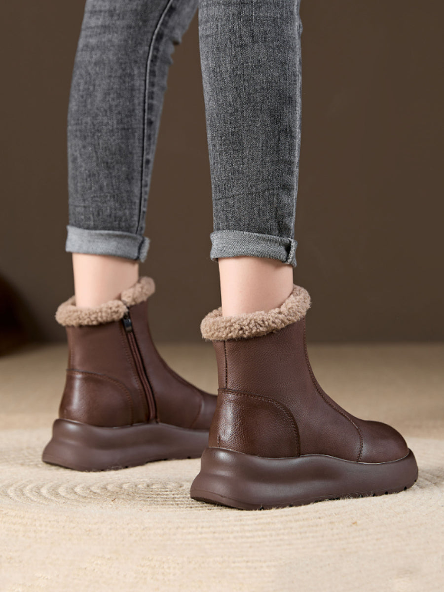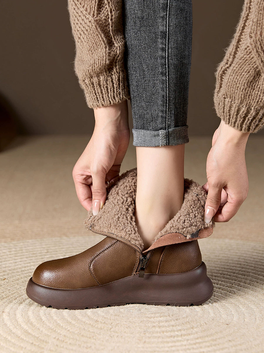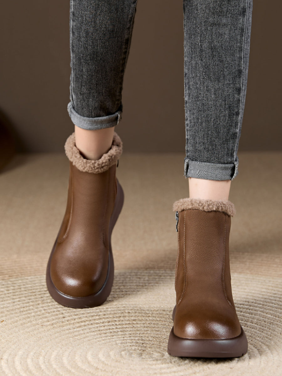 حذاء نسائي شتوي كاجوال من الجلد الناعم مبطن بالصوف