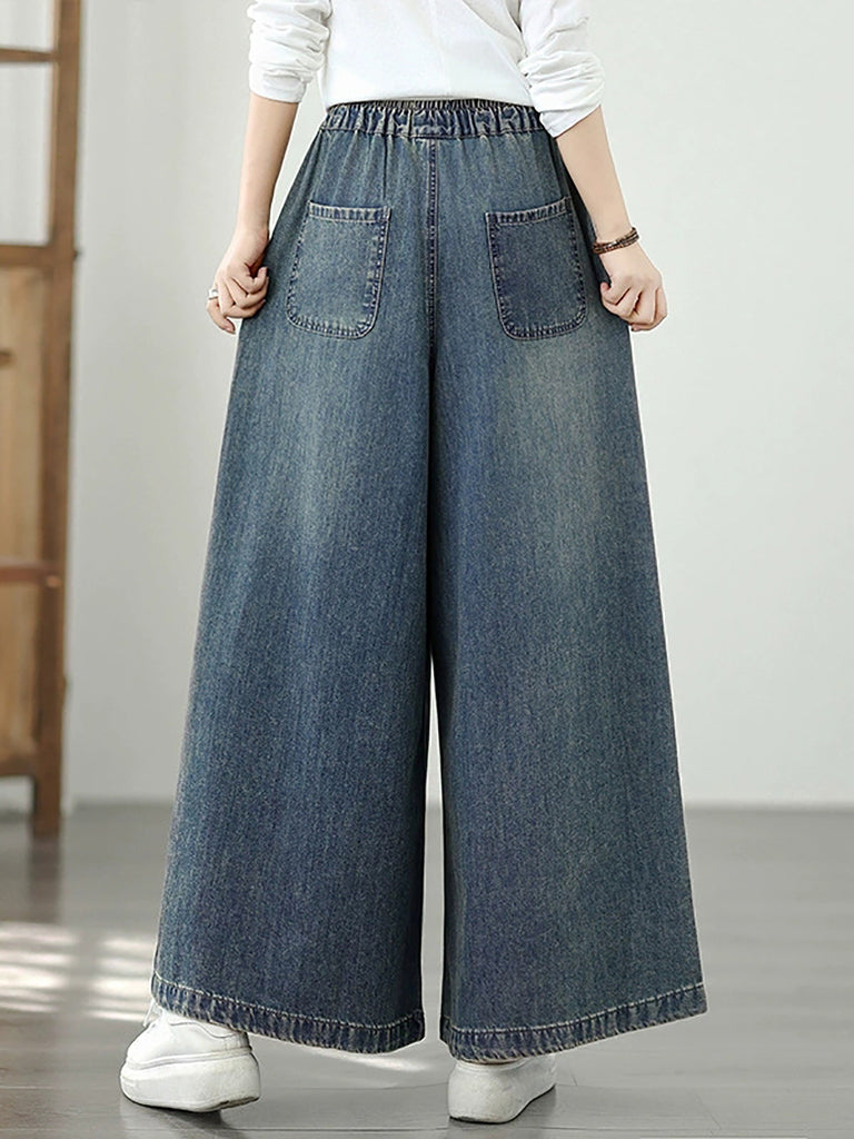 بنطلون جينز نسائي واسع الساق مطرز بشكل فني لفصل الخريف