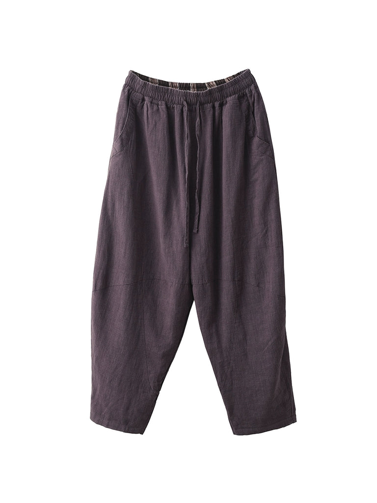 بنطلون حريم نسائي خريفي مزدوج الجوانب مصنوع من الكتان بنسبة 100%