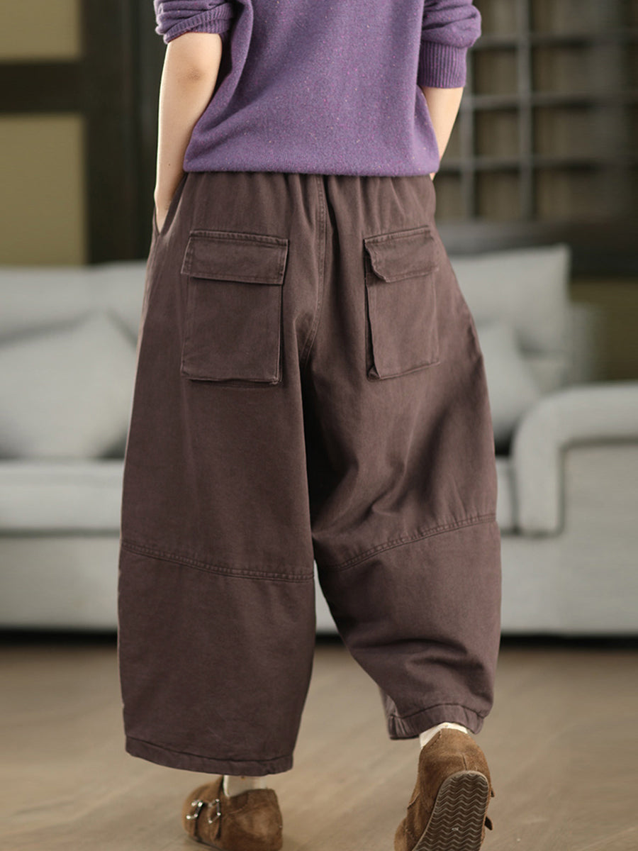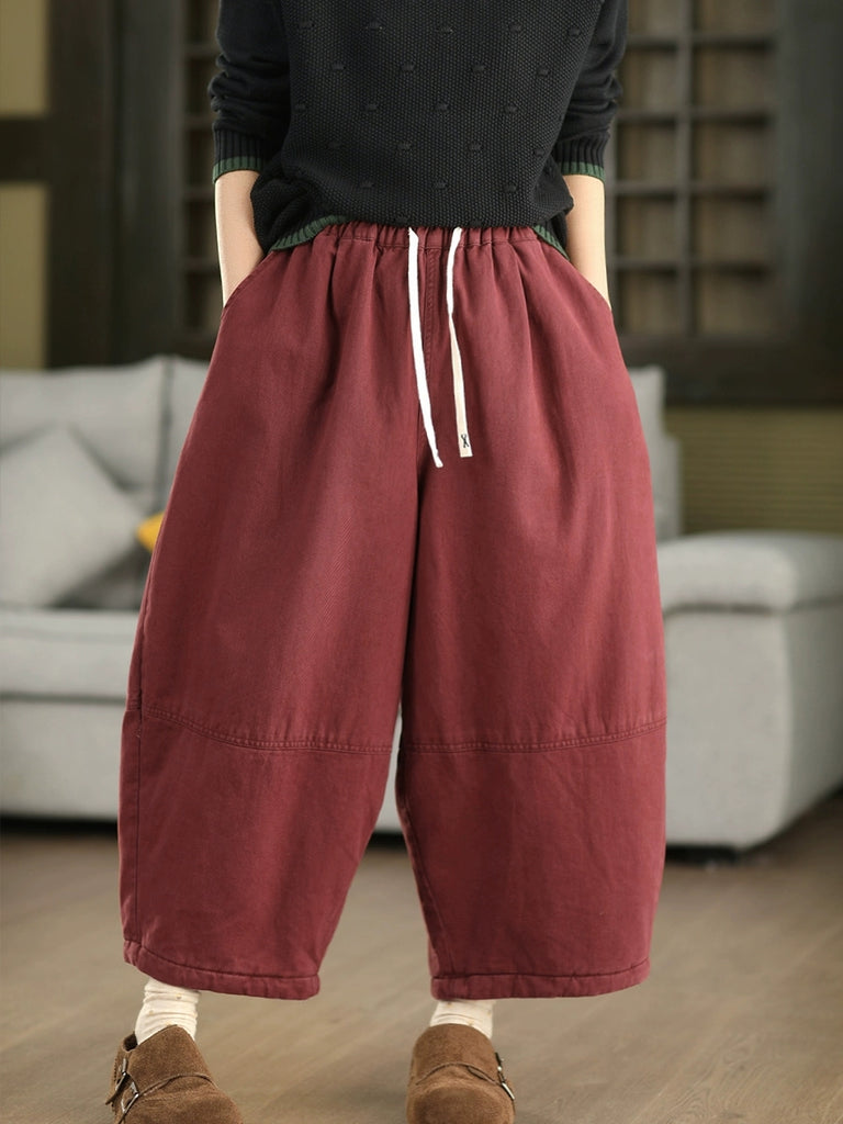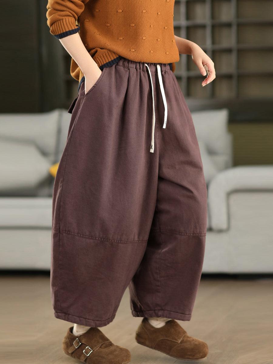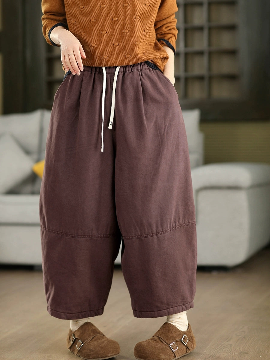 بنطلون حريم نسائي شتوي مبطن مصنوع من القطن بنسبة 100% بلون نقي
