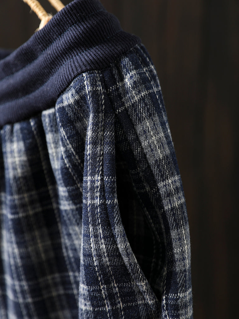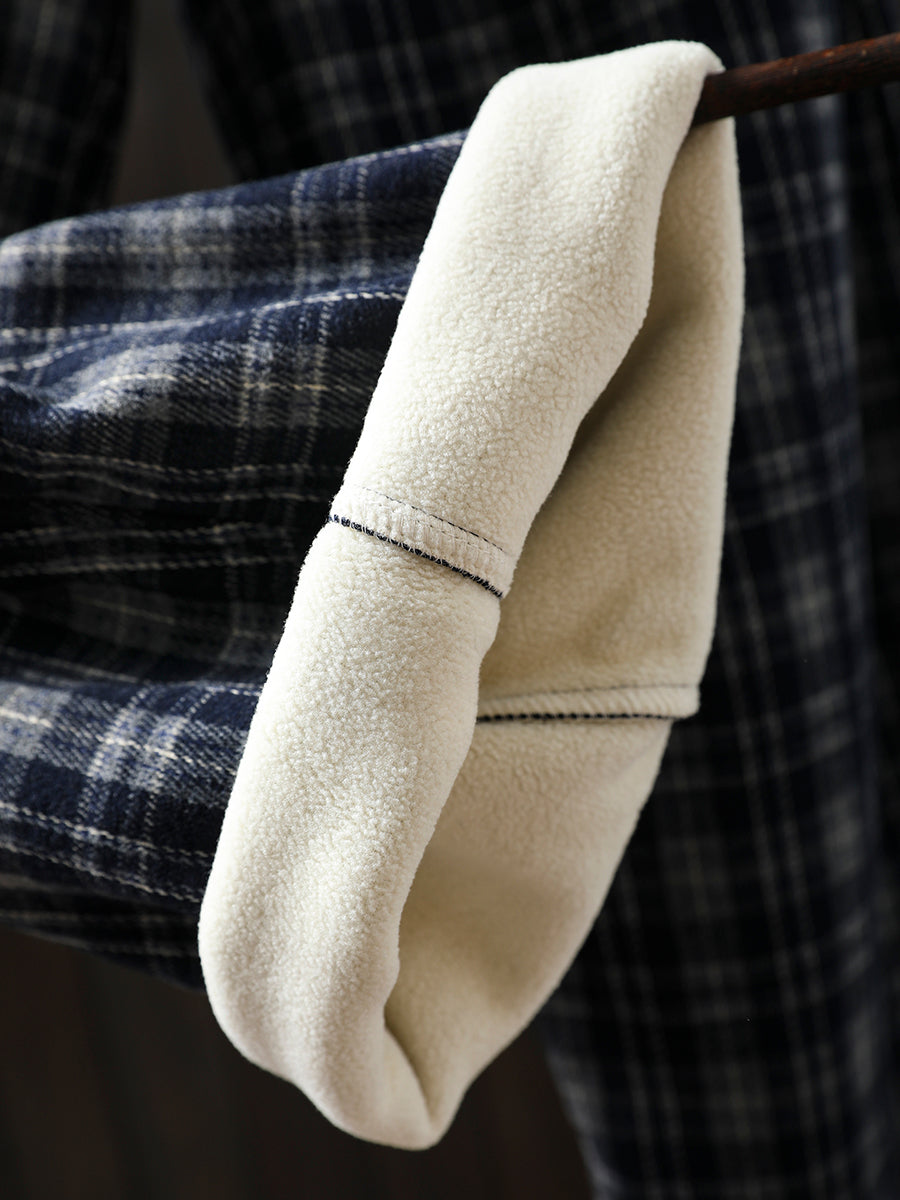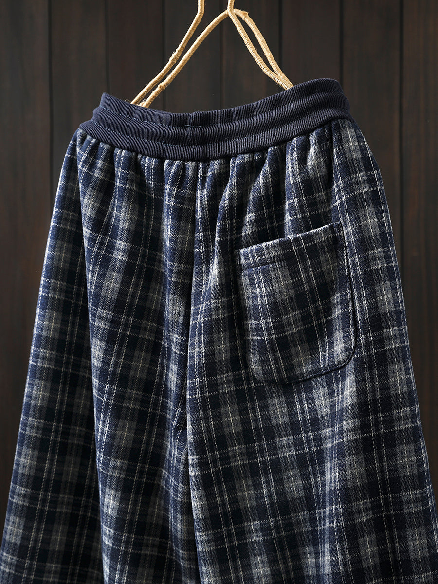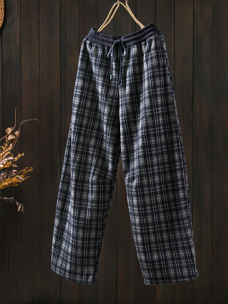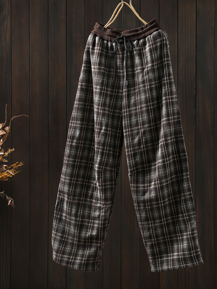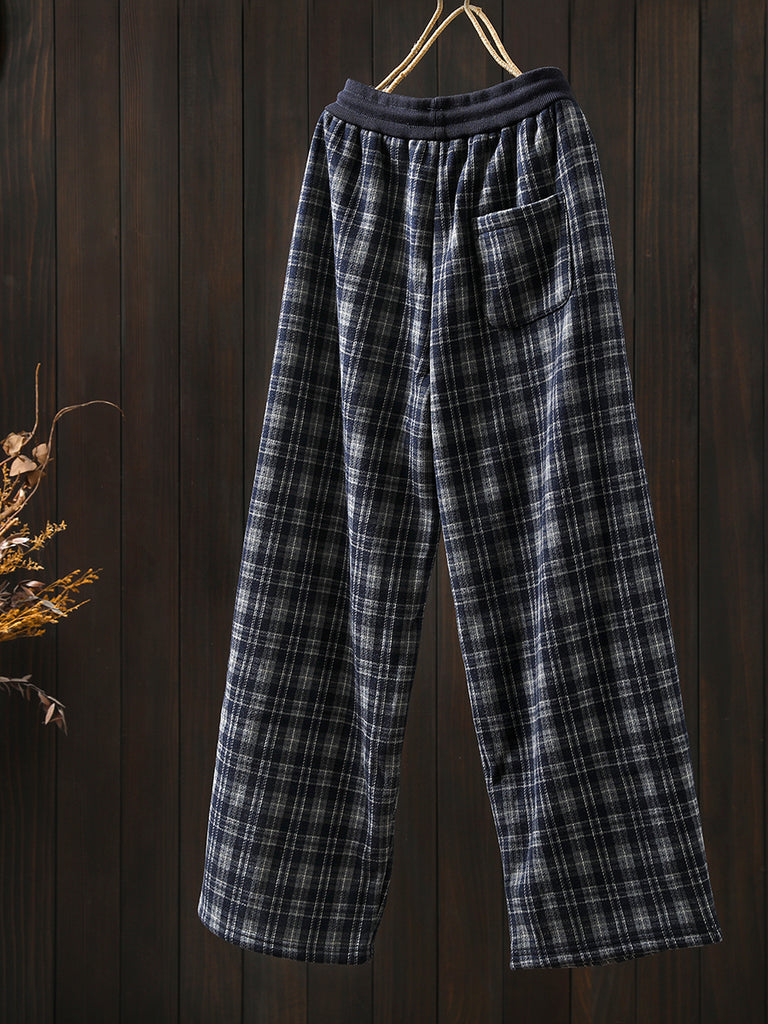 بنطلون نسائي شتوي واسع الساق مبطن بالصوف منقوش