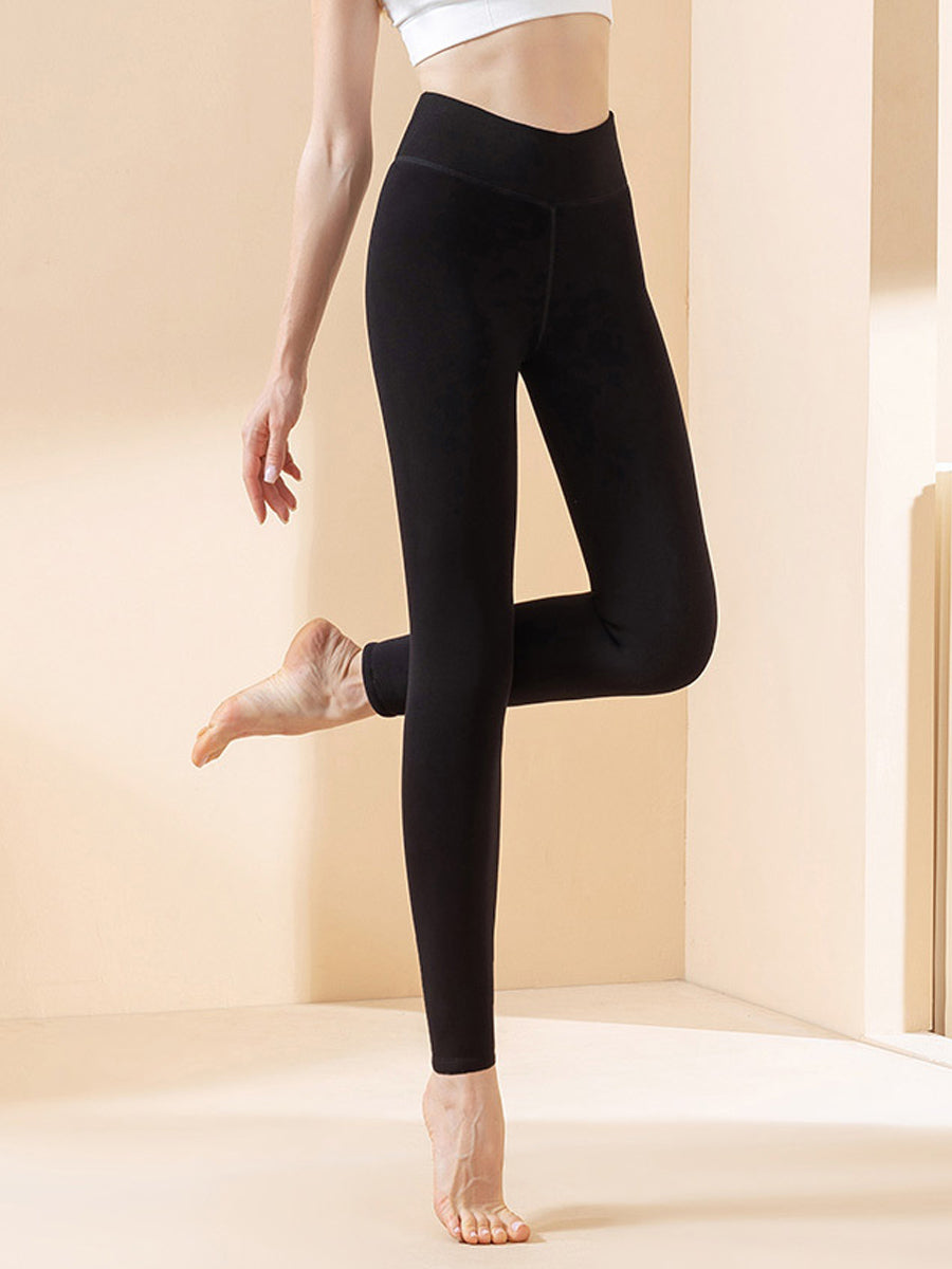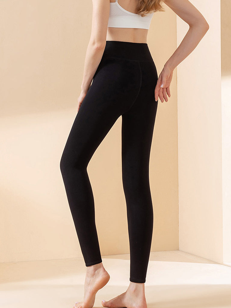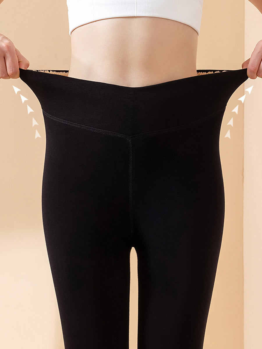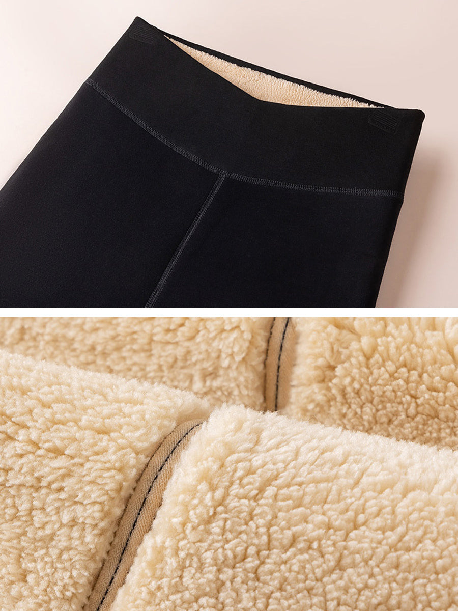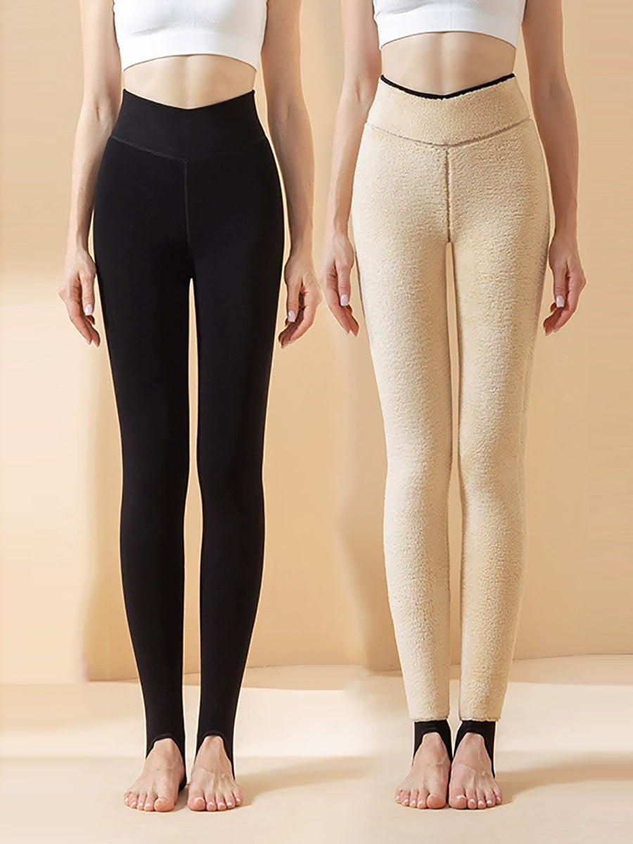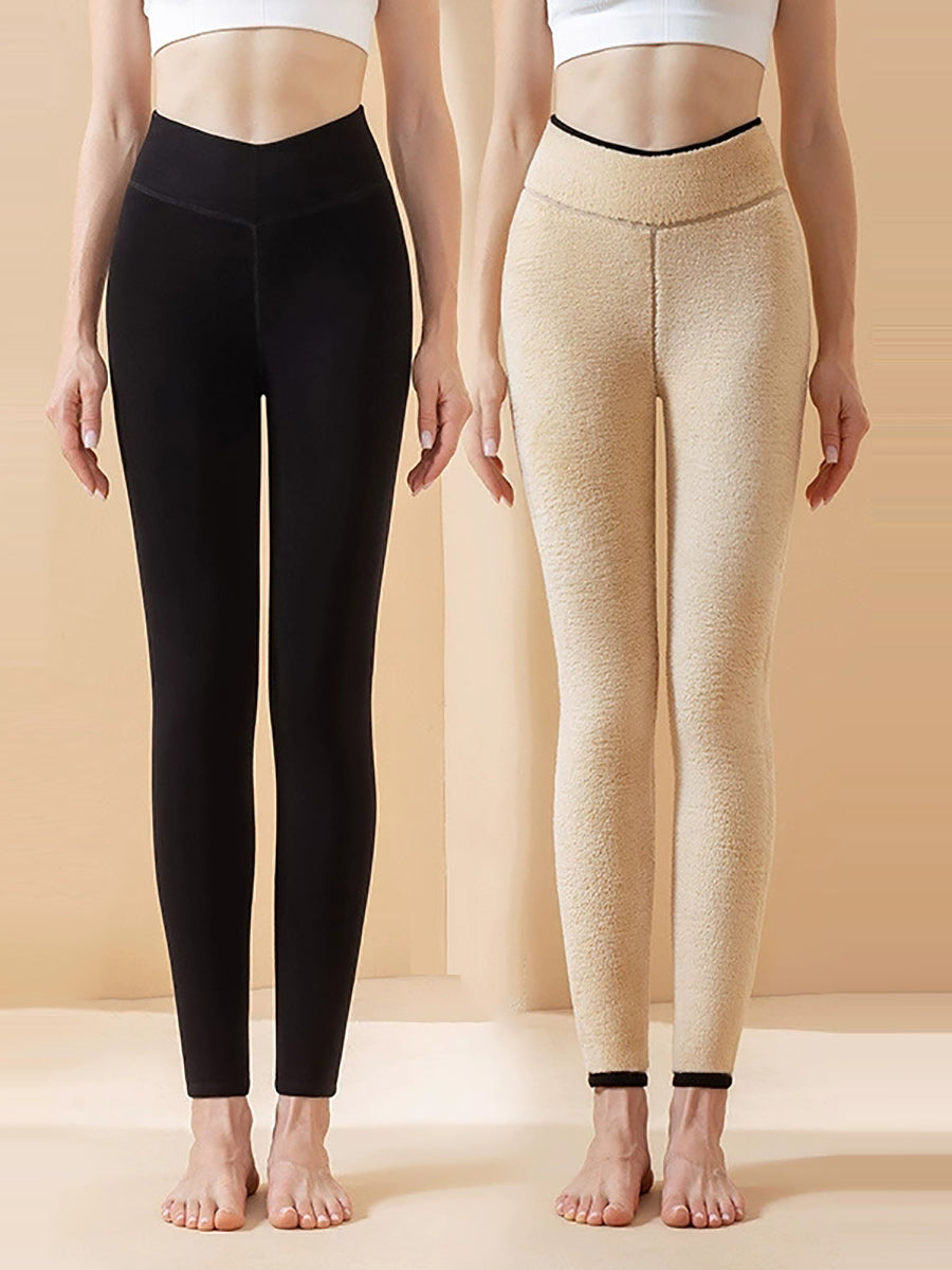 بنطال ضيق شتوي دافئ للنساء بلون نقي مبطن بالصوف