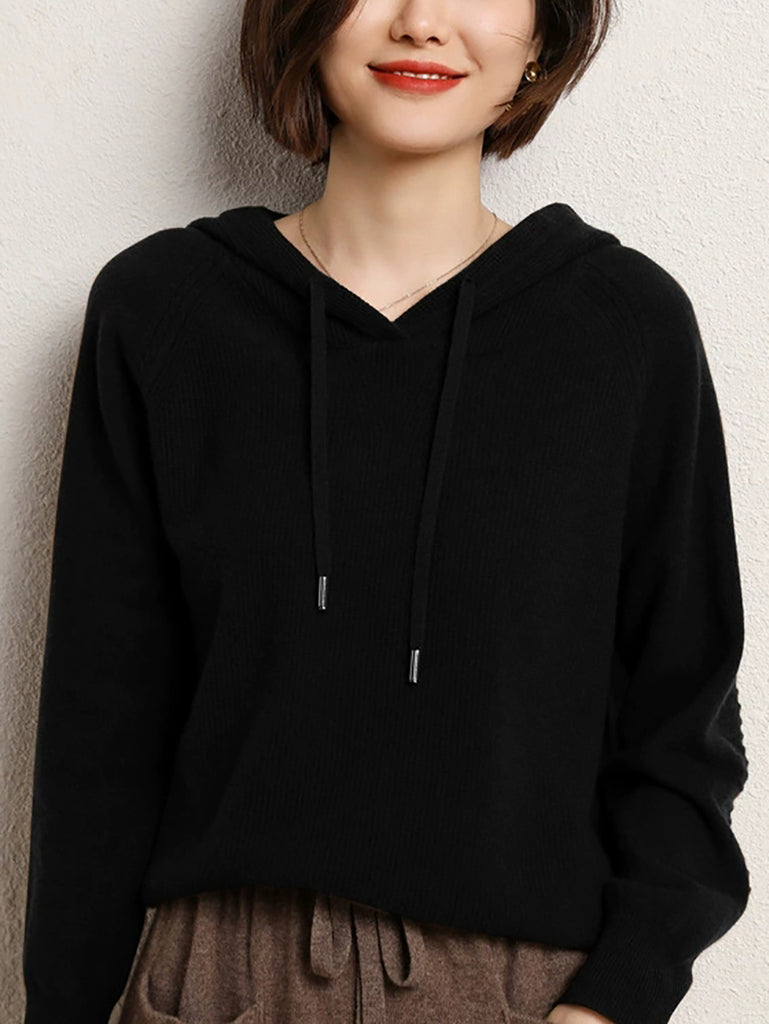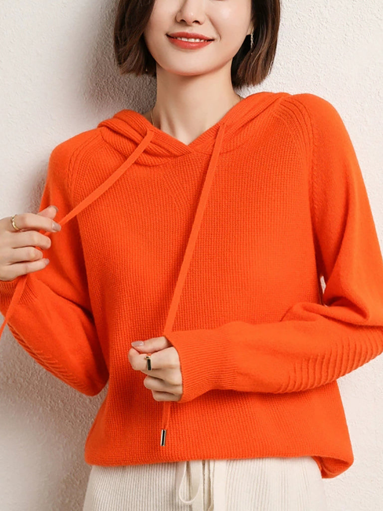 سترة نسائية كاجوال خريفية محبوكة بغطاء للرأس بلون نقي