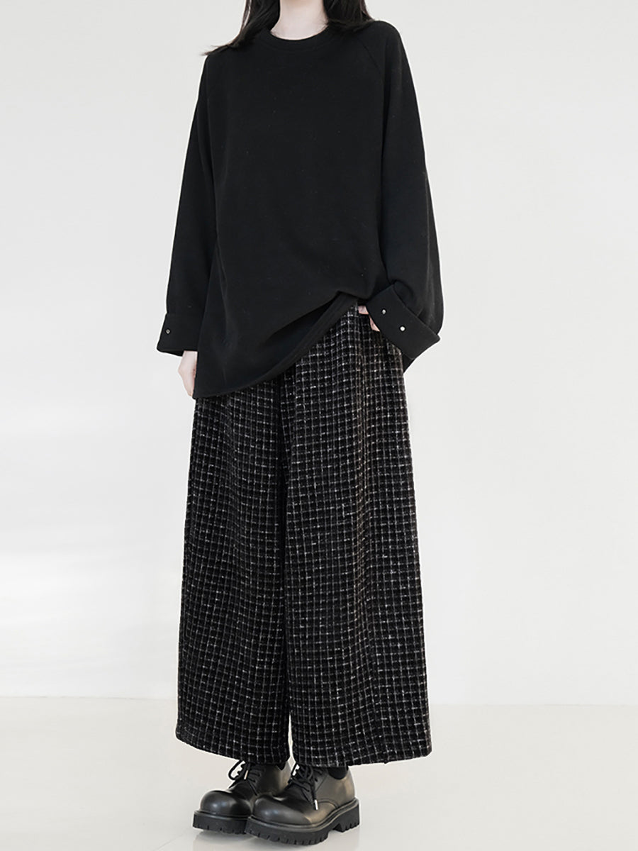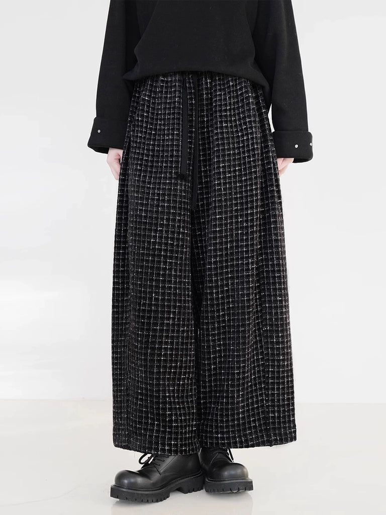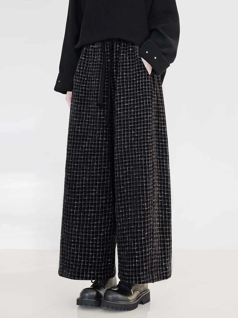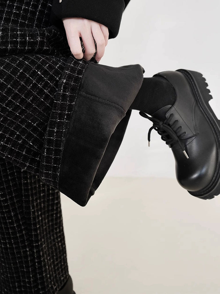 بنطلون نسائي مستقيم مبطن بالصوف بتصميم مربعات عتيقة