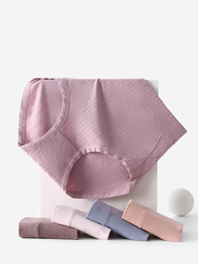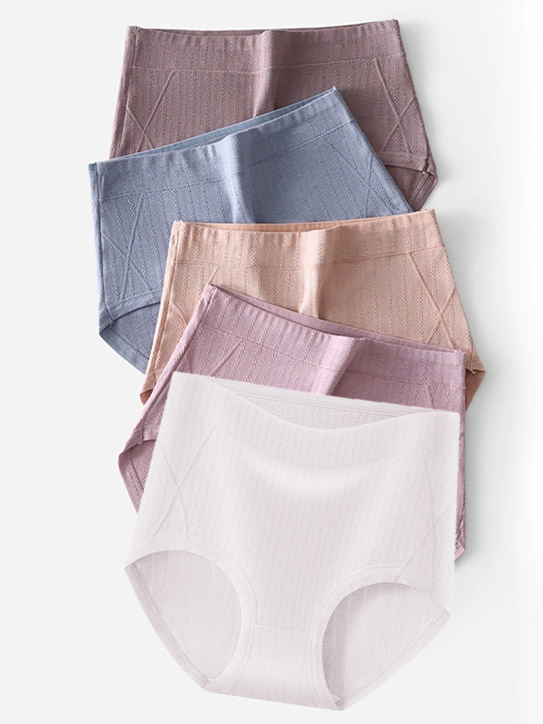 5 قطع ملابس داخلية نسائية كاجوال بلون نقي بخصر مرتفع