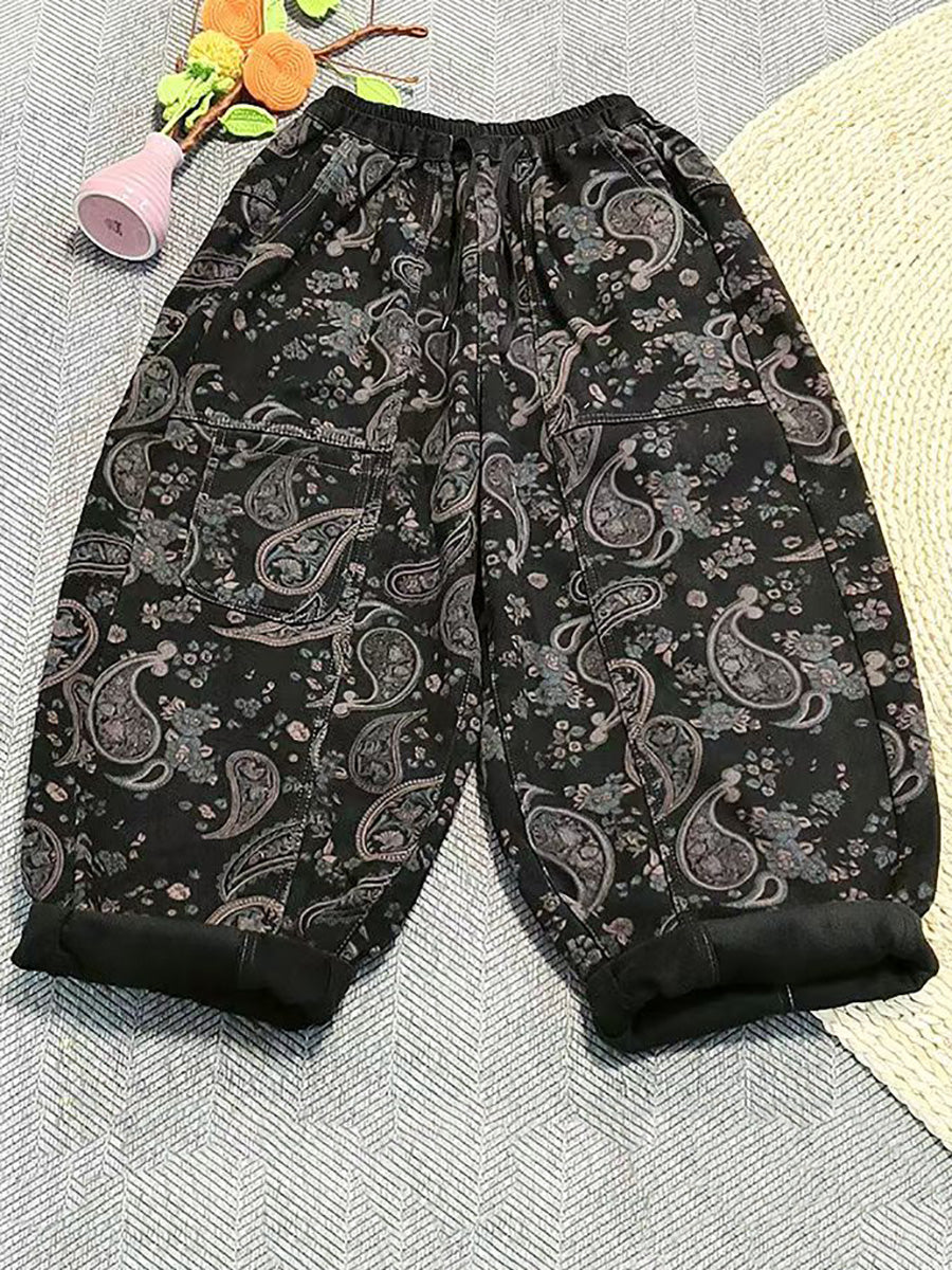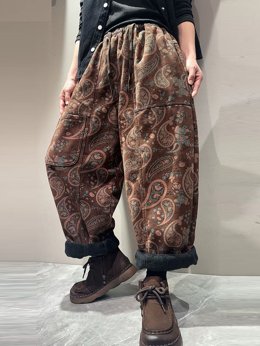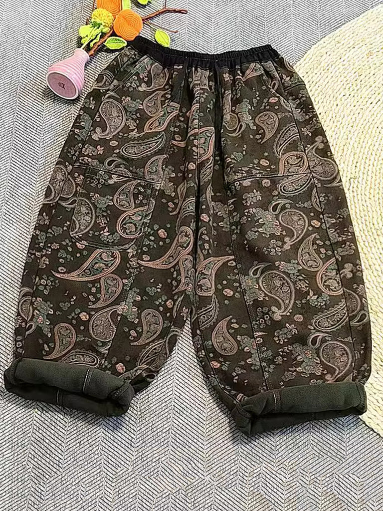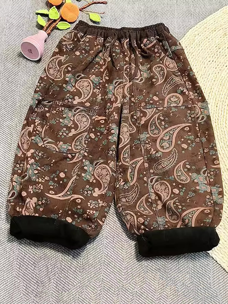 بنطلون حريم نسائي مبطن بالصوف بنقشة زهور عتيقة