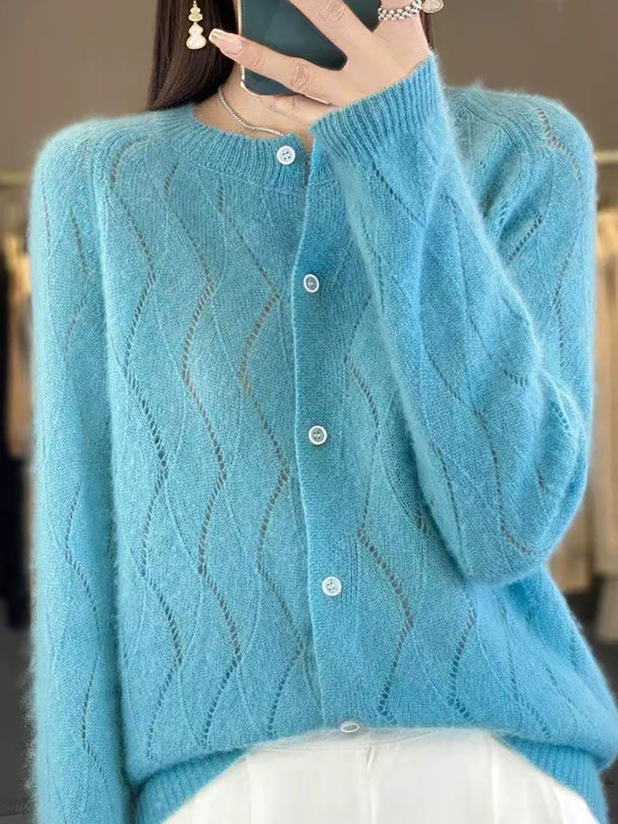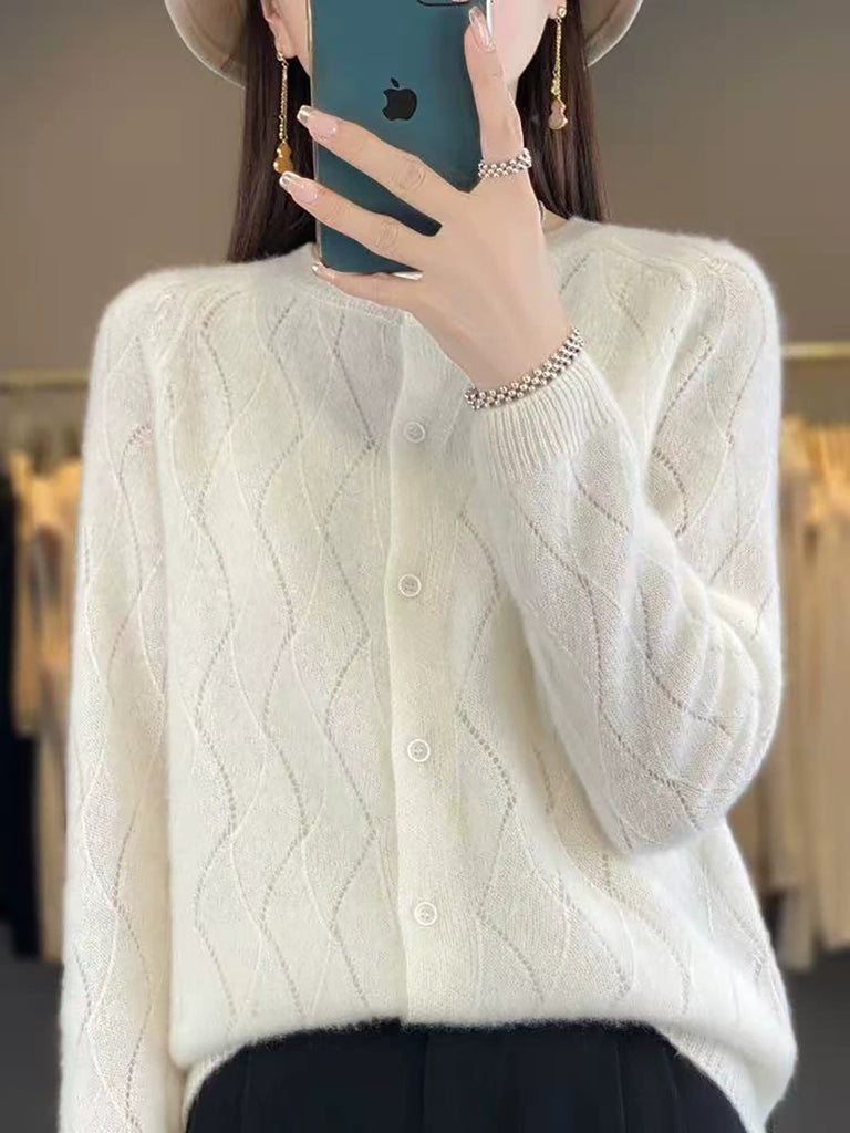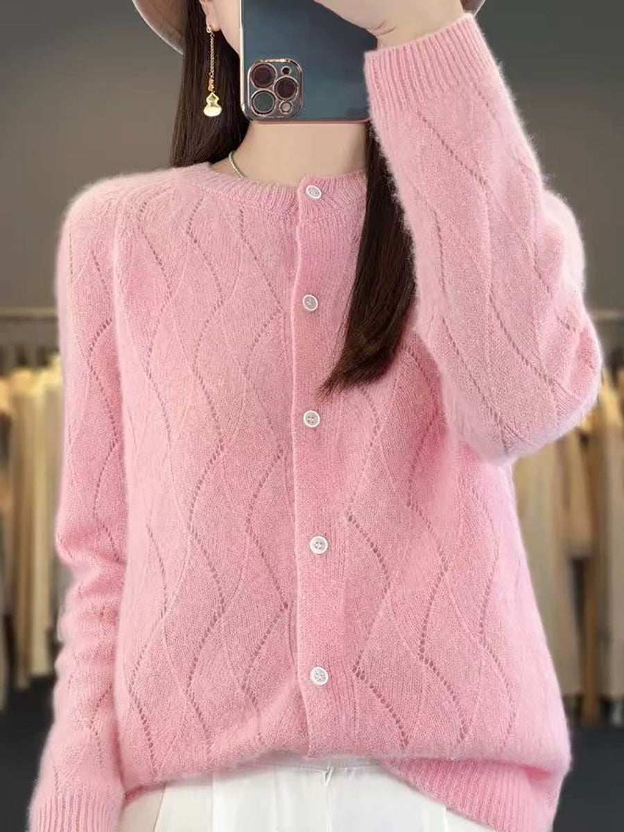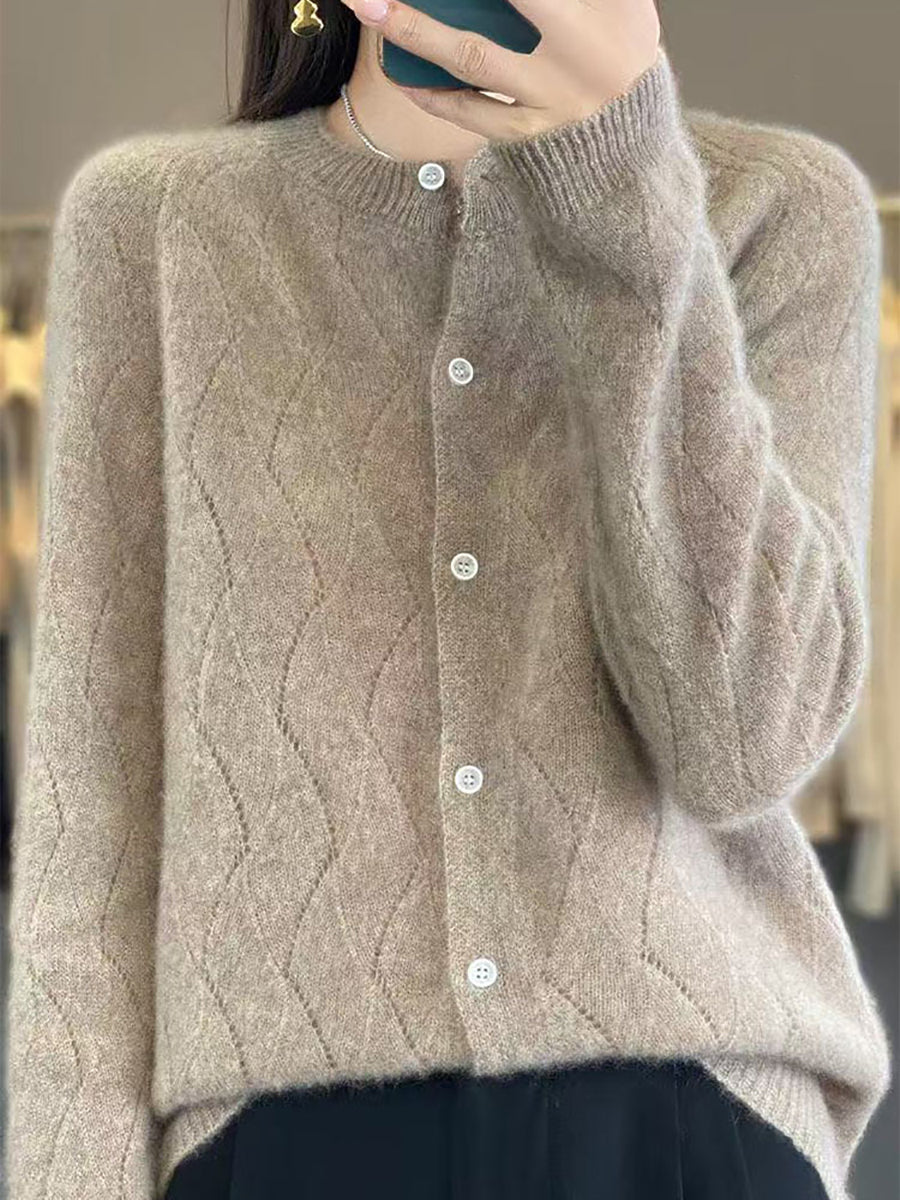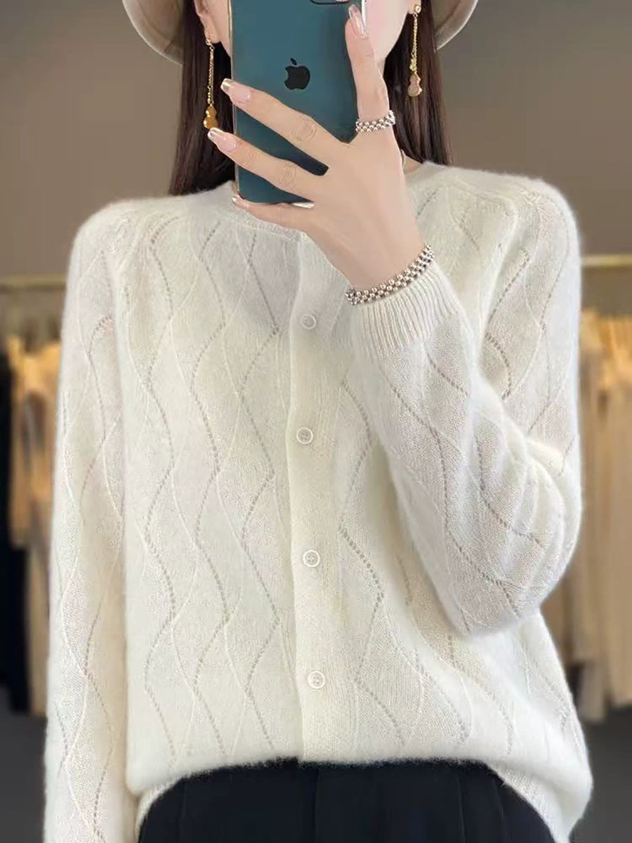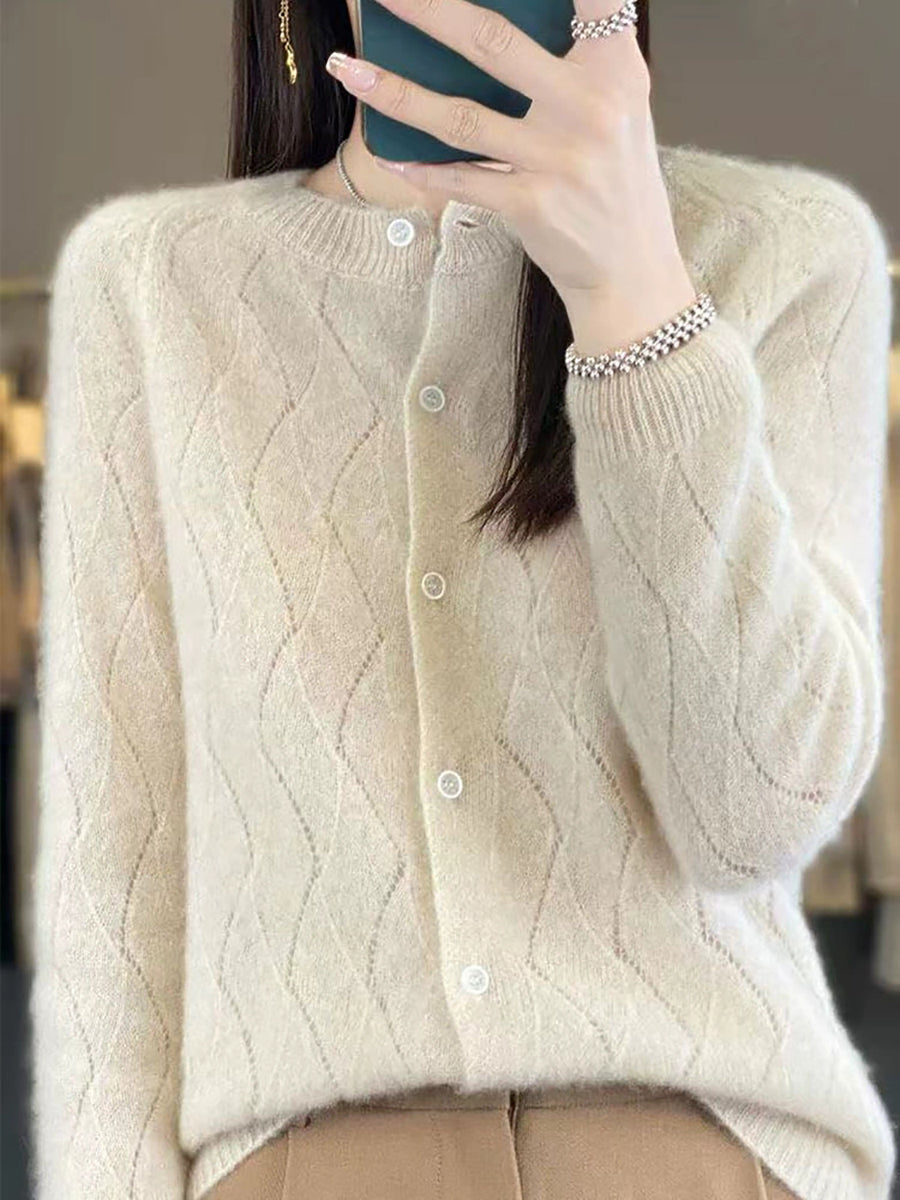 سترة كارديجان شتوية نسائية محبوكة بلون نقي برقبة دائرية