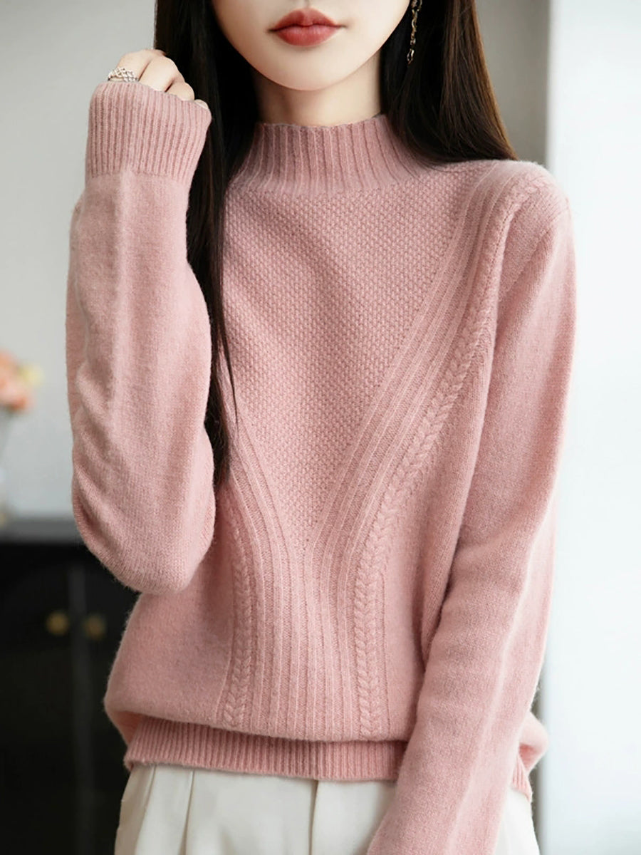 سترة نسائية شتوية بلون نقي بنصف رقبة مدورة