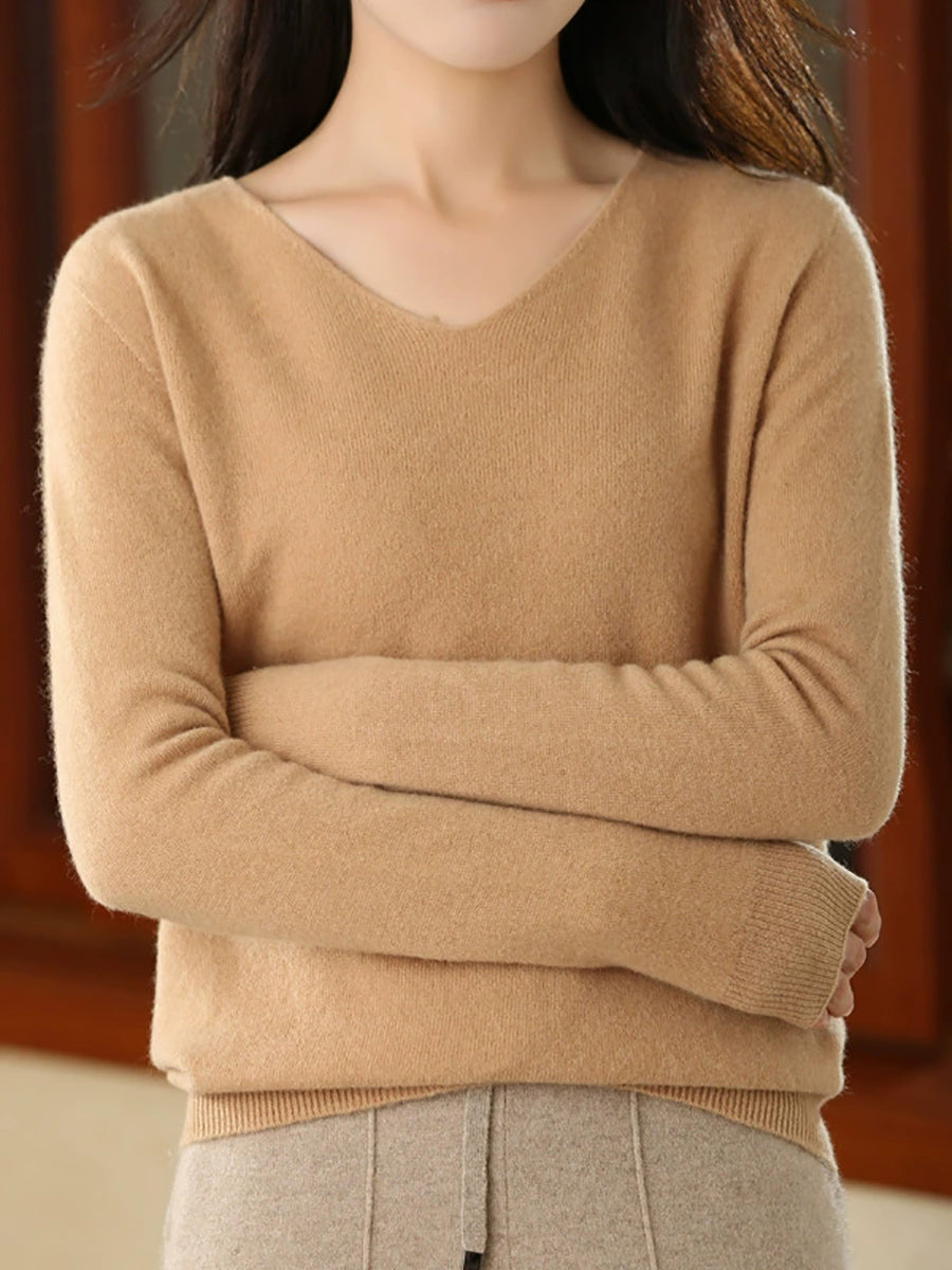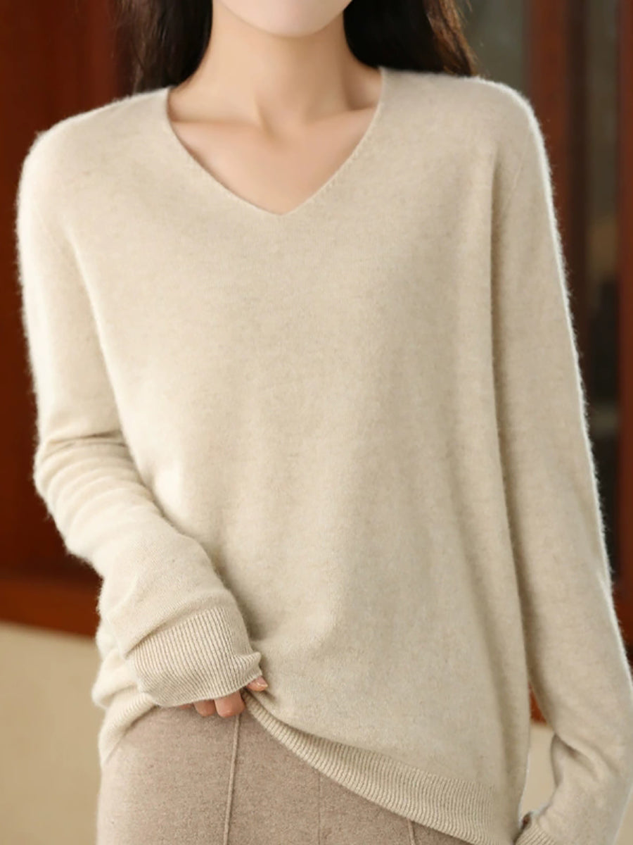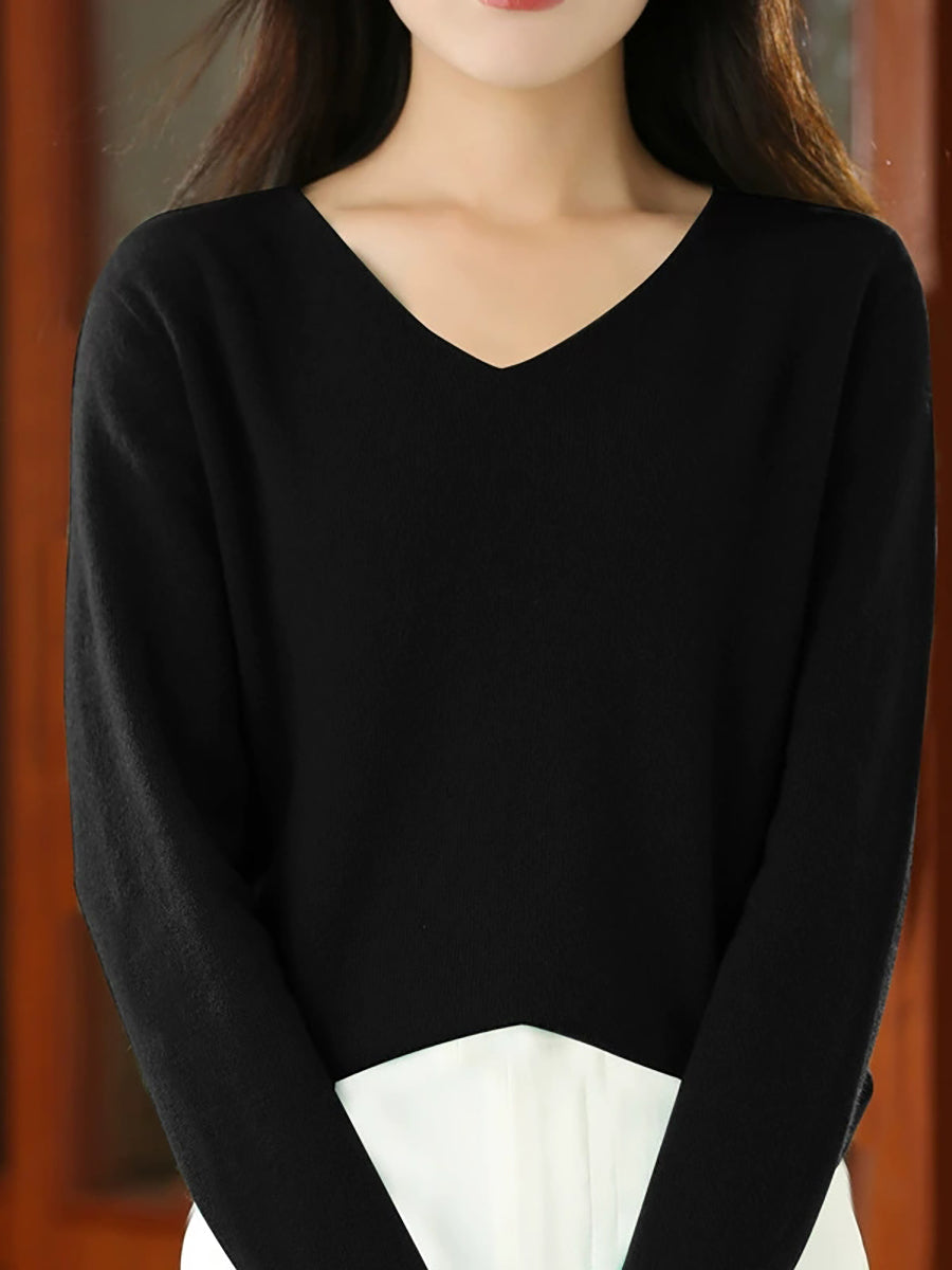 كنزة نسائية صيفية كاجوال بلون موحد بياقة على شكل حرف V