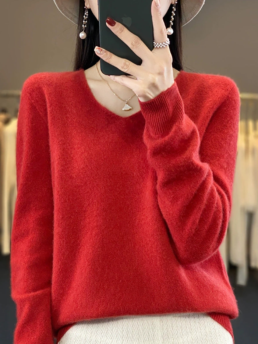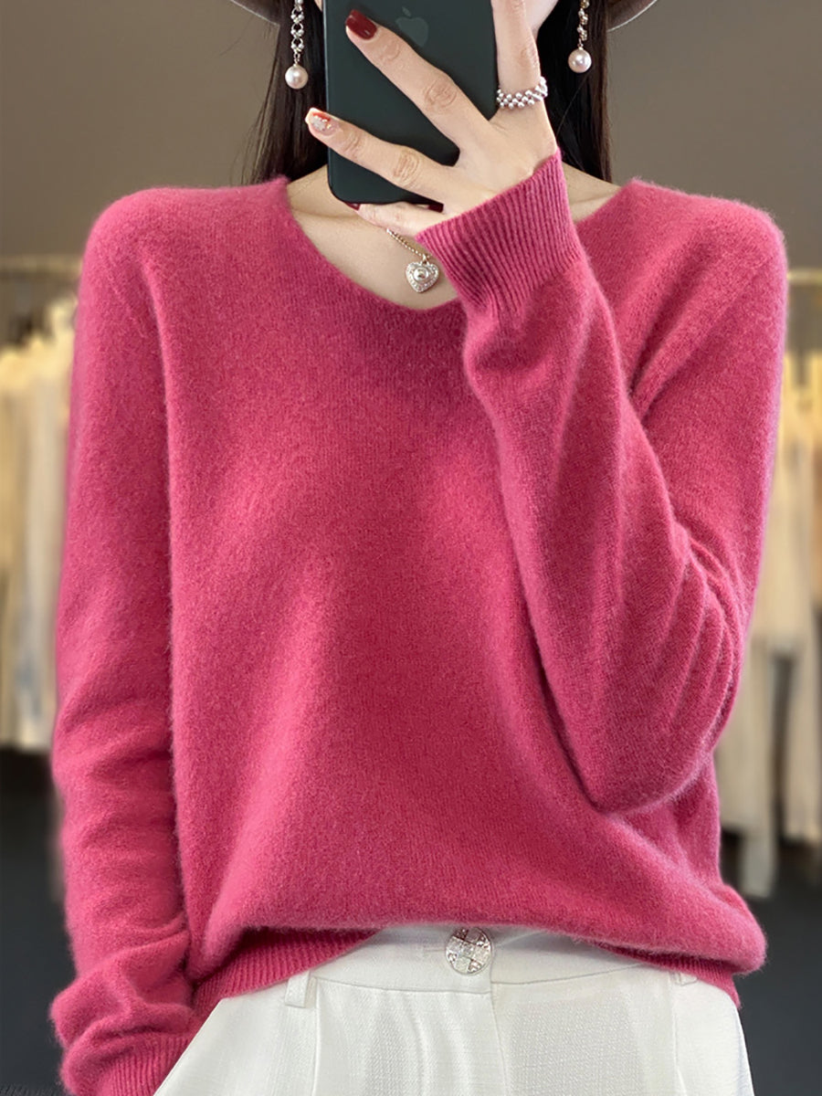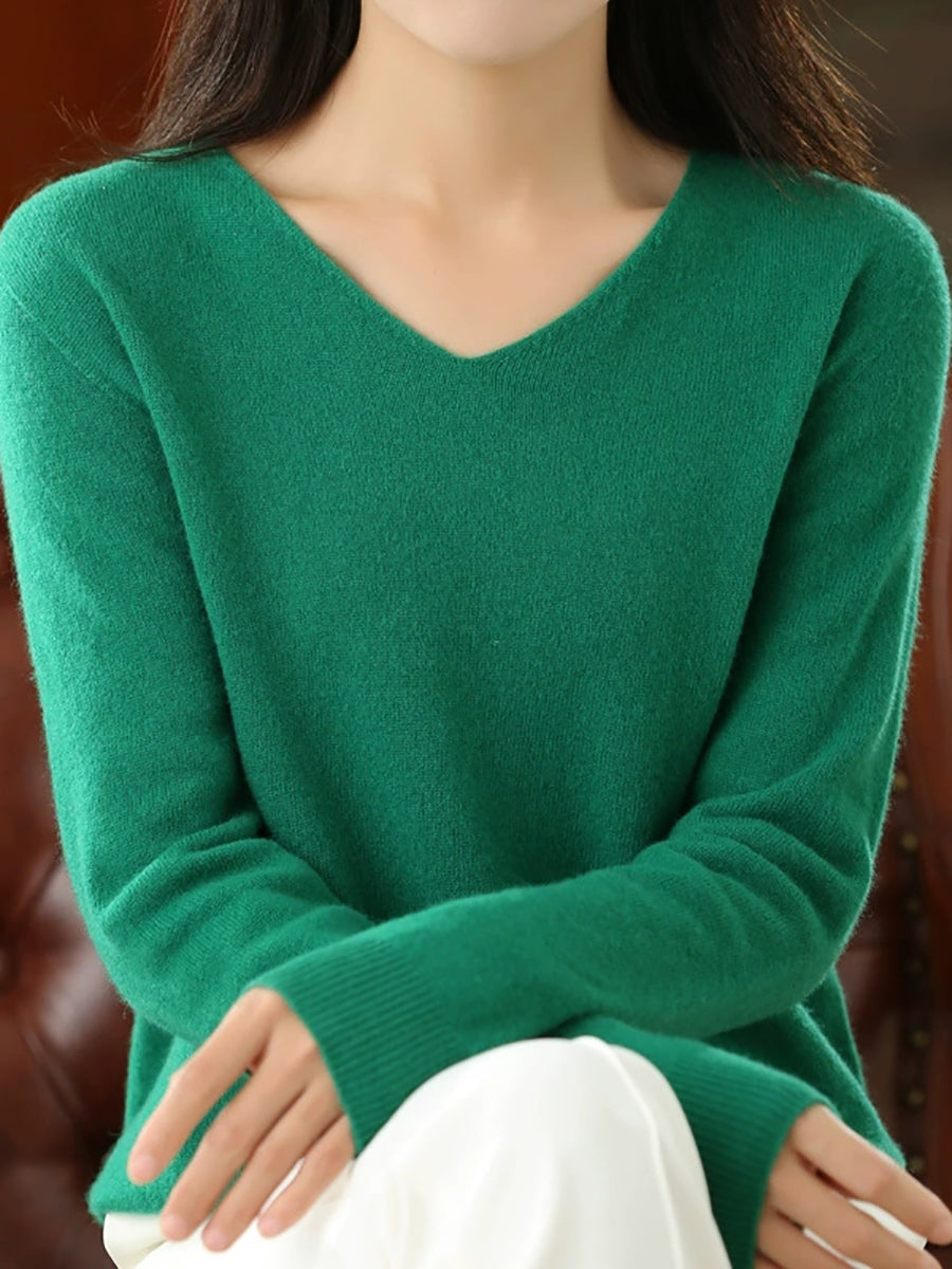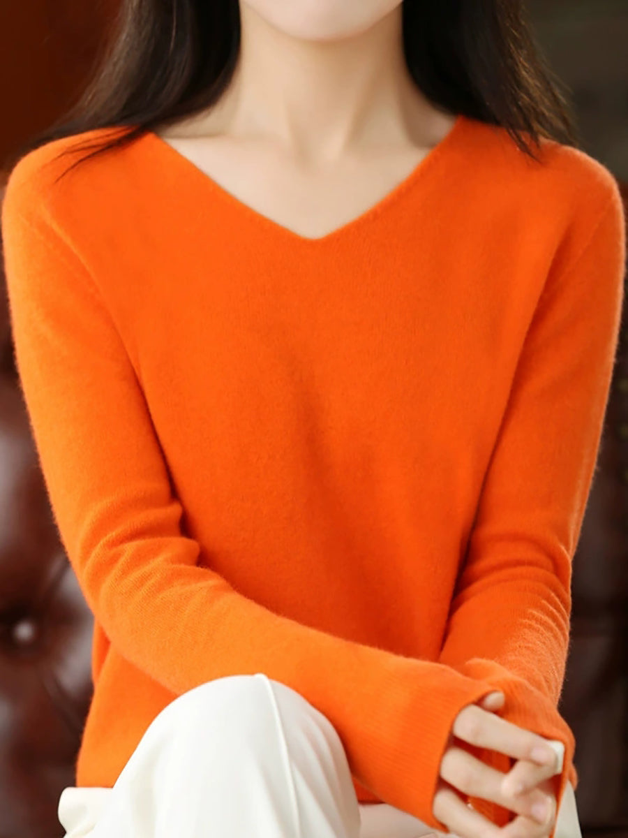 كنزة نسائية صيفية كاجوال بلون موحد بياقة على شكل حرف V