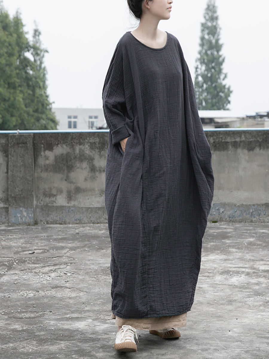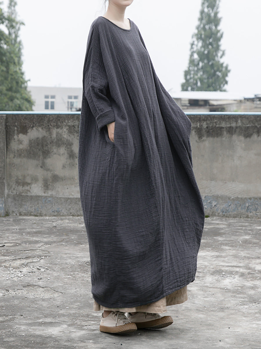 صُنع هذا الفستان بخبرة من مزيج من الكتان والقطن، ويتميز بنمط سادة لا يتأثر بمرور الزمن وياقة على شكل حرف O وأكمام راجلان كاملة. يضيف التصميم الفضفاض والعتيق لمسة مريحة وأنيقة إلى خزانة ملابسك. مثالي لكل من الربيع والخريف، هذا الفستان ضروري لأي شخص يعشق الموضة.