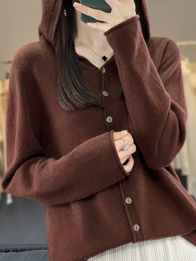 معطف نسائي خريفي كاجوال من الصوف المحبوك بغطاء للرأس