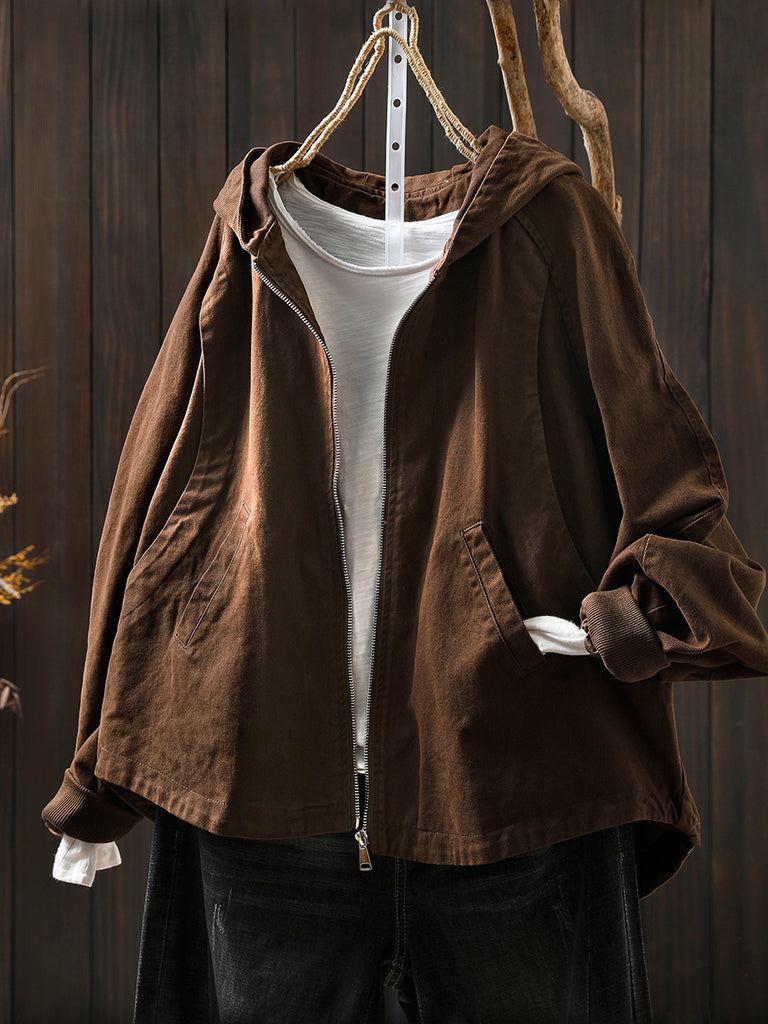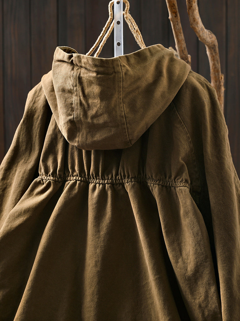معطف نسائي خريفي كاجوال من القطن بغطاء للرأس بلون نقي