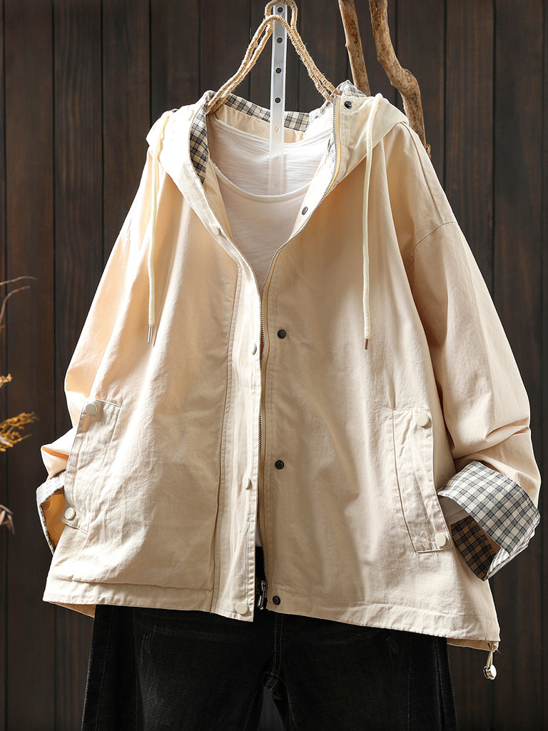 معطف كارديجان نسائي خريفي من القطن بغطاء للرأس بلون نقي