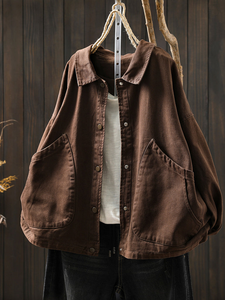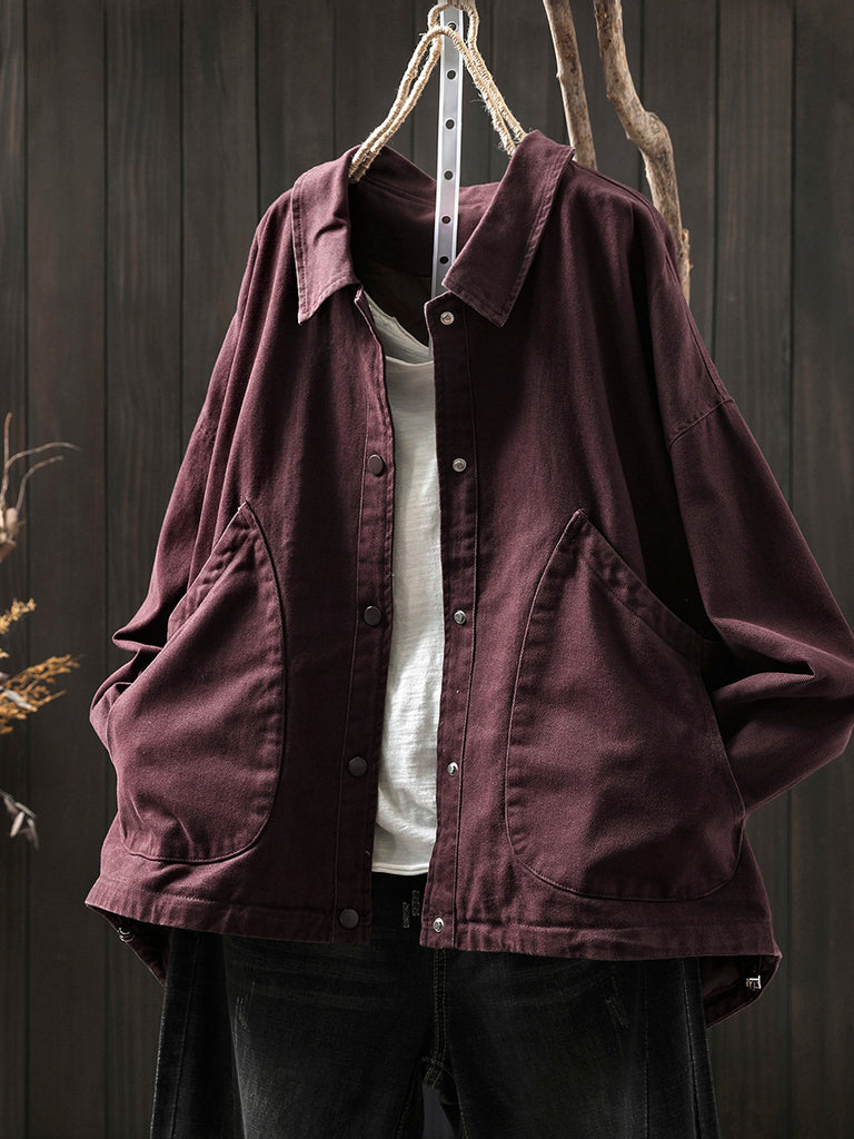 معطف قميص نسائي بلون نقي وياقة مطوية من القطن بنسبة 100%