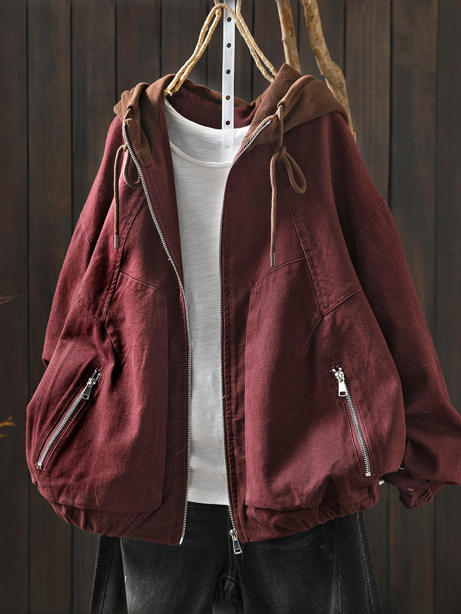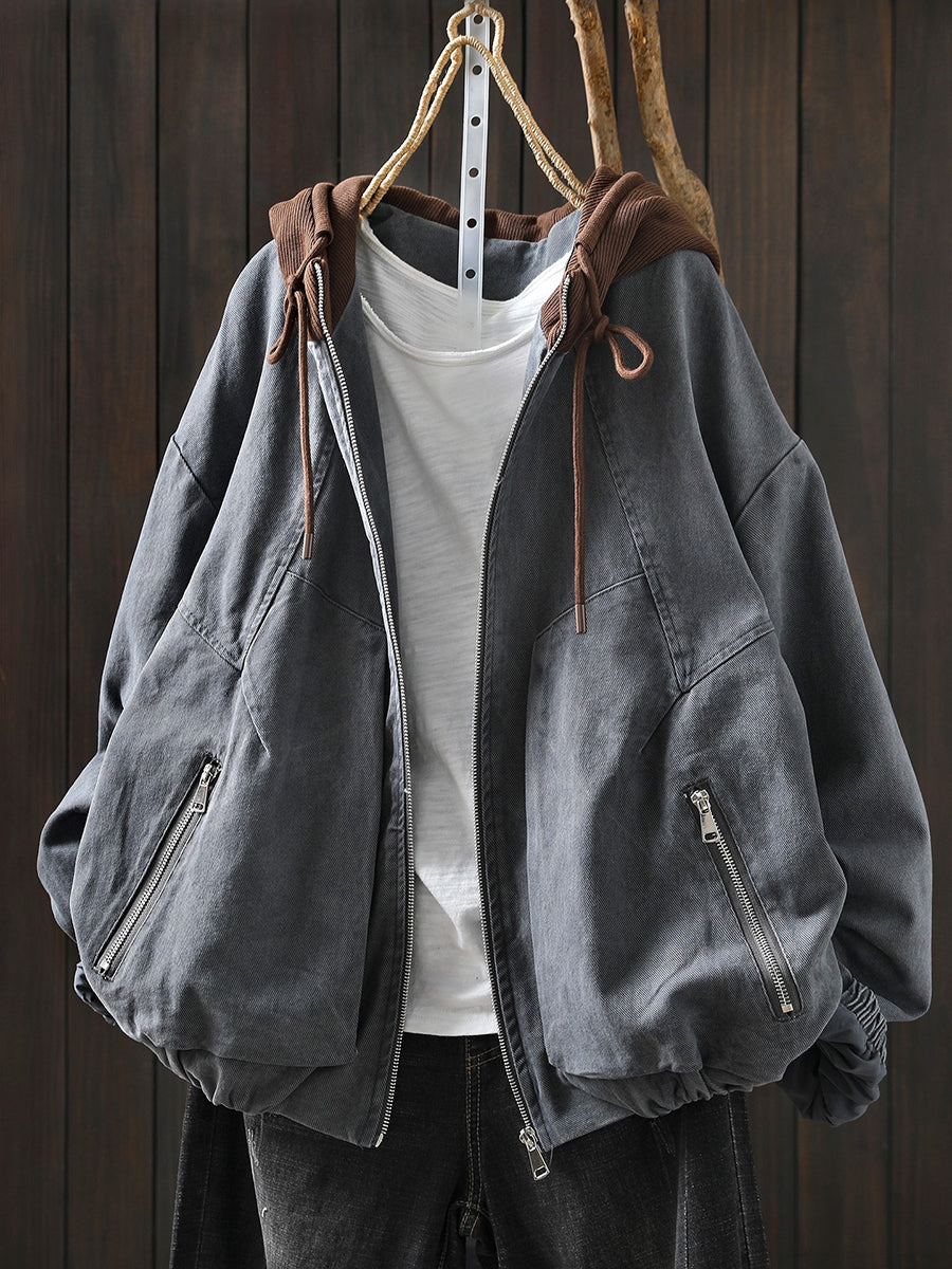 جاكيت نسائي ربيعي قطني بغطاء رأس بألوان متداخلة مستوحاة من الطراز القديم