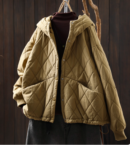 سترة نسائية كاجوال مبطنة بغطاء للرأس بألوان نقية مناسبة للخريف