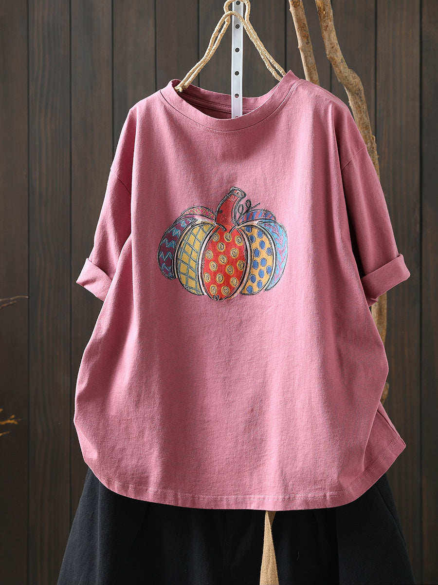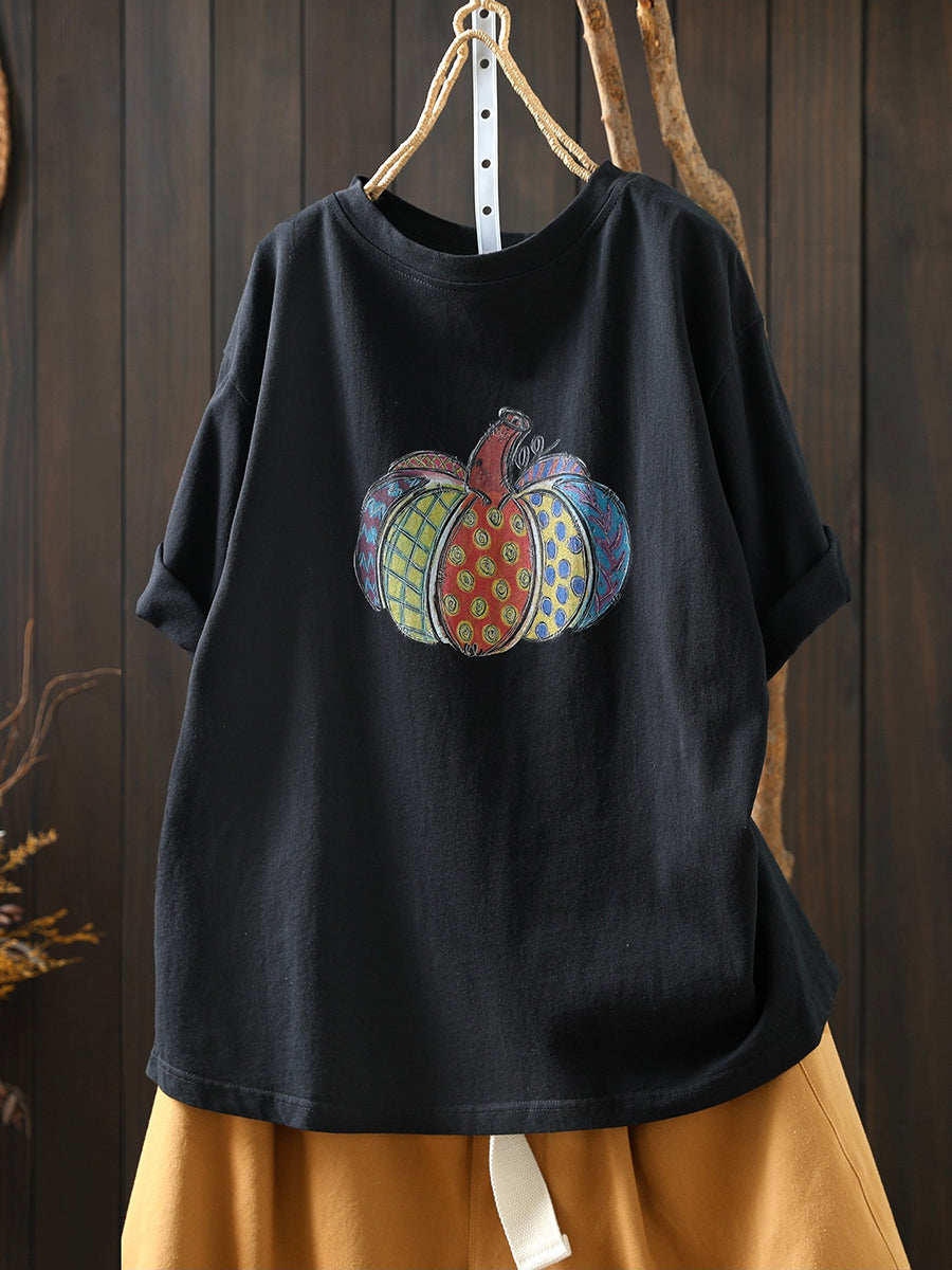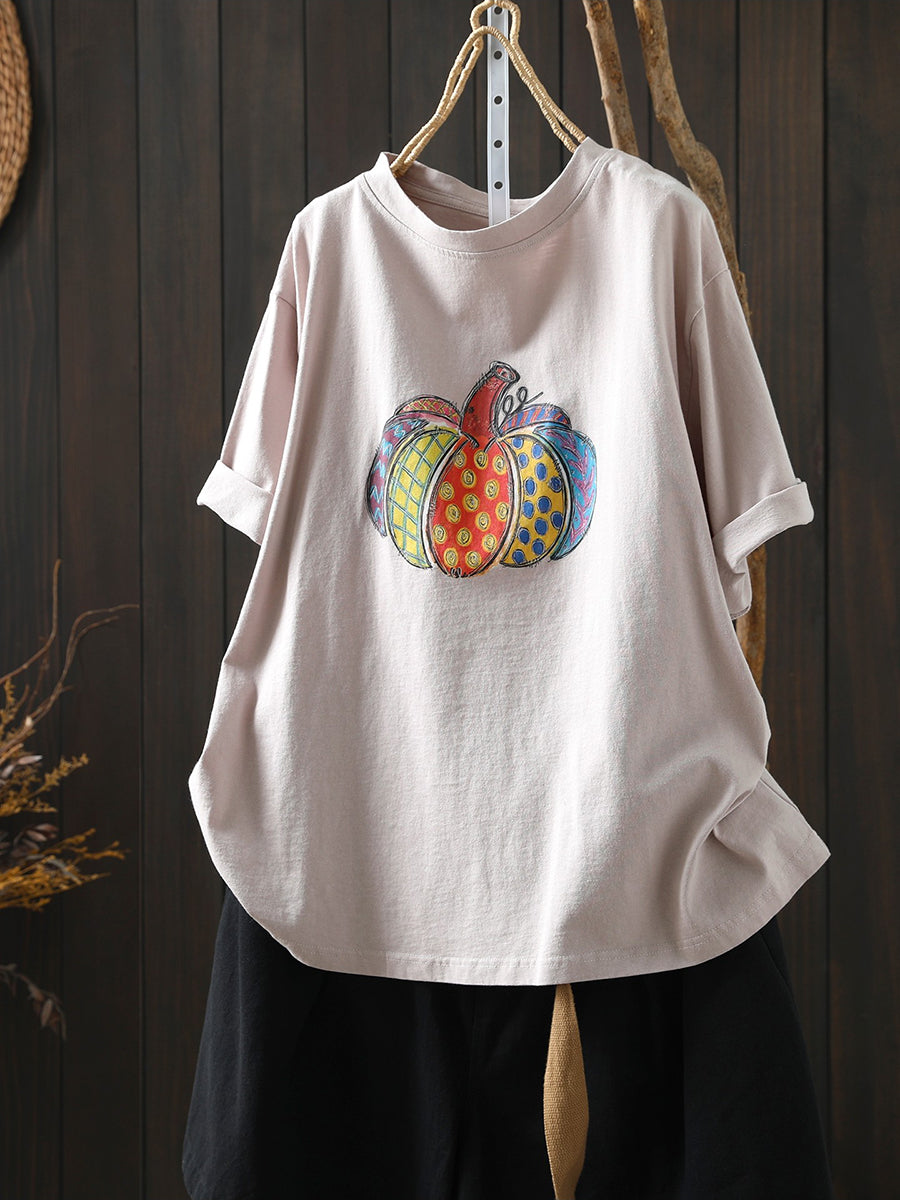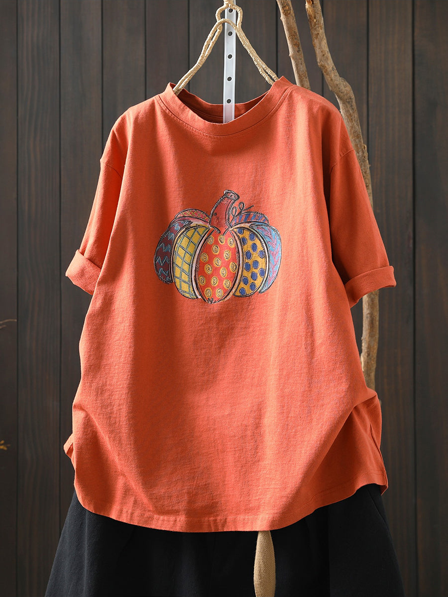 قميص نسائي صيفي من القطن مزين برسومات فنية لليقطين
