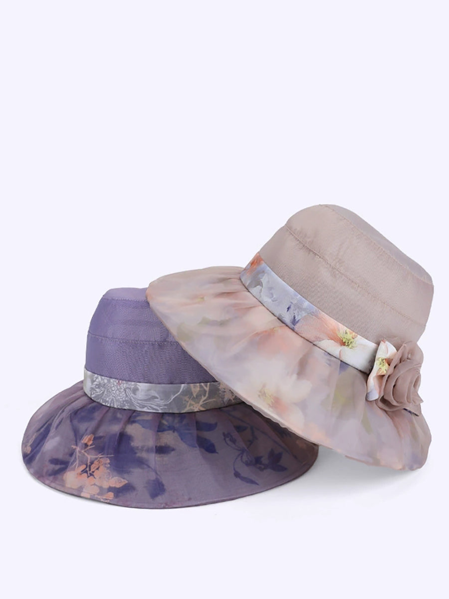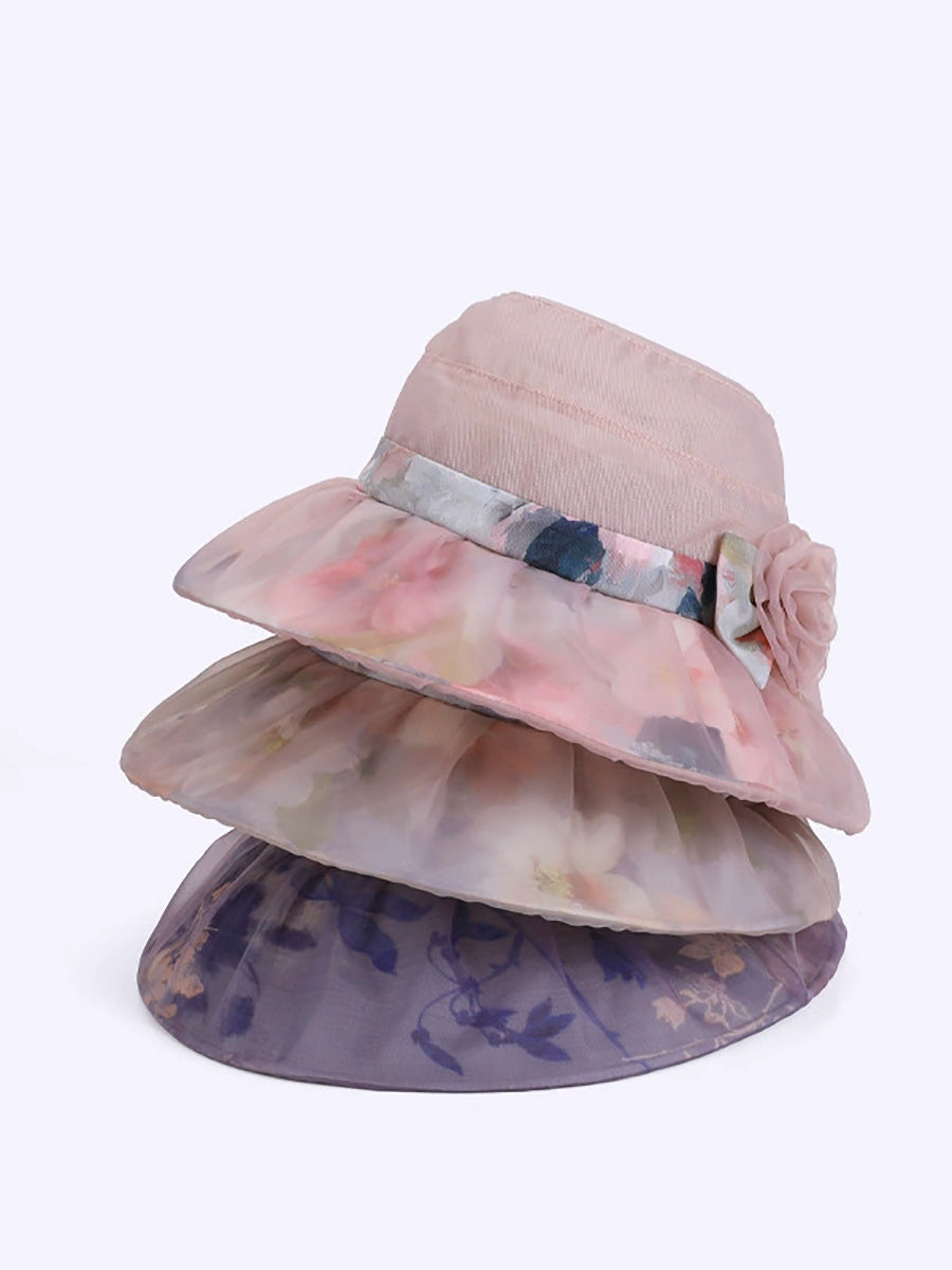 قبعة صيفية نسائية مزينة بالزهور، مقاومة للشمس