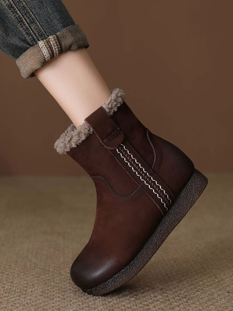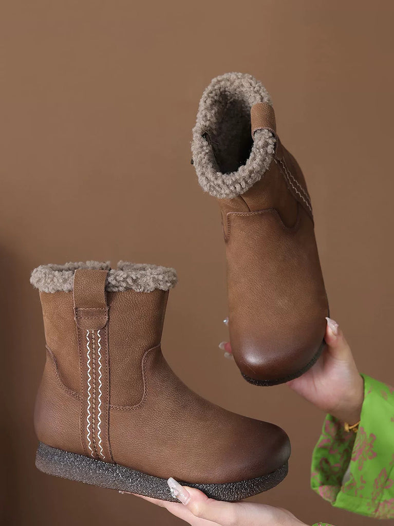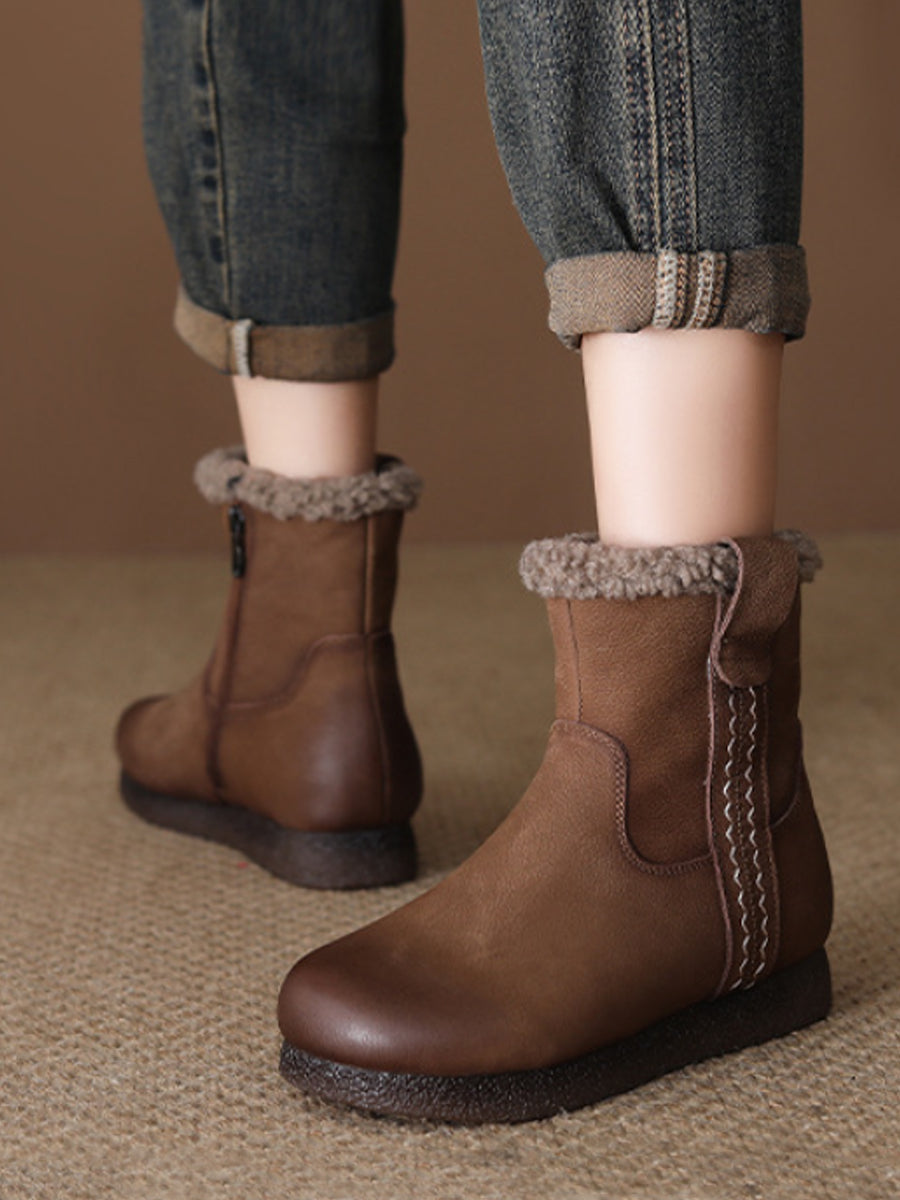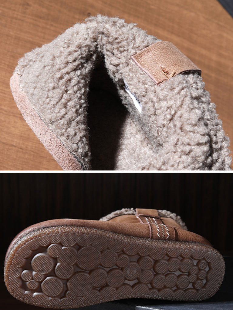 حذاء نسائي شتوي مبطن بالصوف من الجلد بتصميم فني