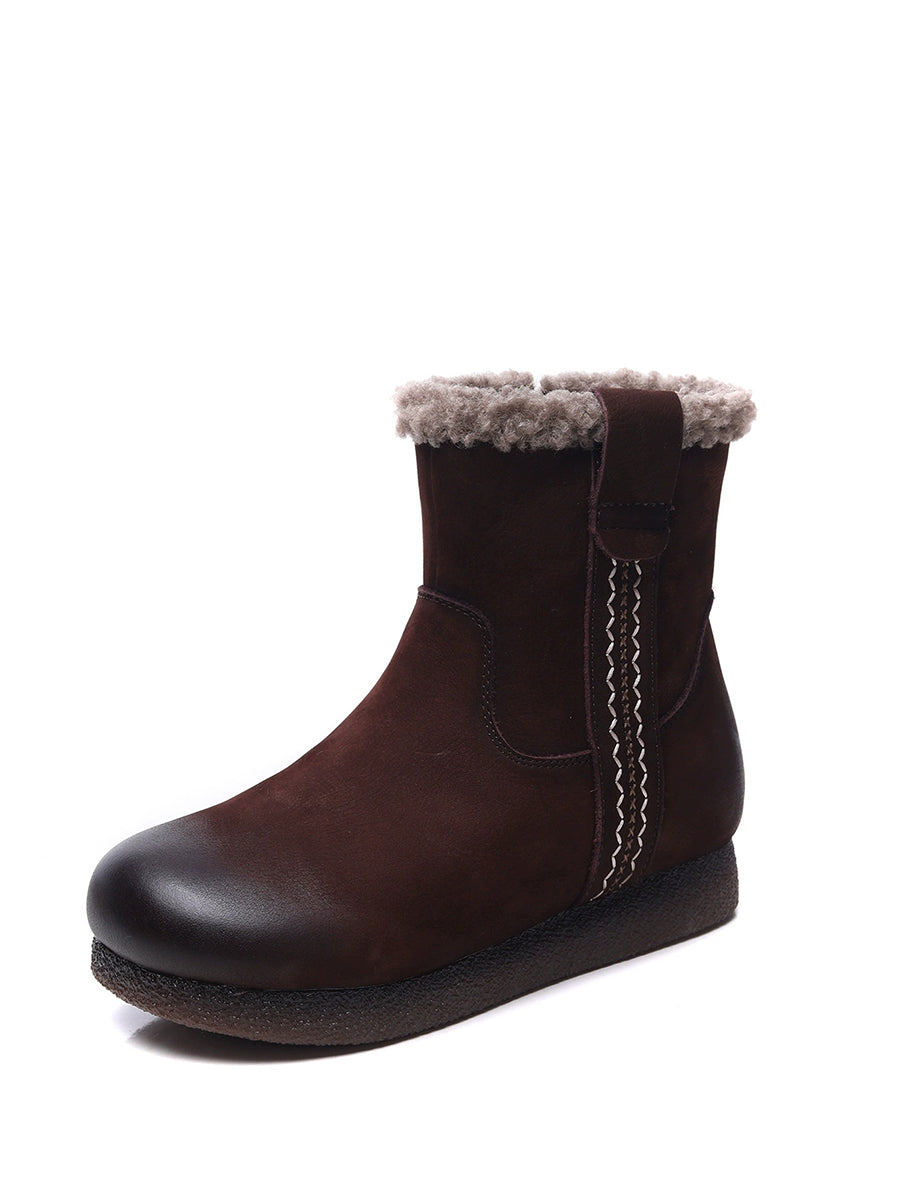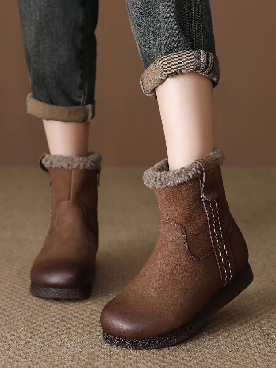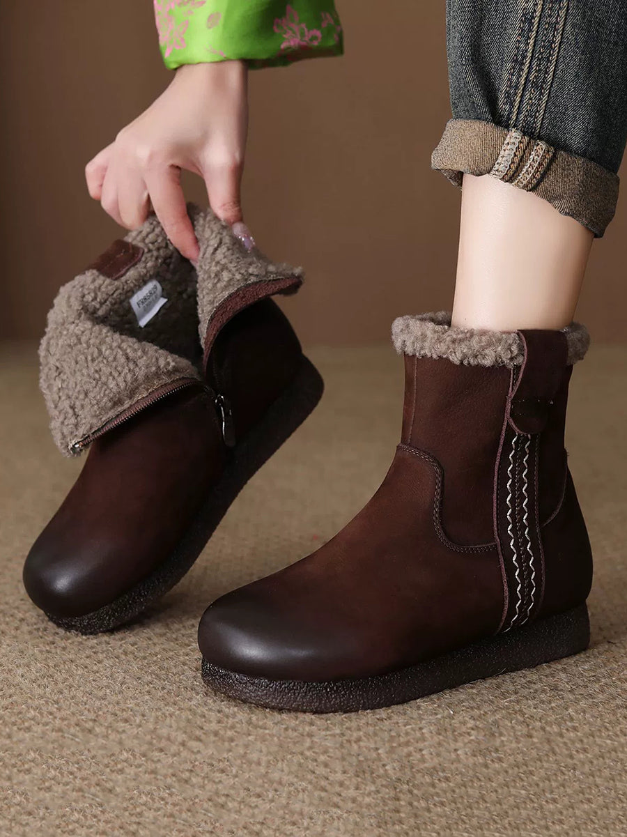 حذاء نسائي شتوي مبطن بالصوف من الجلد بتصميم فني