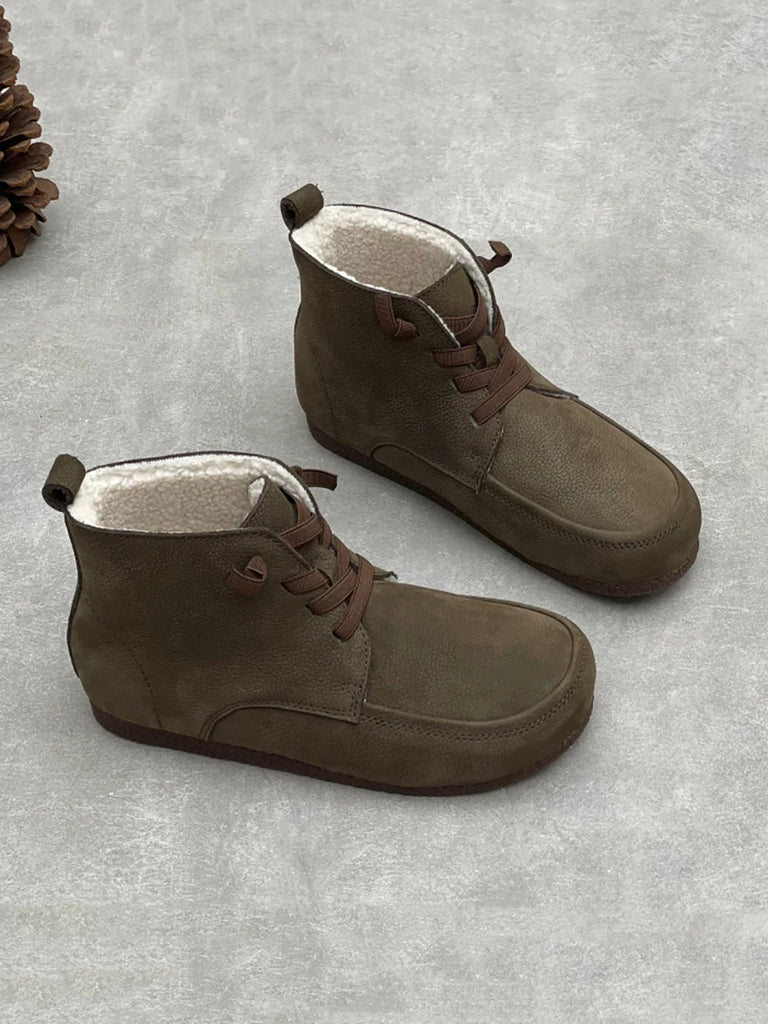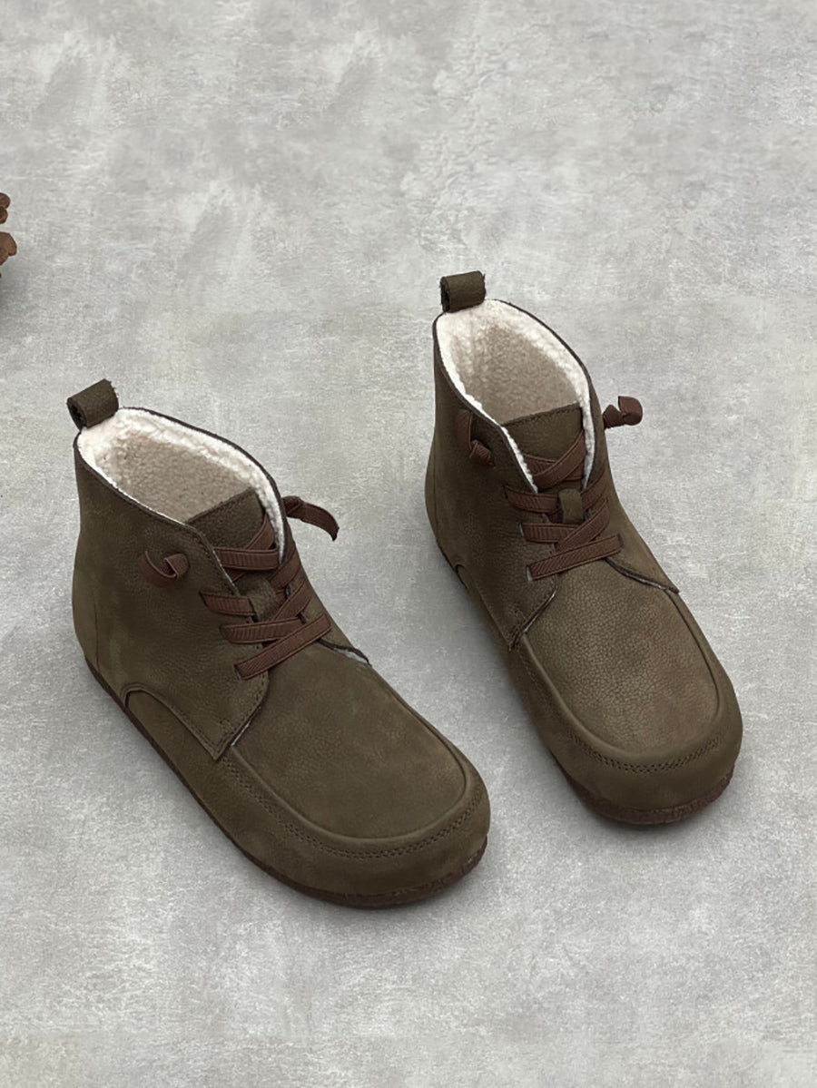 حذاء نسائي شتوي من الجلد الطبيعي مبطن بالصوف
