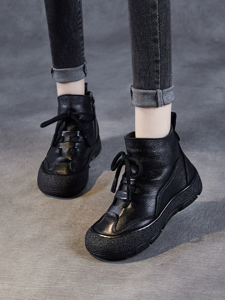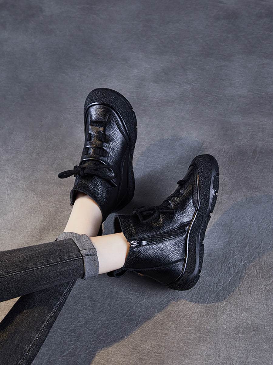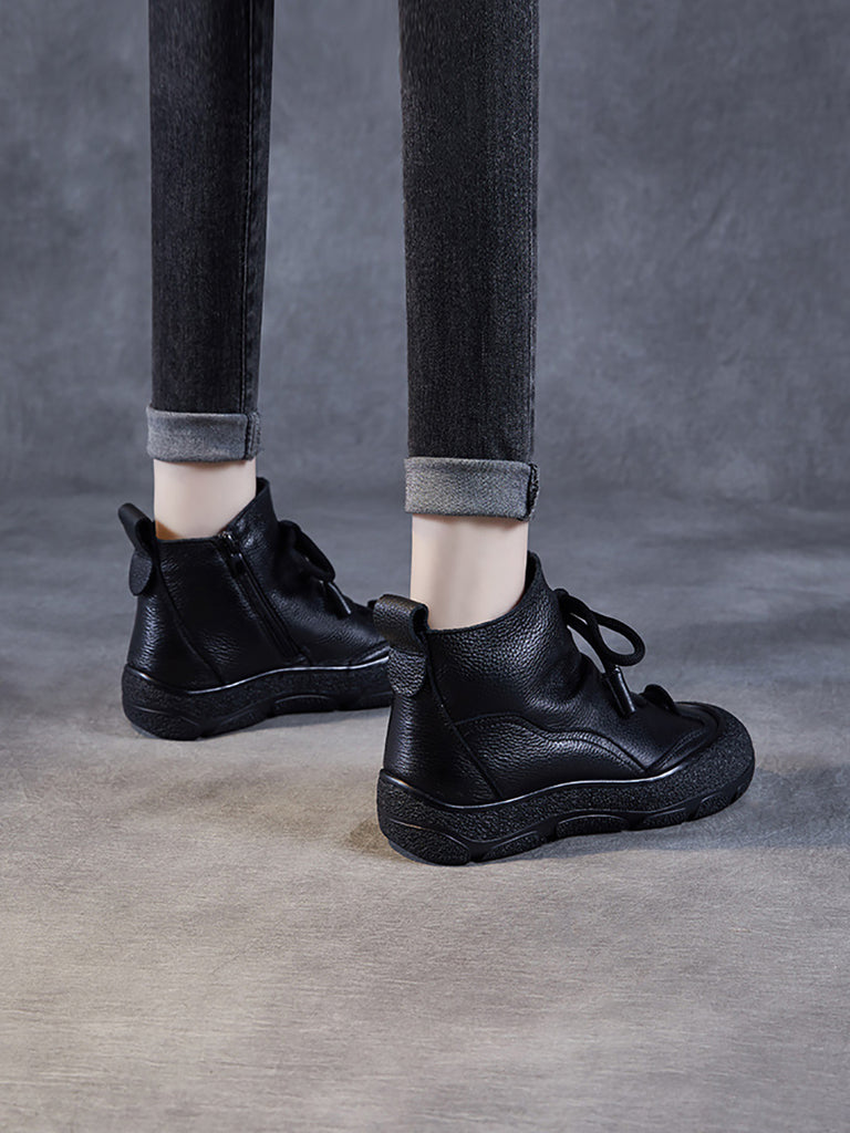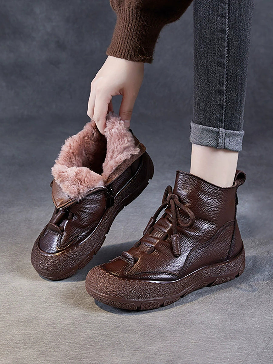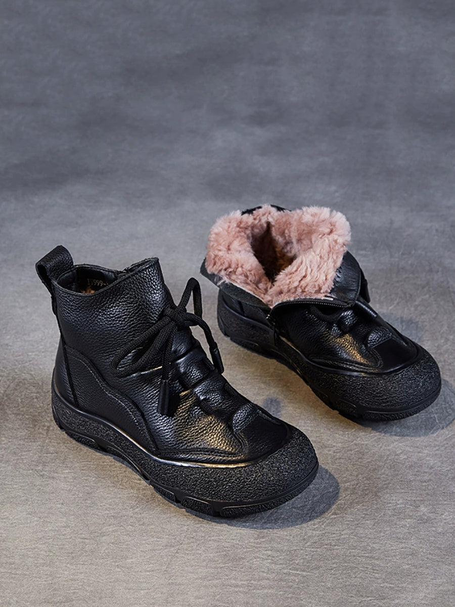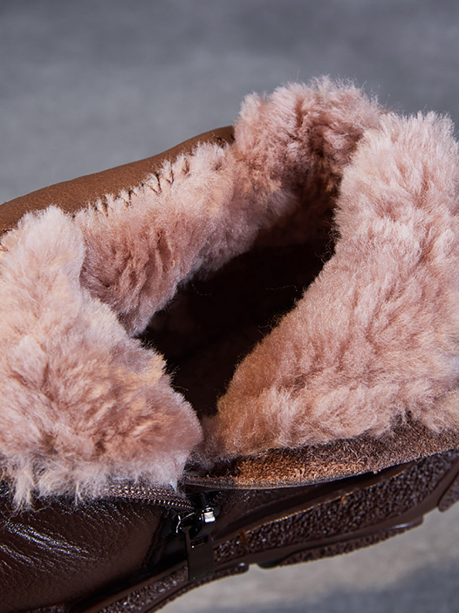 حذاء نسائي شتوي مبطن بالصوف من الجلد الطبيعي