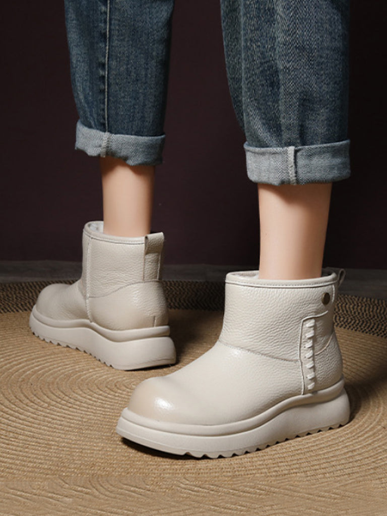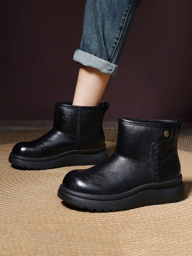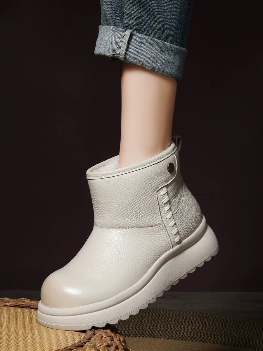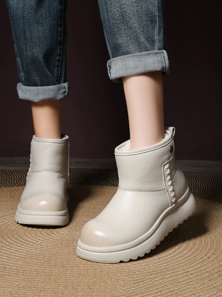 أحذية نسائية شتوية من الجلد الطبيعي مبطنة بالصوف