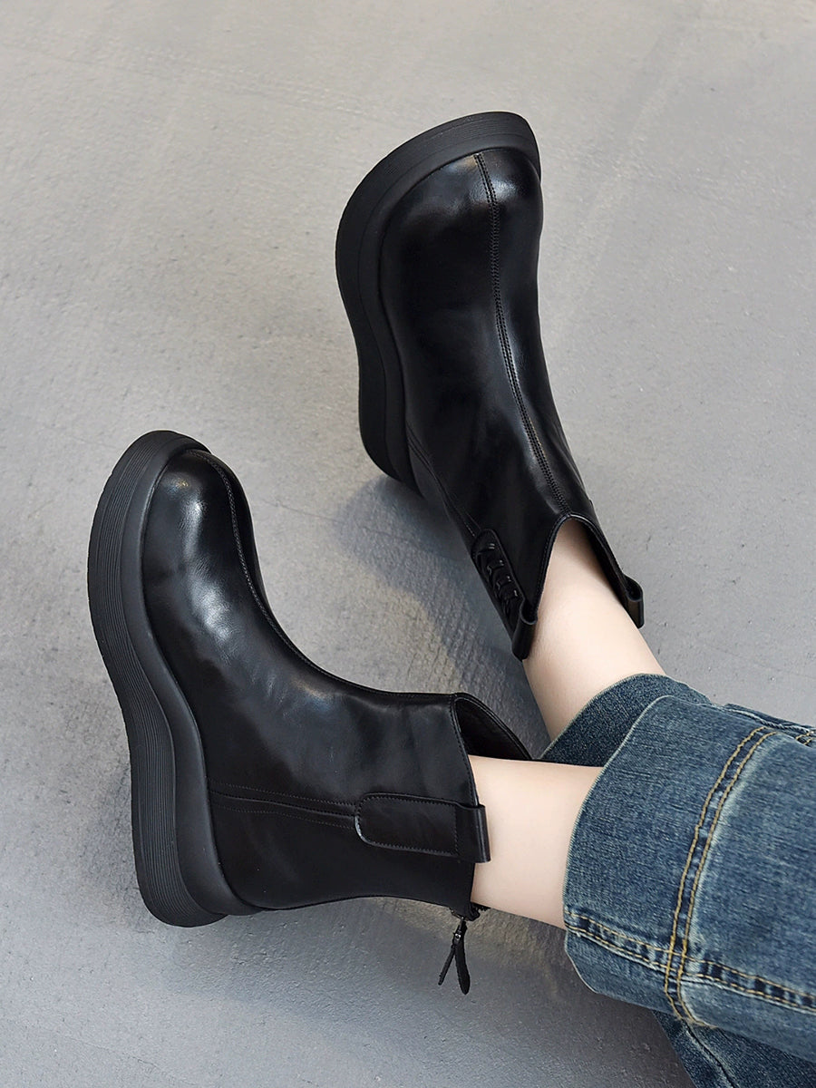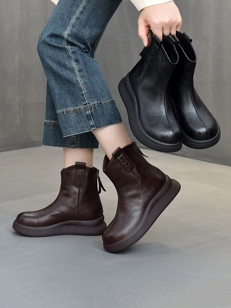أحذية نسائية شتوية من الجلد الطبيعي بكعب عالٍ