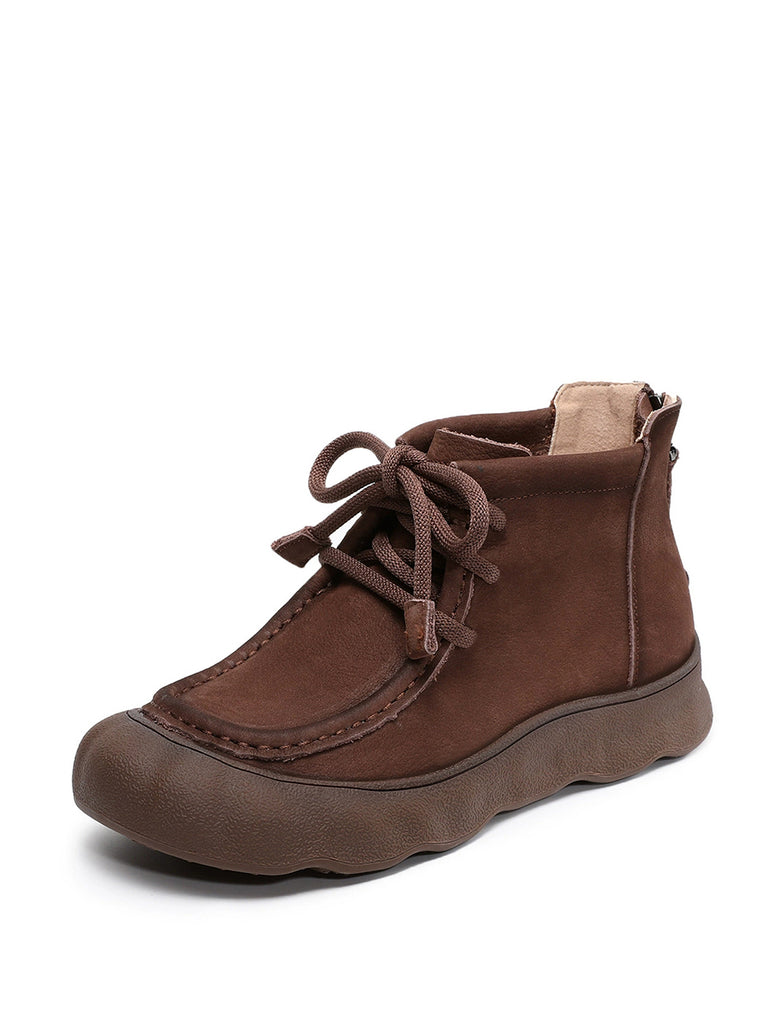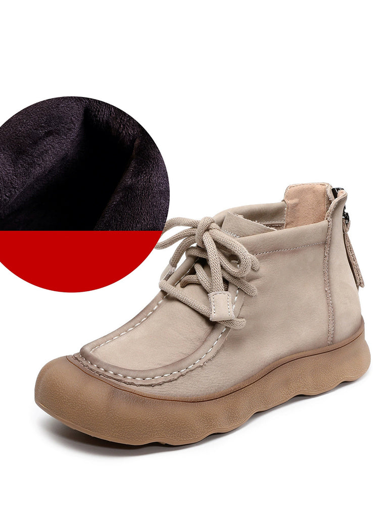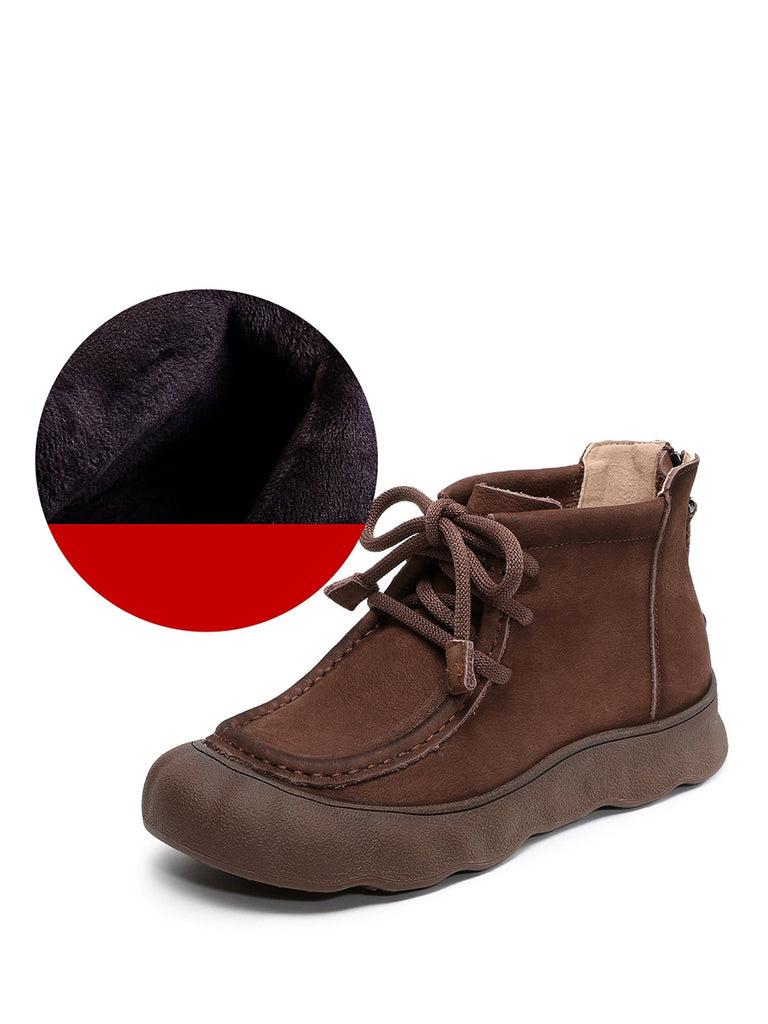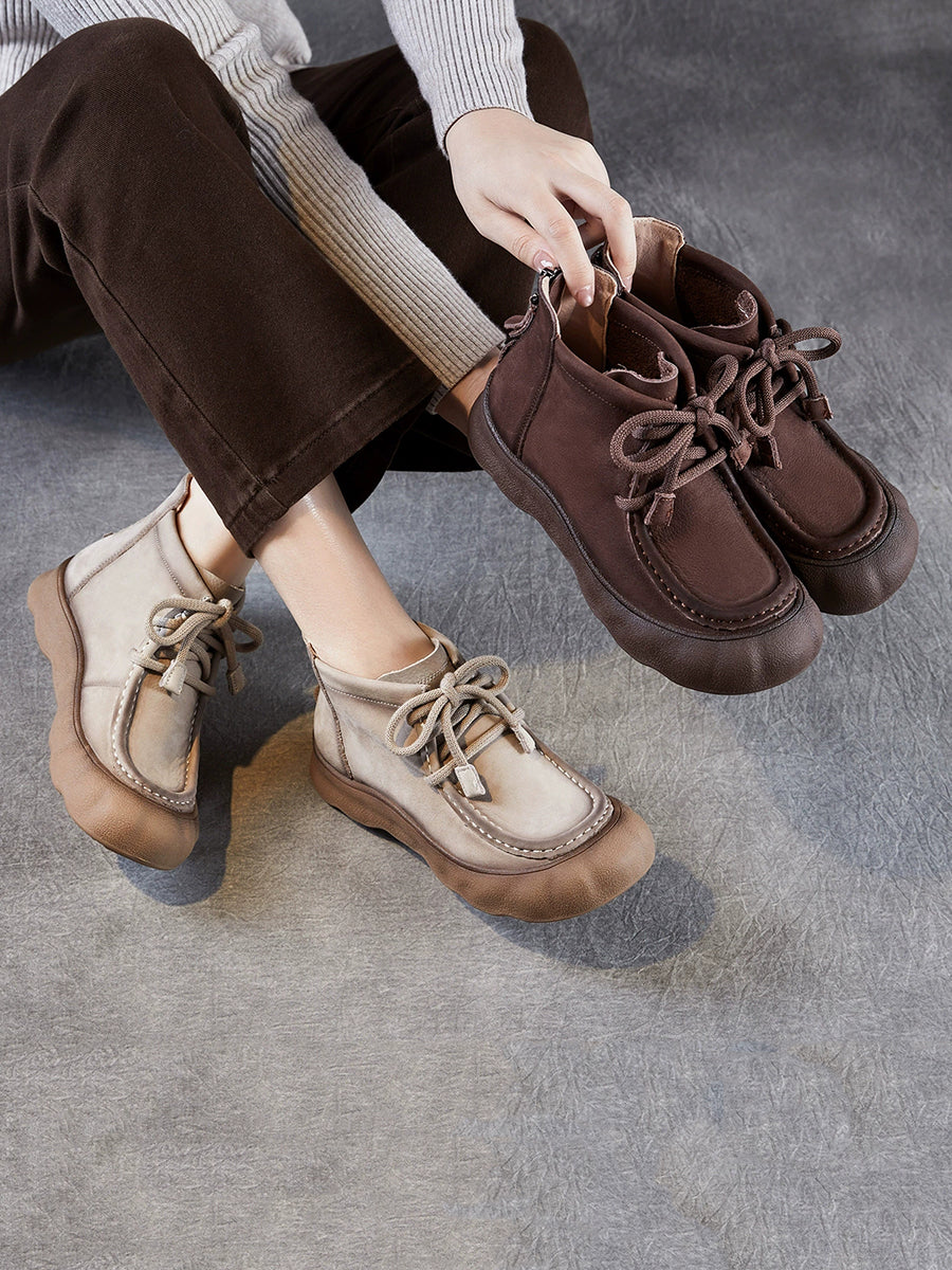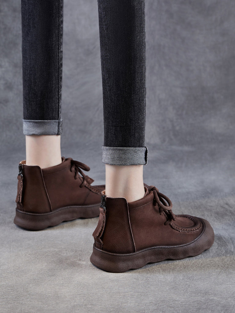 حذاء نسائي شتوي عتيق من الجلد الطبيعي للكاحل
