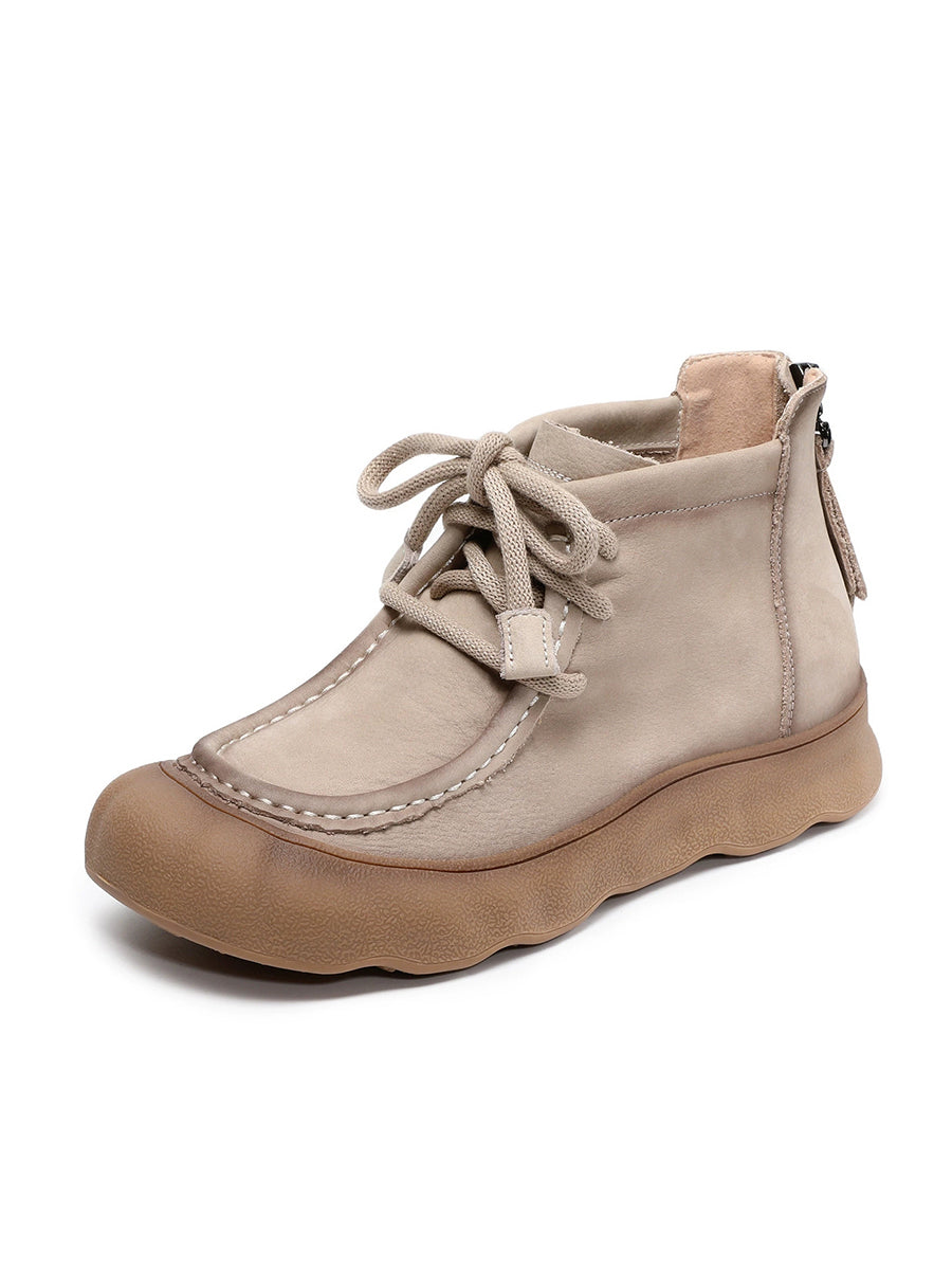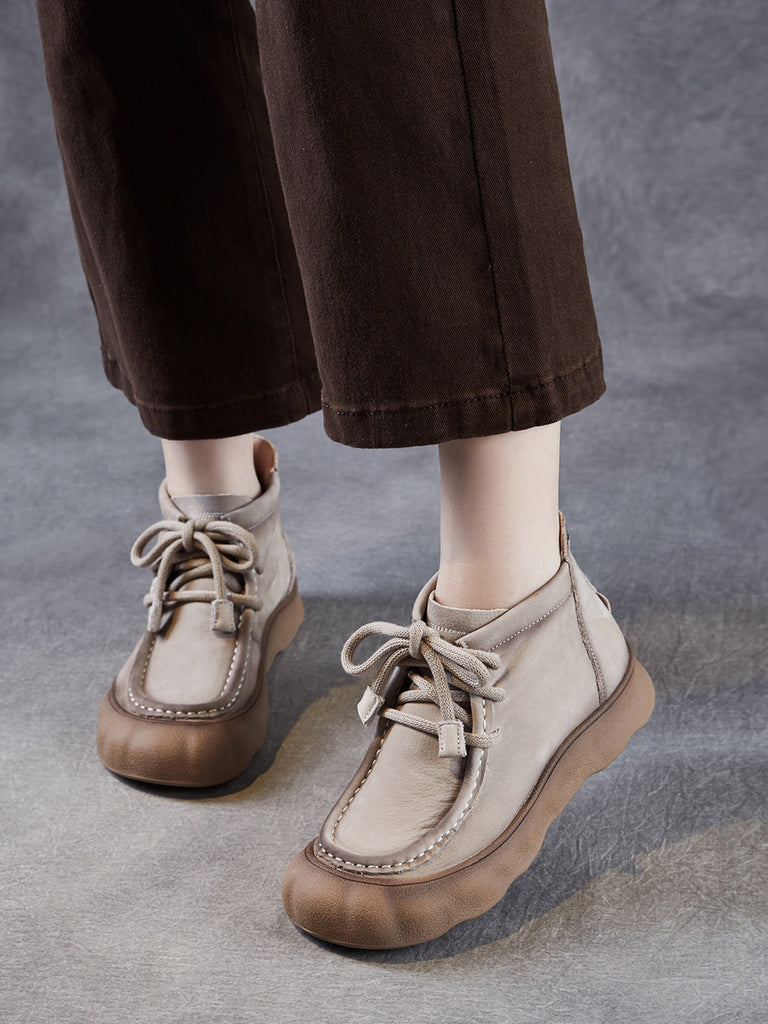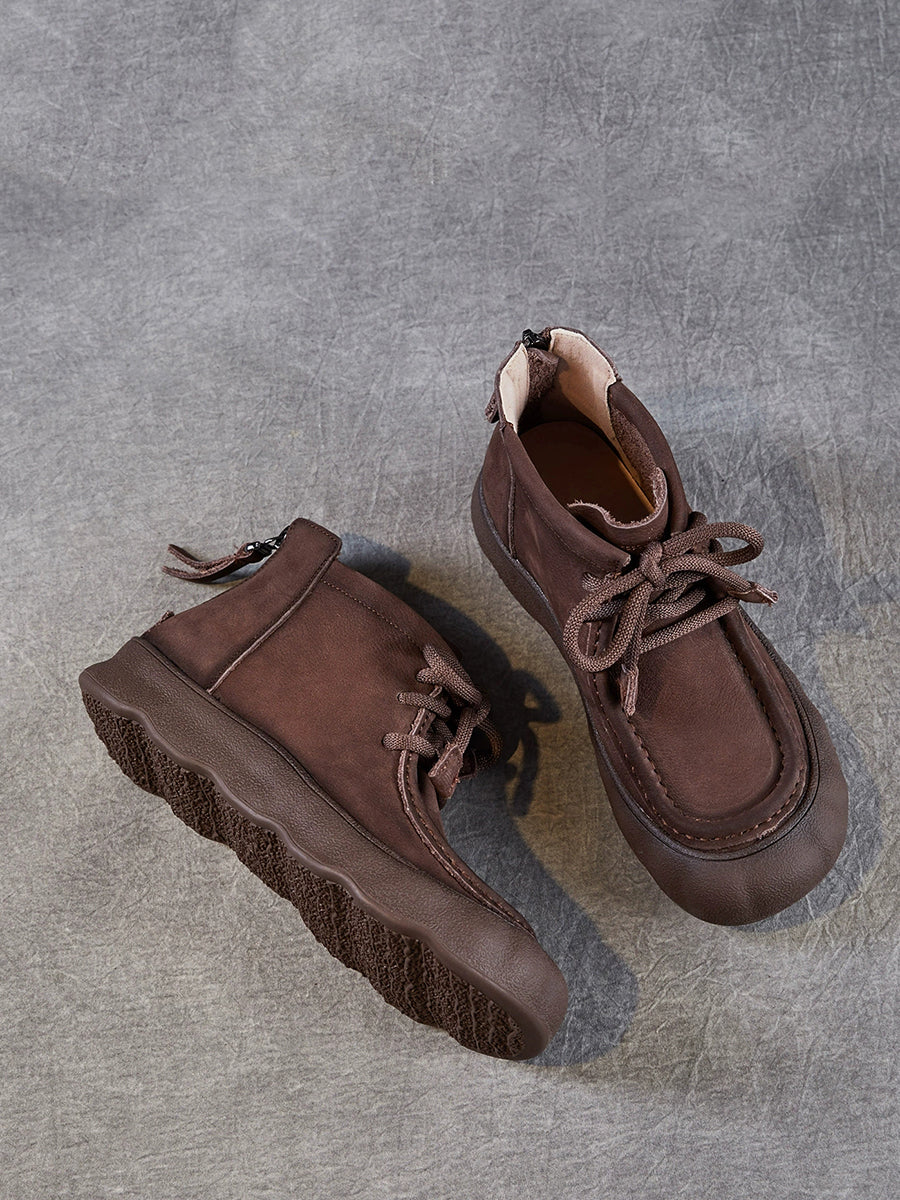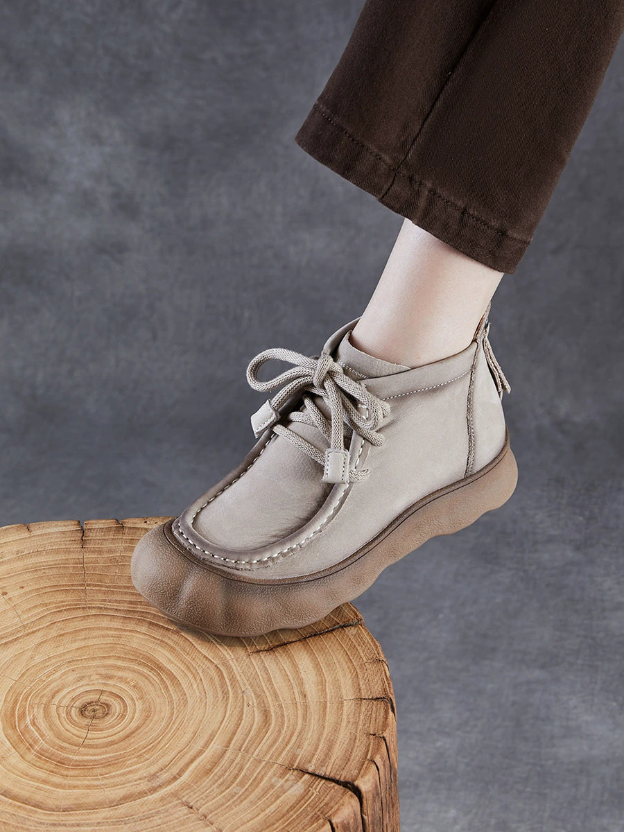 حذاء نسائي شتوي عتيق من الجلد الطبيعي للكاحل